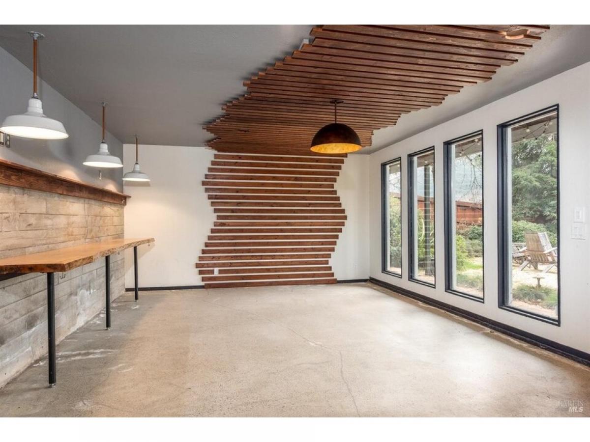 Featured on HGTV, this state-of-the-art home seamlessly blends modern conveniences with natural details throughout. Exposed wood beam ceilings and engineered hardwood floors highlight the second floor, open concept great room of this three-story home. Gourmet kitchen with Corian countertops, stainless-steel appliances, and a commercial-style, dual-function faucet. The primary suite, two renovated bathrooms and second bedroom are on this level. The third floor offers two additional rooms and a half bath.Sunlight floods the ground level family room with floor to ceiling windows. This industrial-chic space features a custom ceiling design, concrete floors, wine storage, and a live edge wood bar. Home theater area includes a drop-down screen and built-in projector.Beautifully landscaped yard with natural gas fire pit includes eight Adirondack chairs. 800 square feet of wrap-around, recently refinished deck. Carport includes a Tesla Powerwall, providing EV car charging and power even during outages. Closest fire station only 0.2 miles. World Class Hospital 5.3 miles. 1500 Acres of hiking and biking trails in Angwin#039;s Las Posadas State Forest. Nestled at the top of Howell Mountain AVA wine region with a rich tapestry of vineyards and award-winning wineries.