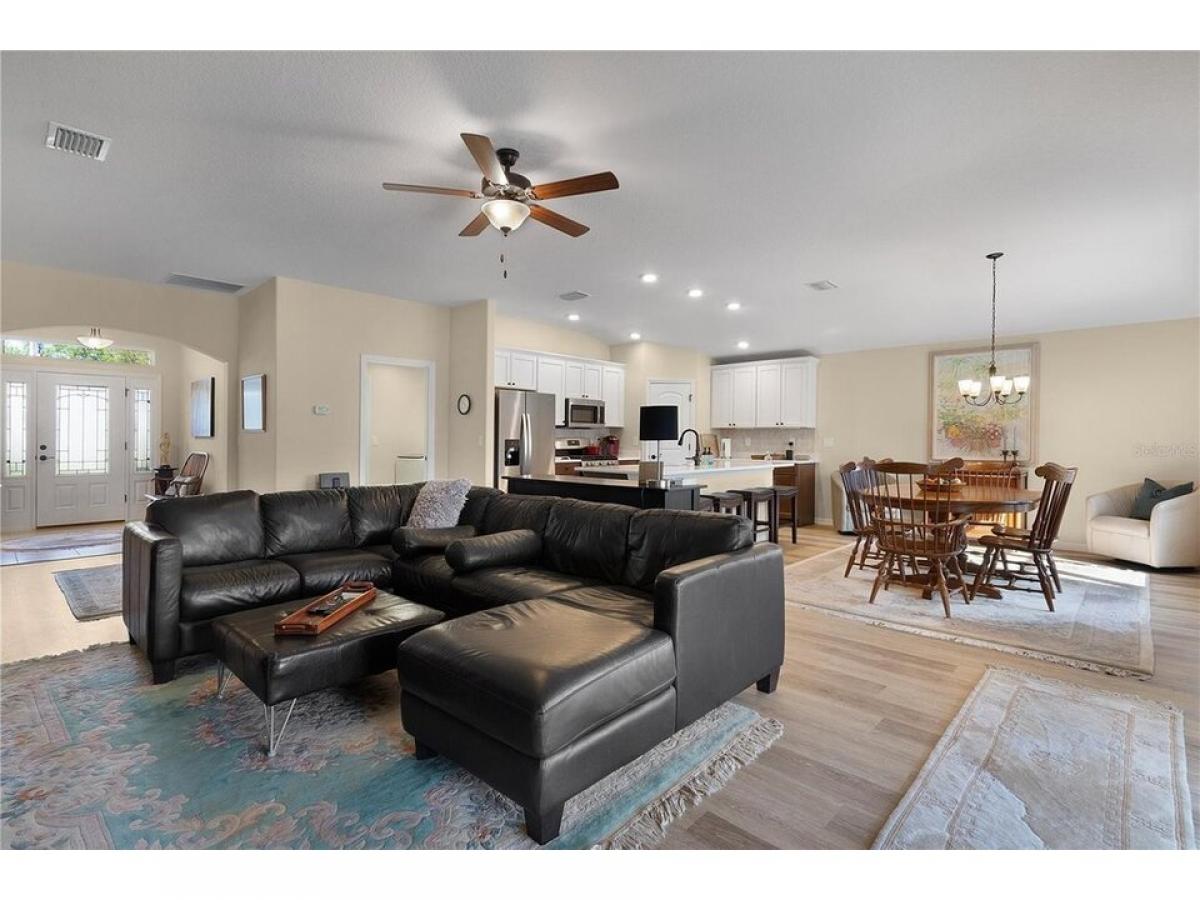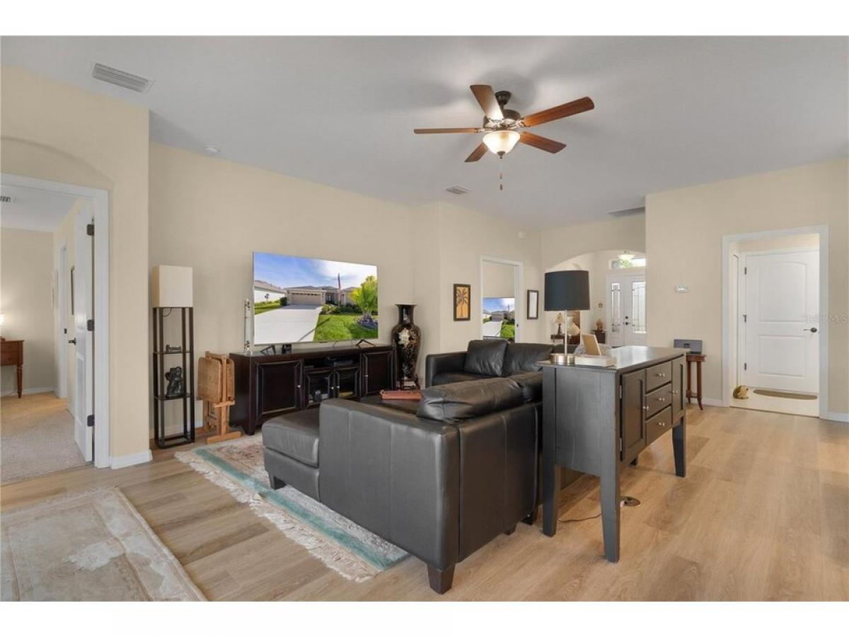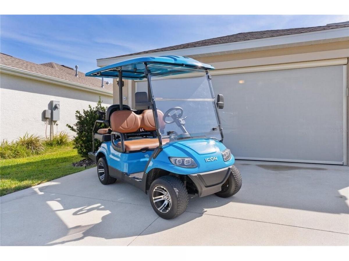 DONrsquo;T MISS OUT ON THIS GEM! Built in 2021, this meticulously designed home with 3 Bedrooms, 2 Baths, 2 Car Garage and a Golf Cart Garage PLUS 20 x 12 HEATED SALTWATER POOL with VIEWS OF 9th FAIRWAY is spacious and functional. In Addition INCLUDES A 2020 ICON GOLF CART. This popular Open-concept floor plan features luxury vinyl flooring, ceramic and carpet in Primary amp; Guest. High Ceilings enhance the sense of space and inviting atmosphere and overlooks sliding doors connecting to the ENTERTAINERS DREAM, with Covered, Extended, Screened Lanai leading to the SALTWATER POOL. Outside the Enclosure is an area for BBQrsquo;s. The SALTWATER POOL area has MOTORIZED SCREENS for added Privacy, Pool Lights, Gas Heat, and a Veritable Speed Pool Pump for easy maintenance. From the Pool Deck you have a VIEW OF THE 9th FAIRWAY. The Great Room, Dining area and Kitchen seamlessly connect. The Kitchen has wood cabinetry, plenty of natural light and QUARTZ Counter-Tops with Tile Backsplash, Under Counter Lighting, Bar-top Counter for extra dining space, Stainless Steel Appliances, and Closet Pantry. The 3rd Bedroom has multi-purpose use Office/Flex Space with Double Door Entry. Additional features throughout the home; UPGRADED Ceiling Fans amp; Lighting Fixtures, Water Softener, Double-Pane Windows. Automatic Screen Garage Door, Magnetic Front Screen Door, Power Blinds for Stackable Sliding Doors, Custom Blind Dining Room, GUTTERS and IRRIGATION on re-claimed water. The Master Bedroom features an en-suite bath, dual vanities, a walk-in ROMAN shower for added safety, Private Water Closet and Walk in Closet. Arlington Ridge is a premier, Man-Gated, active adult 55+ Golf Course Community LOW HOA $367/Quarter includes 24-Hour Guard, Cable TV, Common Area Taxes, Community Pool, Escrow Reserves Fund, Internet, Maintenance Grounds, Manager, Pool Maintenance, Recreational Facilities. Arlington Ridge has a abundance of amenities, starting with the Chesapeake Bar amp; Grill is where you can go for dining or enjoying drinks in the Tavern, Playing Billiards. Community POOLS, TENNIS, PICKLEBALL, a FITNESS CENTER, and a COMMUNITY CINEMA amp; of course you have your own 18-hole Championship Golf Course! Enjoy the convenience of grocery stores, local amp; chain restaurants, banks, hospital and a free boat ramp and fishing docks on a 15,000-acre lake within a 5-minute drive.