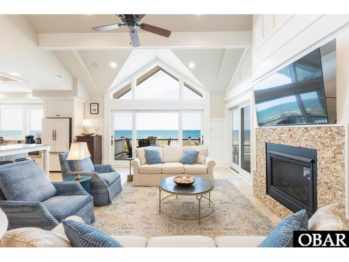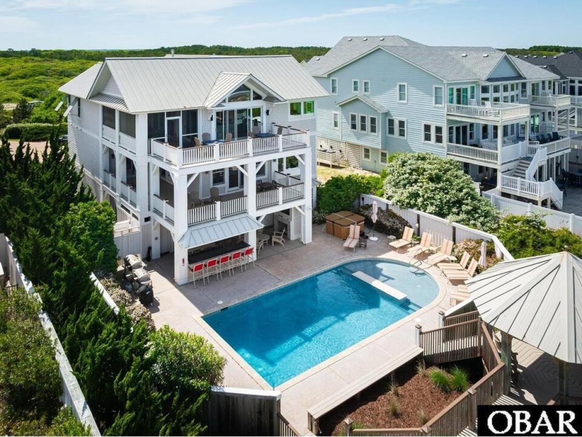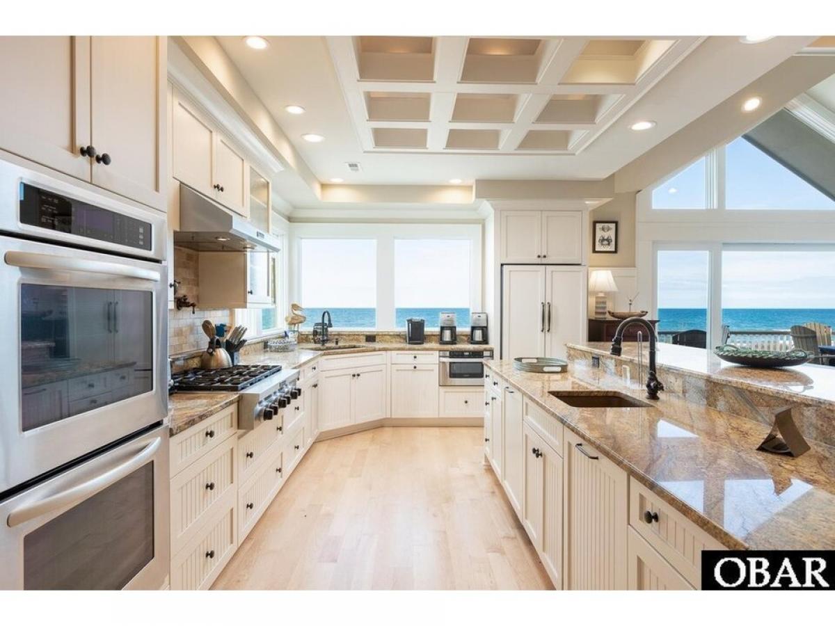 Discover the epitome of luxurious coastal living in the premier neighborhood of the Pine Island Reserve of Corolla. This stunning oceanfront home boasts breathtaking views of the Atlantic Ocean, the serene salt marsh looking over the Audubon Society, and the picturesque Currituck Sound, offering a perfect blend of luxury and tranquility, all set against the backdrop of secluded beaches. Sunrises and sunsets are all yours! NEW updates include new living room furniture, new carpet in all bedrooms, new LVP in mid level common areas, newly refinished maple floors, new outdoor fireplace, and more! Step into the grand master suite, a true sanctuary featuring a double sided gas fireplace shared with the spacious dressing room. Enjoy your private deck with captivating sound viewshellip; a perfect spot to unwind. The opulent master bath features heated tile floors and a convenient laundry area, providing both comfort and functionality. The main living area is designed for entertaining, with ample gathering spaces for friends and family of all ages. The gourmet kitchen is a chefs dream, featuring exquisite cabinetry, newly upgraded granite countertops, wine cooler, a six burner stove, dual refrigerators, dishwashers, a wall oven, and warming drawers. The living room with a double sided fireplace seamlessly connects to a screened in porch for relaxing and enjoying the coastal breeze. The home is also equipped with an elevator stopping at all 3 levels for easy access. The mid-level of the home offers a variety of bedrooms and a recreation room, equipped with a pool table and kitchenette, perfect for family fun. A dedicated theater room with tiered seating, enhances your entertainment experience, while another covered porch provides additional outdoor space. Venture to the first level where you#039;ll find an outdoor cabana with gas fireplace and a tiki bar, surrounded by beautiful landscaping that enhances the properties charm. Enjoy sunny days by your private pool or host barbecues in the outdoor cooking area. The beach is just steps away complete with a private covered gazebo for sunbathing and enjoying beachfront gatherings.