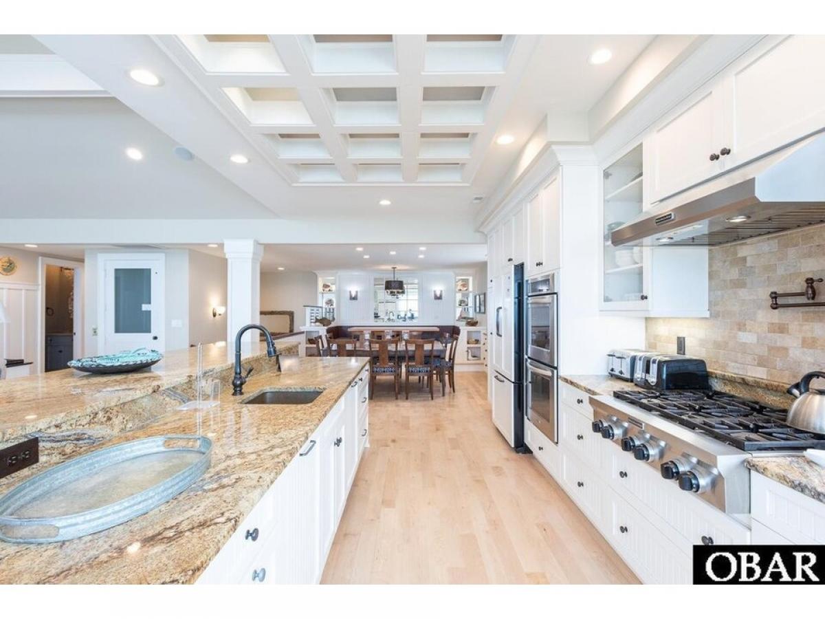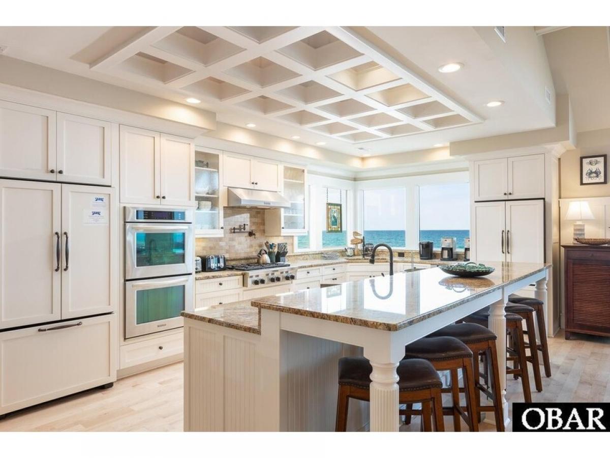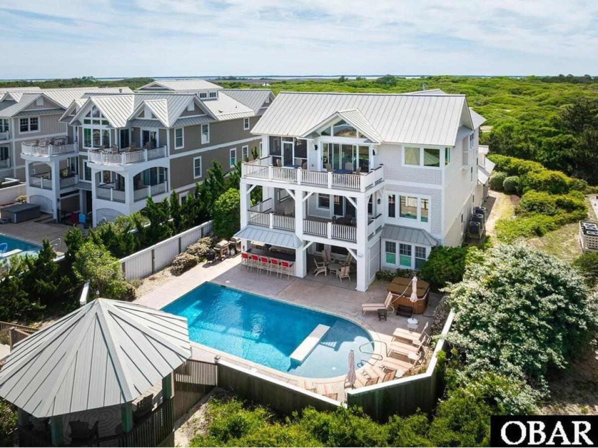 Discover the epitome of luxurious coastal living in the premier neighborhood of the Pine Island Reserve of Corolla. This stunning oceanfront home boasts breathtaking views of the Atlantic Ocean, the serene salt marsh looking over the Audubon Society, and the picturesque Currituck Sound, offering a perfect blend of luxury and tranquility, all set against the backdrop of secluded beaches. Sunrises and sunsets are all yours! NEW updates include new living room furniture, new carpet in all bedrooms, new LVP in mid level common areas, newly refinished maple floors, new outdoor fireplace, and more! Step into the grand master suite, a true sanctuary featuring a double sided gas fireplace shared with the spacious dressing room. Enjoy your private deck with captivating sound viewshellip; a perfect spot to unwind. The opulent master bath features heated tile floors and a convenient laundry area, providing both comfort and functionality. The main living area is designed for entertaining, with ample gathering spaces for friends and family of all ages. The gourmet kitchen is a chefs dream, featuring exquisite cabinetry, newly upgraded granite countertops, wine cooler, a six burner stove, dual refrigerators, dishwashers, a wall oven, and warming drawers. The living room with a double sided fireplace seamlessly connects to a screened in porch for relaxing and enjoying the coastal breeze. The home is also equipped with an elevator stopping at all 3 levels for easy access. The mid-level of the home offers a variety of bedrooms and a recreation room, equipped with a pool table and kitchenette, perfect for family fun. A dedicated theater room with tiered seating, enhances your entertainment experience, while another covered porch provides additional outdoor space. Venture to the first level where you#039;ll find an outdoor cabana with gas fireplace and a tiki bar, surrounded by beautiful landscaping that enhances the properties charm. Enjoy sunny days by your private pool or host barbecues in the outdoor cooking area. The beach is just steps away complete with a private covered gazebo for sunbathing and enjoying beachfront gatherings.