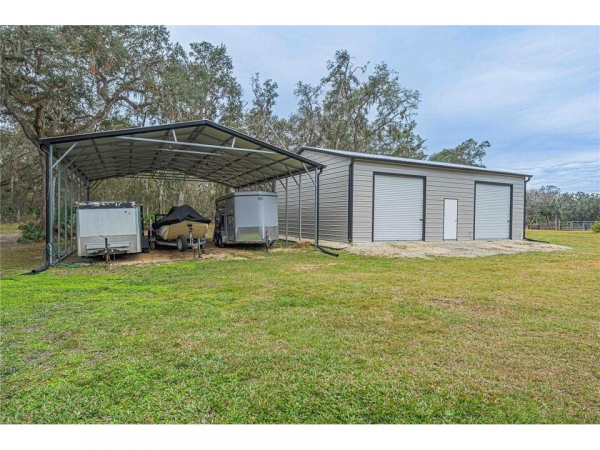 Are you looking for the perfect MINI FARM?? Here it is!! This 8.3 acres is set up for your animals and your toys. The home is a 3 bedroom, 2 bath, 2 car garage with a full 3rd bath in the garage. There is another 2 car 22 x 22 detached garage with concrete floor and electric. There is a 30 x 40 shop with concrete floor, water, and 12 ft doors. There is also a 30 x 40 open sided carport (10 ft height) for all your equipment storage. Next, you have a 2 stall open style barn with run ins. There are 2 pastures for your horses. The home has been updated with a new kitchen, 2 baths have been updated also. The kitchen has all new cabinets with crown molding, granite countertops and new SS appliances. There is sliding doors that go to the screened porch where you can sit and enjoy watching your animals and property. Off of the screened back porch is a deck for entertaining or grilling out. The front porch is screened in also. You have a fenced back yard, and a fenced dog run area, and a fenced area for the chicken coop and pigs huts. This farm is well laid out and is designed for the animal lover. There is a pond (wetlands) on the back of the property. Owner did not have to have flood insurance. You will see an abundance of deer and wildlife. Bring your BOAT because this mini farm is just down the road from Lake Panasoffkee which is a 3258+acre lake and has some of the best fishing in the area. It is also conveniently located near the Village#039;s for Restaurants and Entertainment MAKE AN APPOINTMENT TODAY TO SEE YOUR NEW FARM!!!