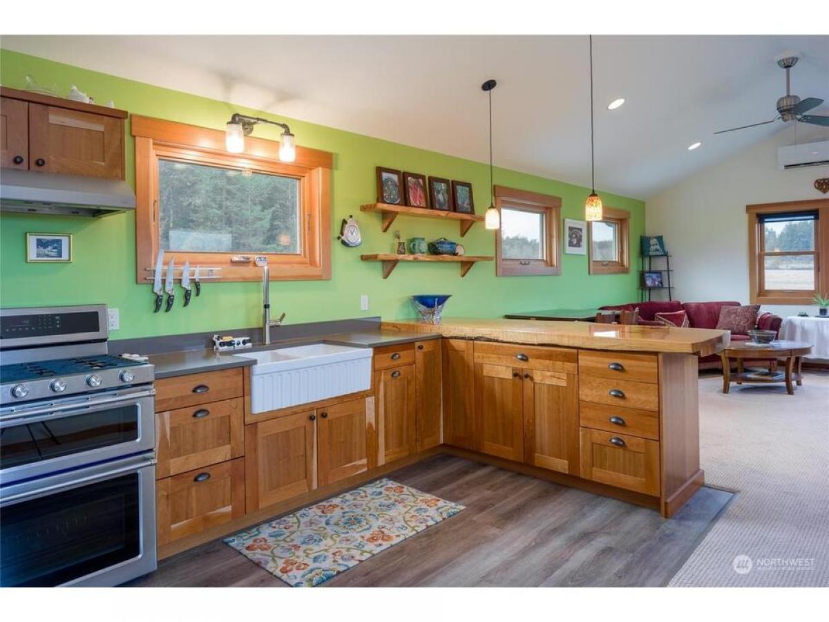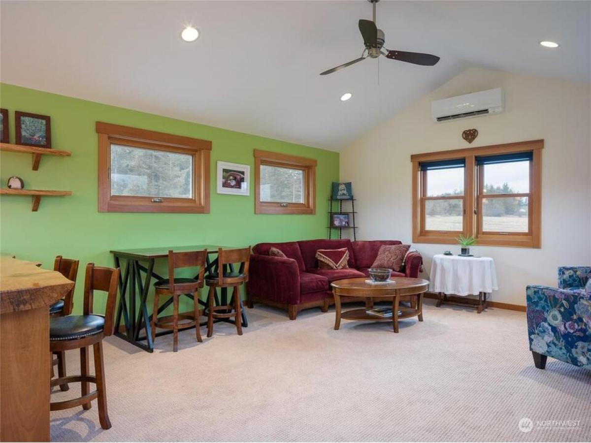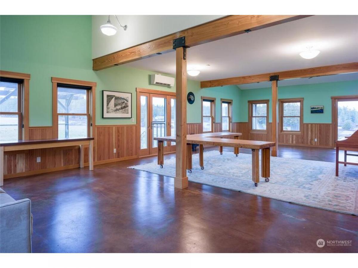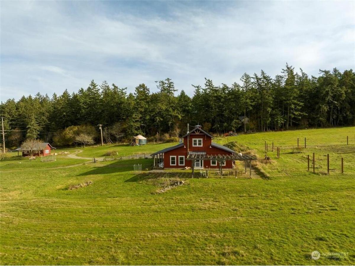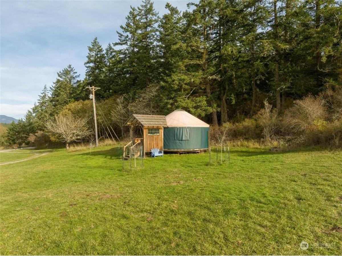 The Fork in the Road on Lopez Island: Grow, graze, harvest, homestead, and host at this modern farmhouse on almost 30 acres overlooking historic farmlands. The 3,360 sf multipurpose structure houses a one-bedroom apartment upstairs and a spacious great room/dining space, licensed food establishment kitchen, storage bay, and shop on the main level. The yurt, farmstand, all the infrastructure for another build site, landmark sequoia tree and heirloom orchard, upper pasture, and acres of native forest are also situated on the eastern parcel. The western parcel, protected by a conservation easement, provides pastoral views and agricultural opportunities. Ideally located between the ferry landing and village for your farm-to-table ventures.