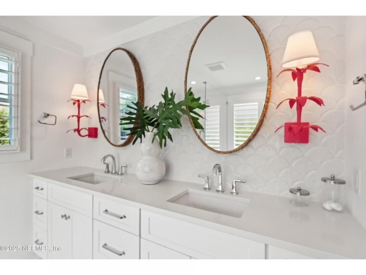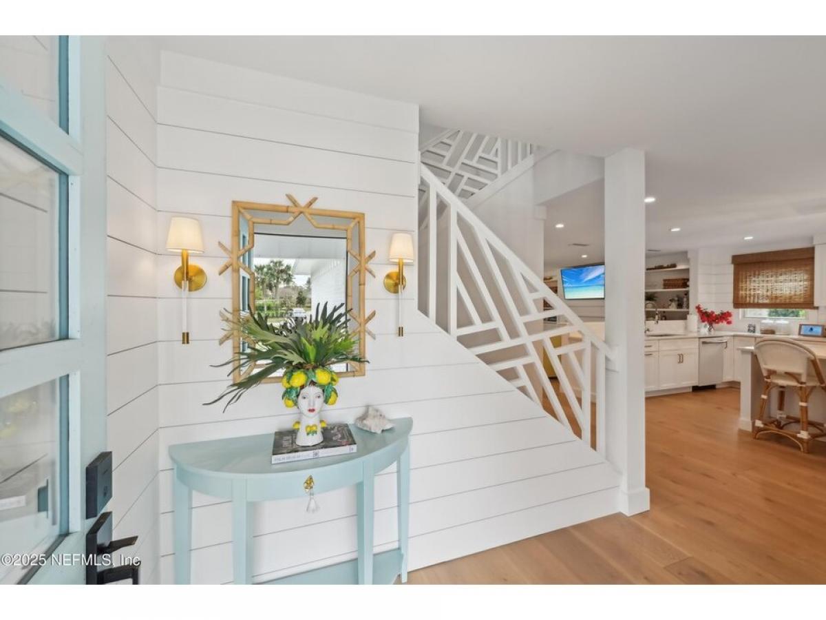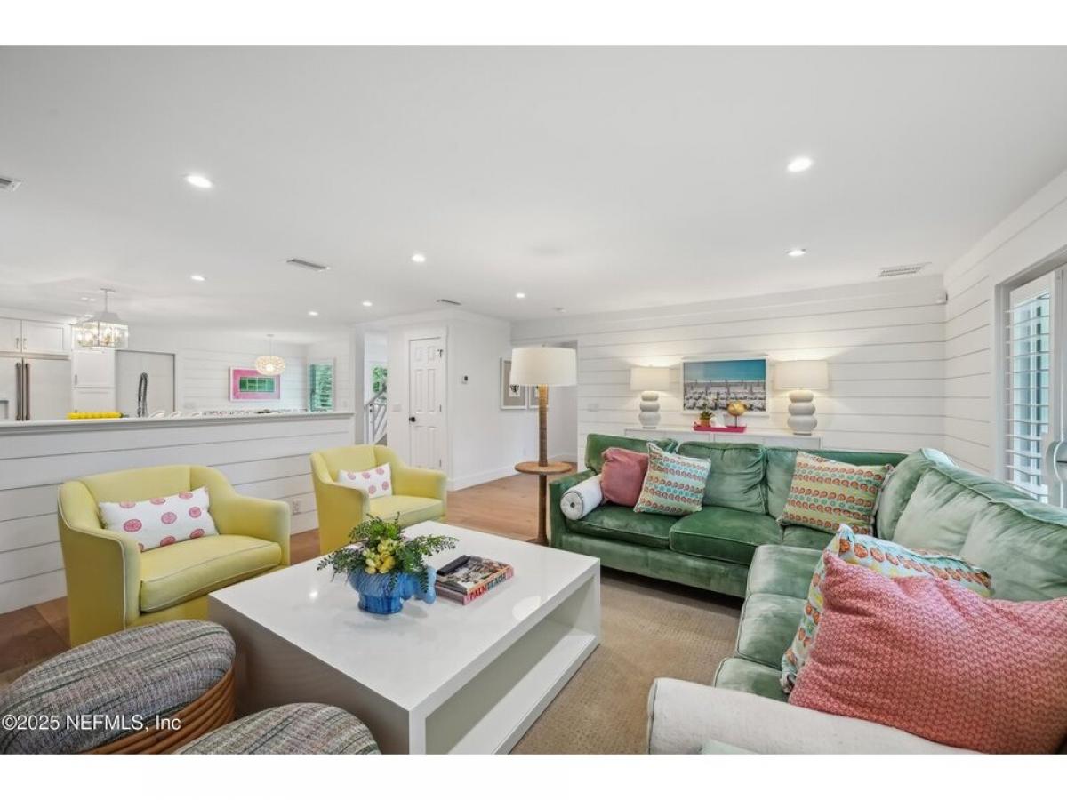 Located east of A1A. Stunning Palm Beach Regency-style bungalow pool home located in a quiet neighborhood in the heart of Ponte Vedra Beach fully remodeled. Originally built in 1984, extensive remodel completed in November 2022. Second story was added, high-functioning living space designed and a state-of-the-art kitchen positioned. Professionally designed and decorated. Bold black-and-white striped awning in front, a Chippendale stair rail inside and a light but vibrant blue front door. Use of bold designer elements through out. House features French Oak Engineer flooring, shiplap, designer wall paper and custom built ins. Home is centrally located and close to the beach.