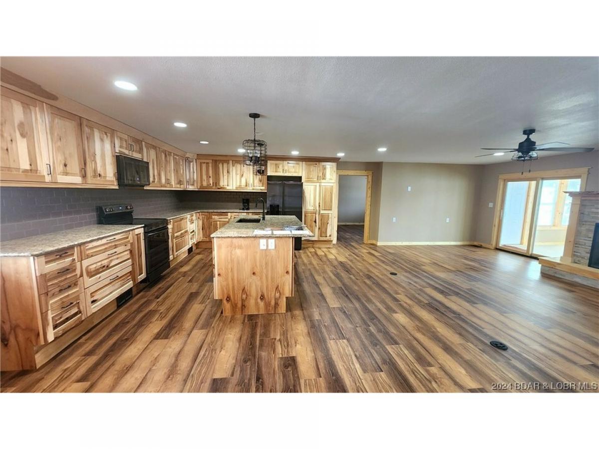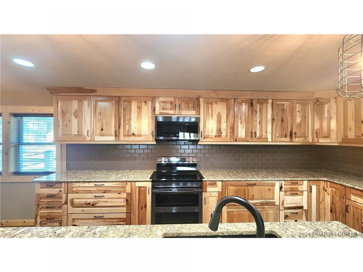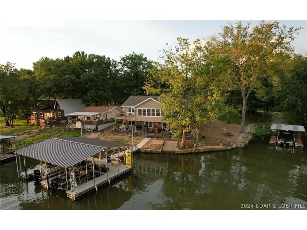 Custom lakefront home at the 61 MM was built in 2022 and has a new 2 well concrete dock with lifts, just a few steps down from the expansive covered patio for entertaining. This home boasts a chef's dream kitchen with beautiful quartz countertops, black stainless steel appliances and a large island open to the living room that flows onto the lakeside sunroom. This home is fully handicap accessible with wide doorways and a sidewalk to the lower level. Beautiful views, fireplace on each level, large primary ensuite, 3 nice sized bedrooms, plenty of parking and areas to entertain family and friends. This dream lake home is located near The Loop ATV Park and the Ozark International Raceway, in addition to several lakeside restaurants and bars! It would make a fabulous fulltime home, vacation home or a great rental. You won't find a nicer home at this price!