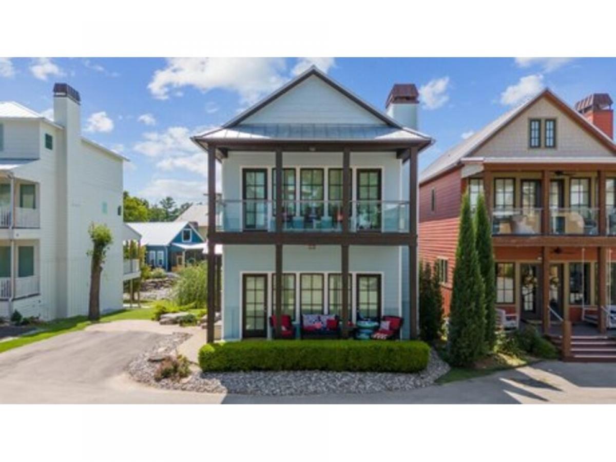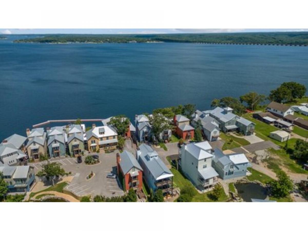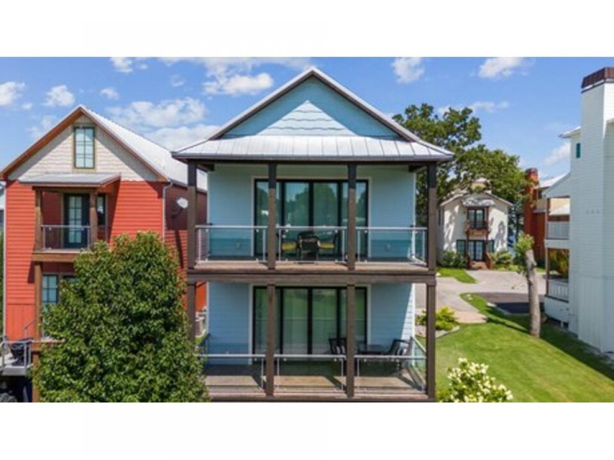 This amazing home has it all with a spacious open living and kitchen area, 4 bedrooms with en suites plus a powder room. Living room has walls of windows and fireplace to enjoy in any season. A boat slip is included as well. Fabulous neighborhood with a nice community feel. The home has a covered patio on every floor to relax with the waterfalls, creeks and ponds as your backdrop and covered porch and decks on lake side as well as a covered patio for grilling right outside the kitchen - 900SF +/- of patio space. Whether you are using this for your family and friends or for short term rental it sleeps 18+. Community pool and patio with fireplace and a tram inside lighthouse for loading items to the boat slip are just a few nice amenities.