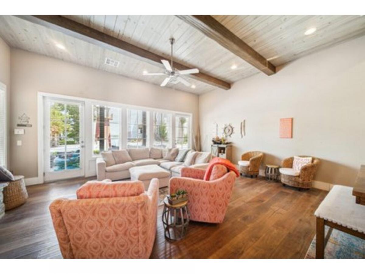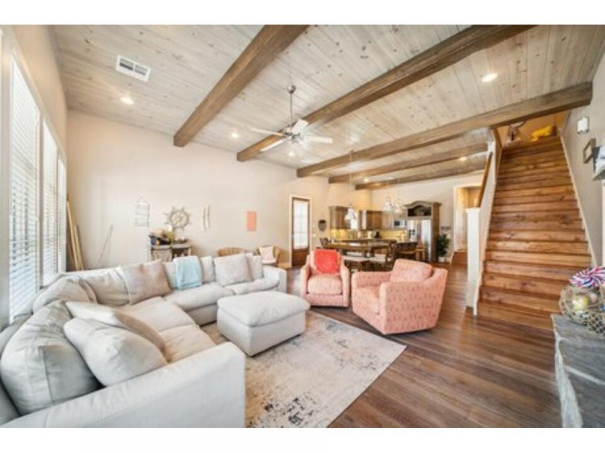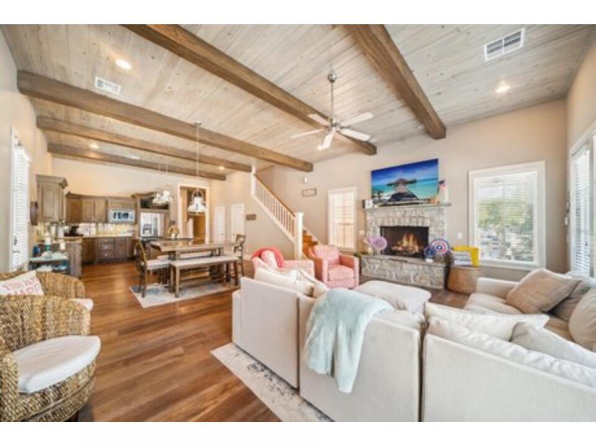 This amazing home has it all with a spacious open living and kitchen area, 4 bedrooms with en suites plus a powder room. Living room has walls of windows and fireplace to enjoy in any season. A boat slip is included as well. Fabulous neighborhood with a nice community feel. The home has a covered patio on every floor to relax with the waterfalls, creeks and ponds as your backdrop and covered porch and decks on lake side as well as a covered patio for grilling right outside the kitchen - 900SF +/- of patio space. Whether you are using this for your family and friends or for short term rental it sleeps 18+. Community pool and patio with fireplace and a tram inside lighthouse for loading items to the boat slip are just a few nice amenities.