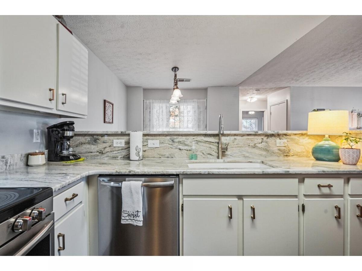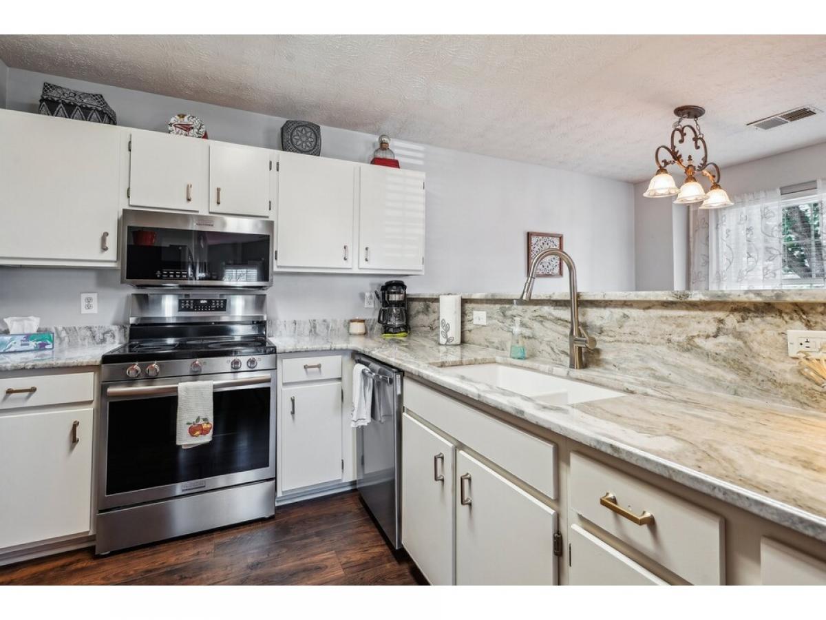 Darling, one-level end unit on quiet street in convenient location; Well-maintained by owner with recent updates and new windows; Granite countertops, stainless, matching appliances including refrigerator, and LVP in kitchen; Vaulted ceiling and wood burning fireplace in living room; Master bedroom suite and walk-in closet in 2nd bedroom as well as spacious full second bathroom. Plenty of storage space in garage that includes attic; Excellent opportunity for investors, first time homebuyers or empty nesters; Seller to pay $5,000 towards closing costs/buydown.