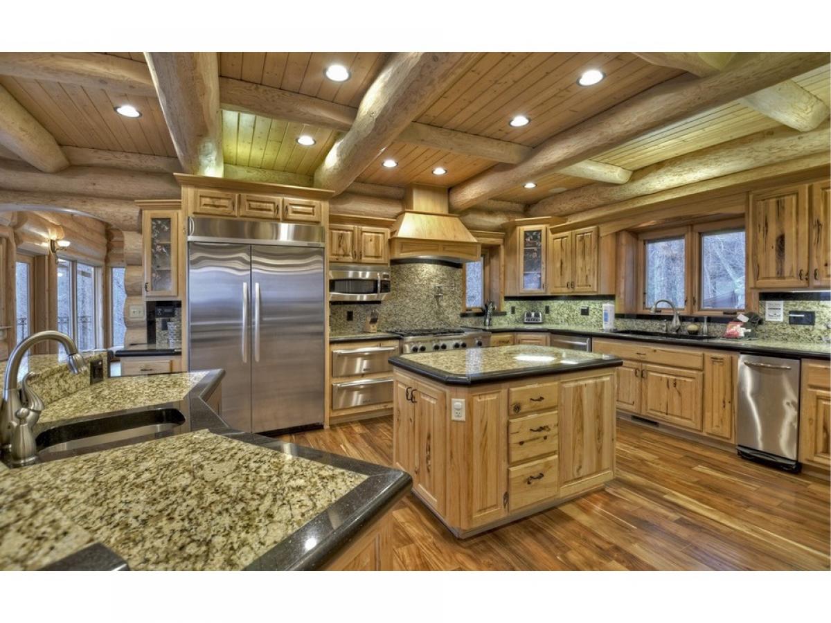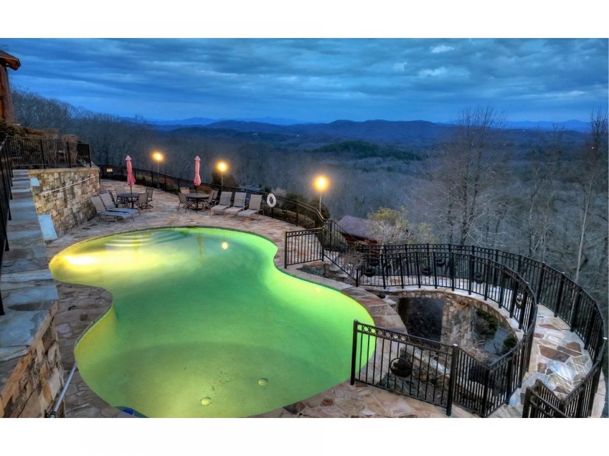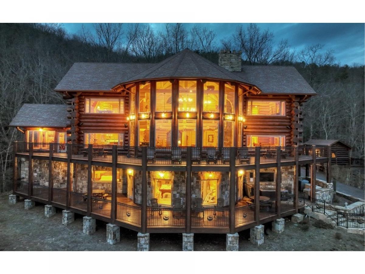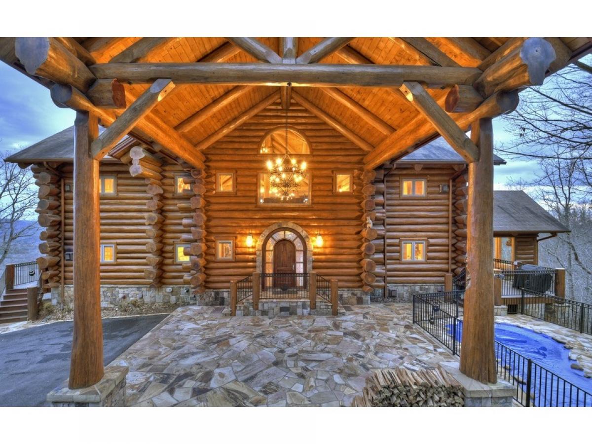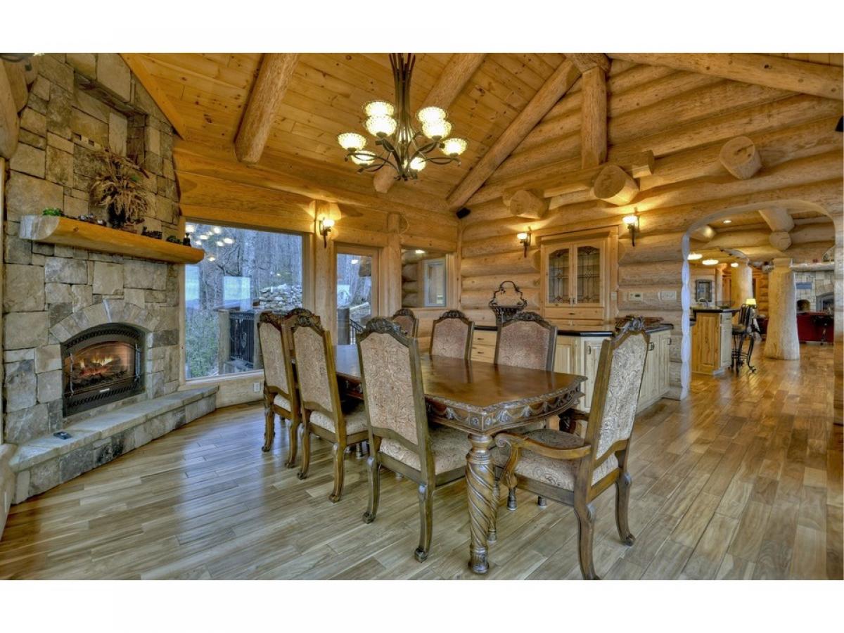 MAKE A STATEMENT IN THIS STUNNER.. British Columbian Cedar Log home is a masterpiece featuring every possible amenity.. Nearly Every Room stuns with a view of the world through these walls of glass, 5bdrm suites, 4.5baths, home theatre, rec room w/ full kitchen & wet bar, fitness room, elevator shaft, executive office w/ gorgeous built-ins, large loft, intricate carvings throughout, massive stone fireplaces,baths feature detailed tile work, carved glass & fireplaces above jacuzzi tubs, 2 car garage, helicopter pad, sky high massive timber portico, in-ground grande hot tub & vanishing edge pool overlooking 180 degree 100 mile unobstructed mtn views!!! This Mountain Top Manor offers the life of the rich & famous-great for full time estate, mountain getaway, or corporate retreat & more..very private all paved access, and large tract offers ultimate privacy at top of mountain...Excellent rental history and fabulously furnished...showcase home!