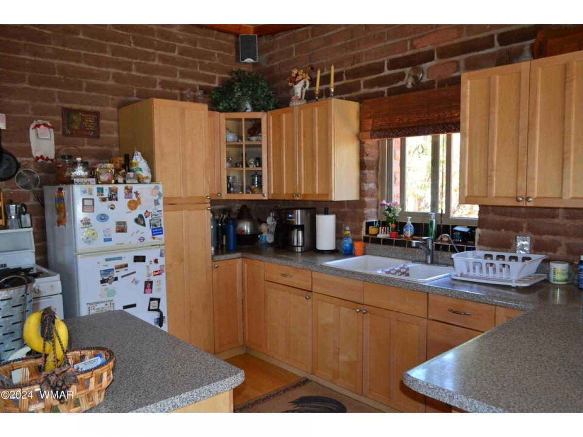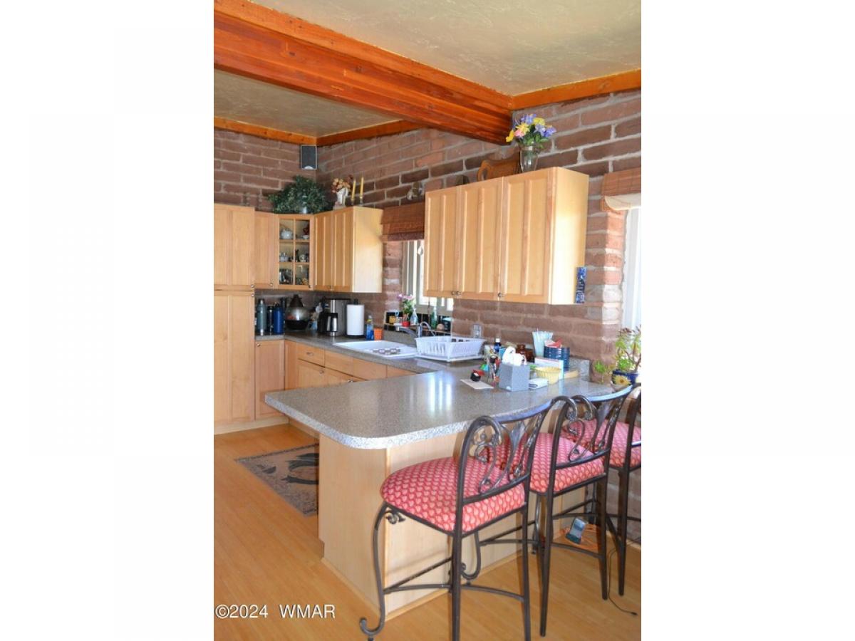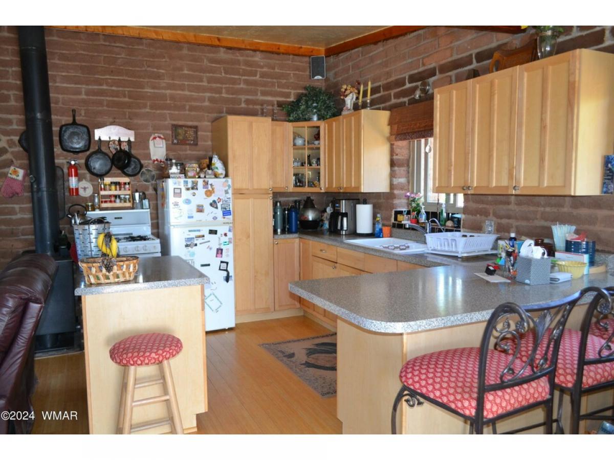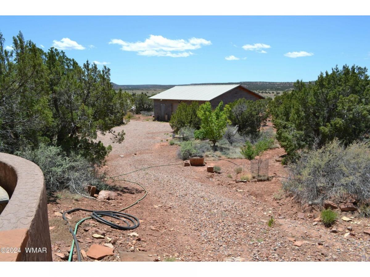 Beautiful, secluded property, nestled in the foothills of the Black Mesa to the East. The views are incredible. The owner built this home himself (he had a Masonry License when he built the home). Very sturdy home, built with concrete blocks and Adobe bricks, well insulated with foam and stucco. Passive solar from the Arizona Room. Lovely courtyard area with water feature, built in sink. Patio area also to the East side of the house. Nice kitchen with center island, wood burning stove in great room area and fireplace in the living room area. Attractive feature floor in the downstairs bathroom, along with a small soak in tub (owners grandchildren loved it when they were small). 30x40 detached garage with 8'' high doors, concrete block construction. Small studio behind garage. Off Grid, private well, fully fenced lot. Circular garden area with 6' chain link fence. Some fruit trees. The master bedroom is on the 2nd floor and has another room that could be a second bedroom. Did I mention the views? The road out is about half County maintained roads and 2-3 miles of non-maintained road, the road is not awful, but be prepared for dirt roads. Cash only due to no secondary source of heat, however, a thermostat controlled heater could be installed. Ideal home for Prepper - great bug out retreat!