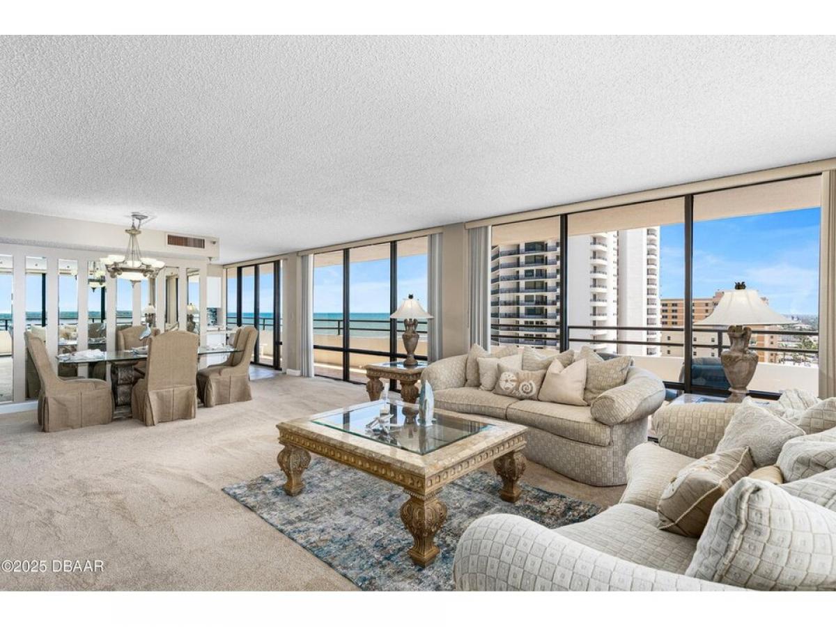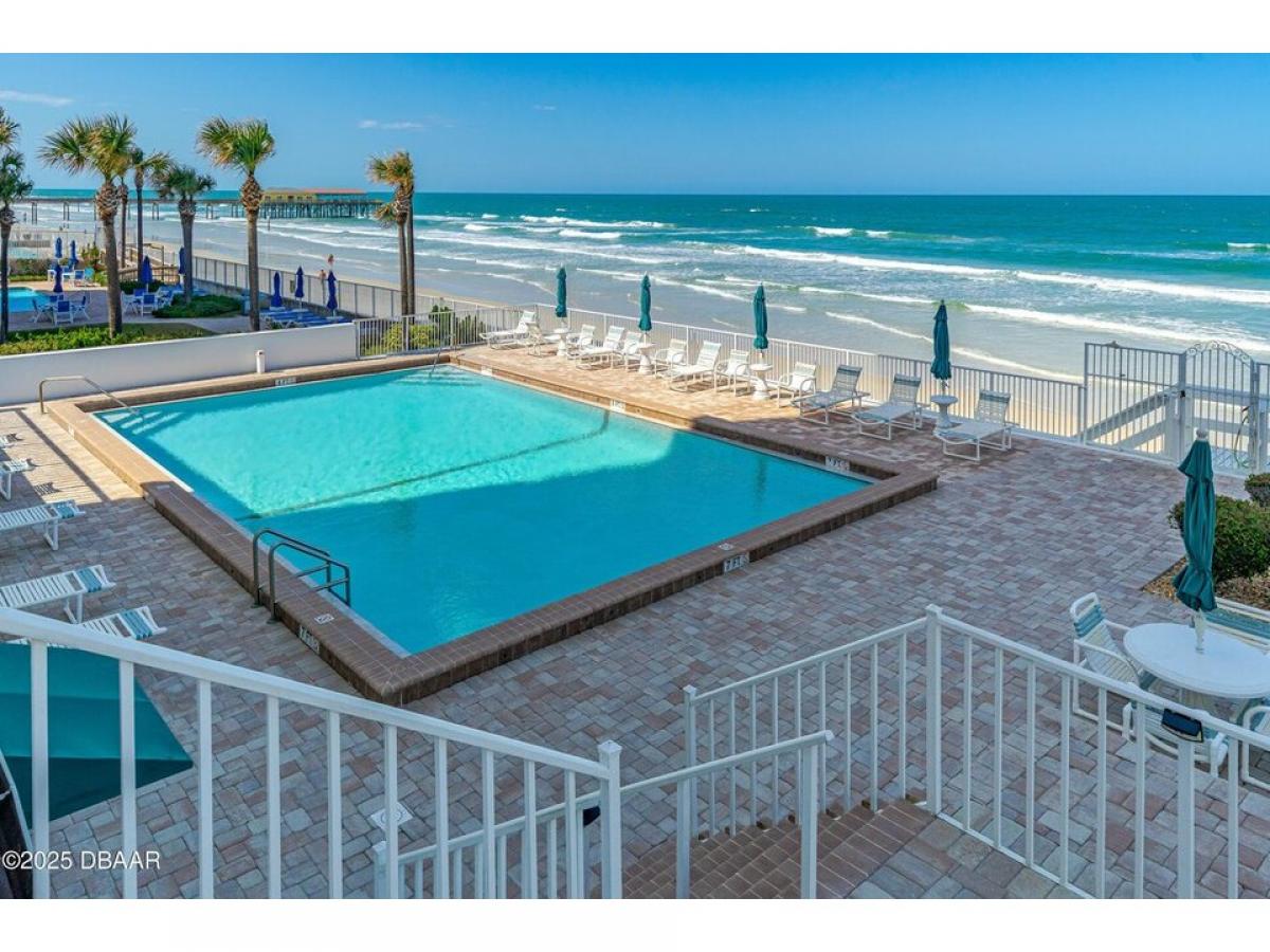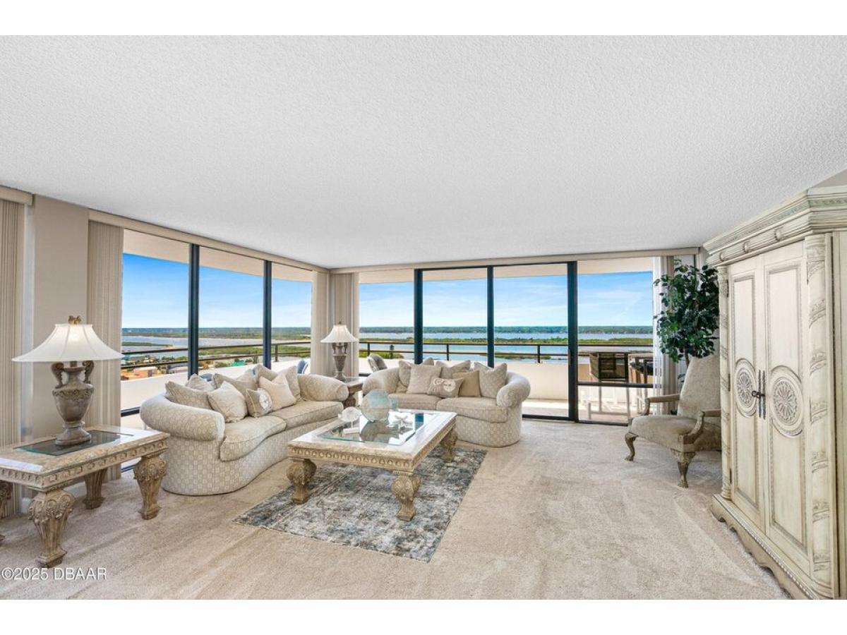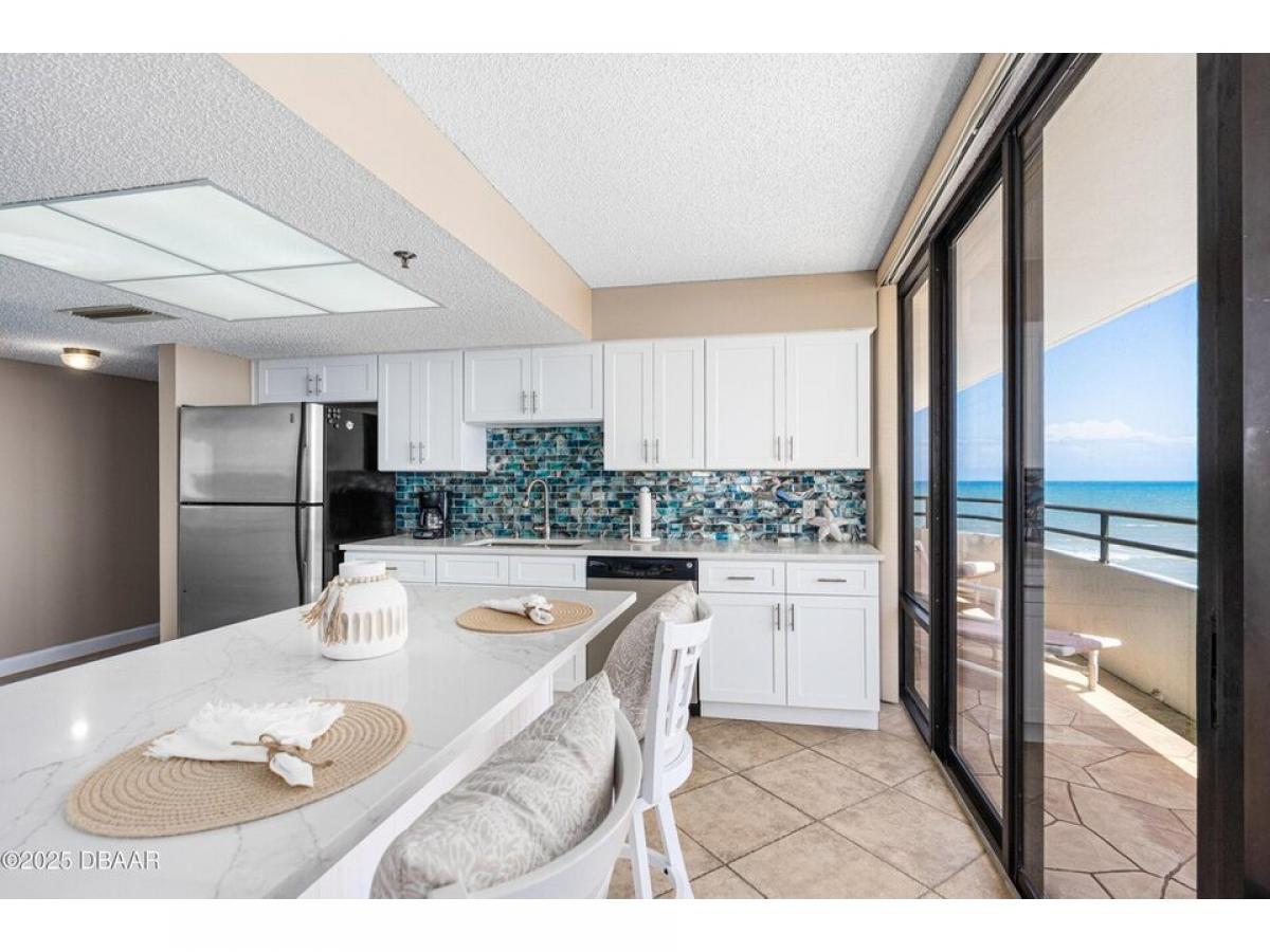 Welcome to paradise! This exquisite top-floor residence features 2 bedrooms and 2 baths, showcasing unobstructed oceanfront views complemented by sweeping panoramic views of the Intracoastal! Perfectly situated in the heart of Daytona Beach Shores, this corner unit features a stunning wrap around balcony, providing the perfect setting for both sunrise and sunsets. The entry greets you with an oversized, open living area and breathtaking waterfront views that sets the tone for the refined coastal living experience! The kitchen is recently updated with shaker-style cabinetry, stainless-steel appliances, Quartz countertops, and stunning coastal-style backsplash. Every room in the unit offers water views! The bedrooms are both generous in size, with plenty of storage. Freshly painted, and new AC, May 2024. A must see!