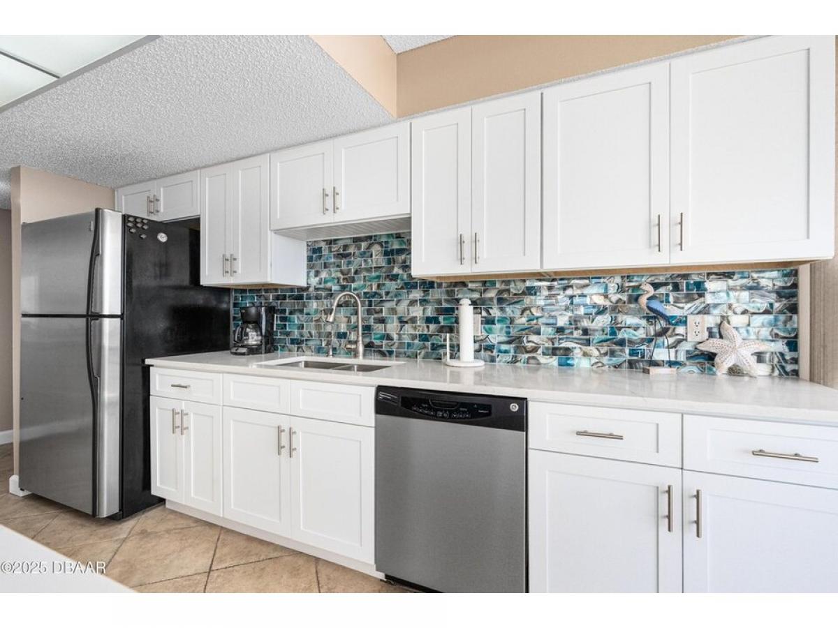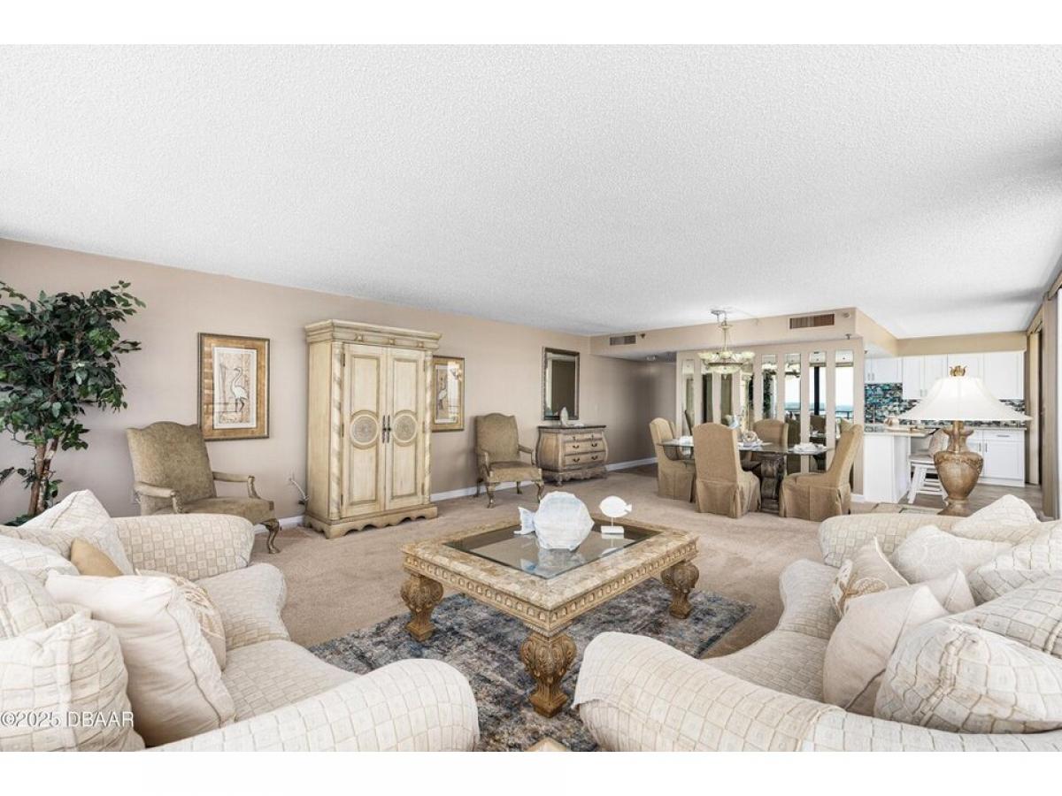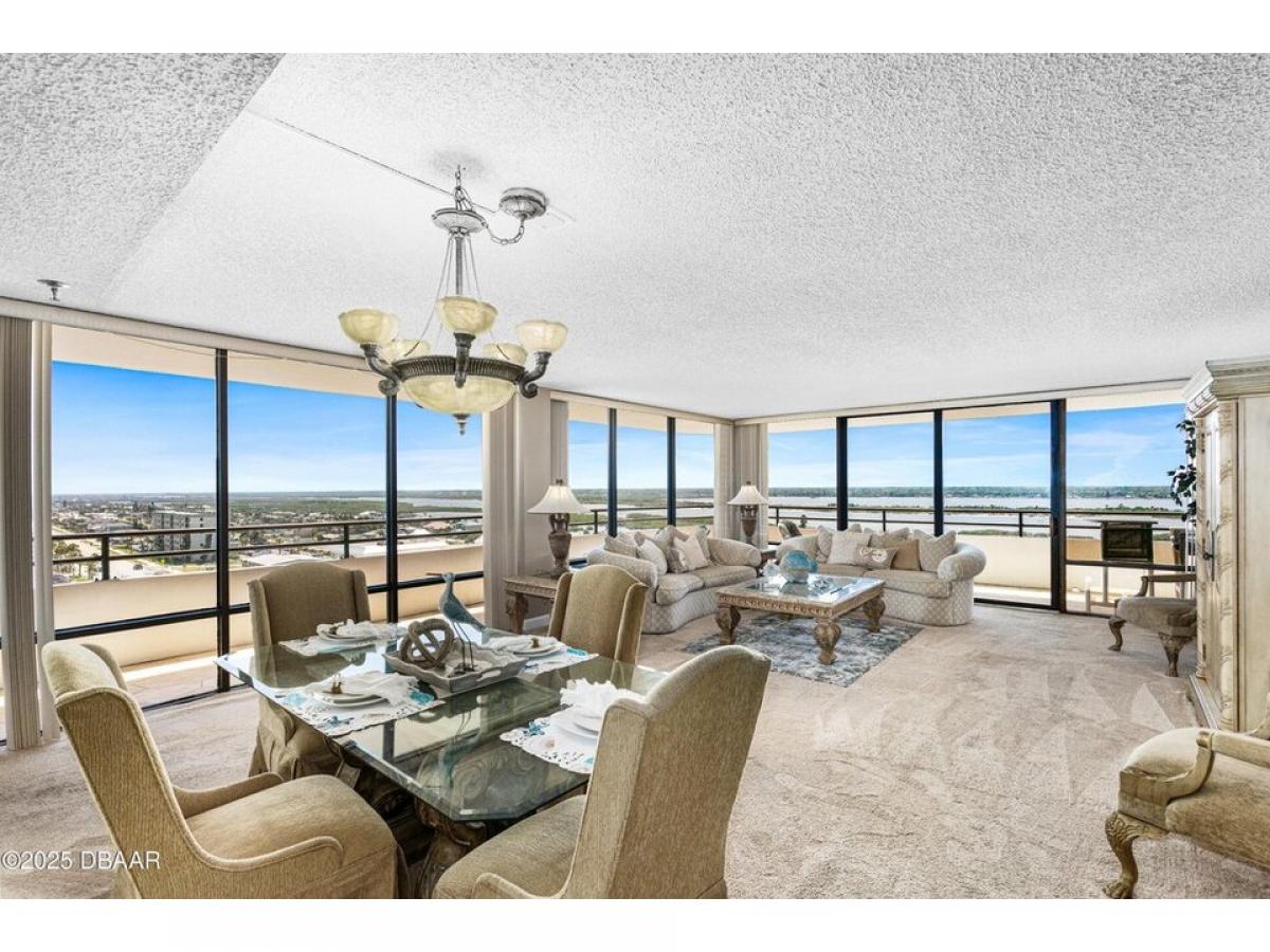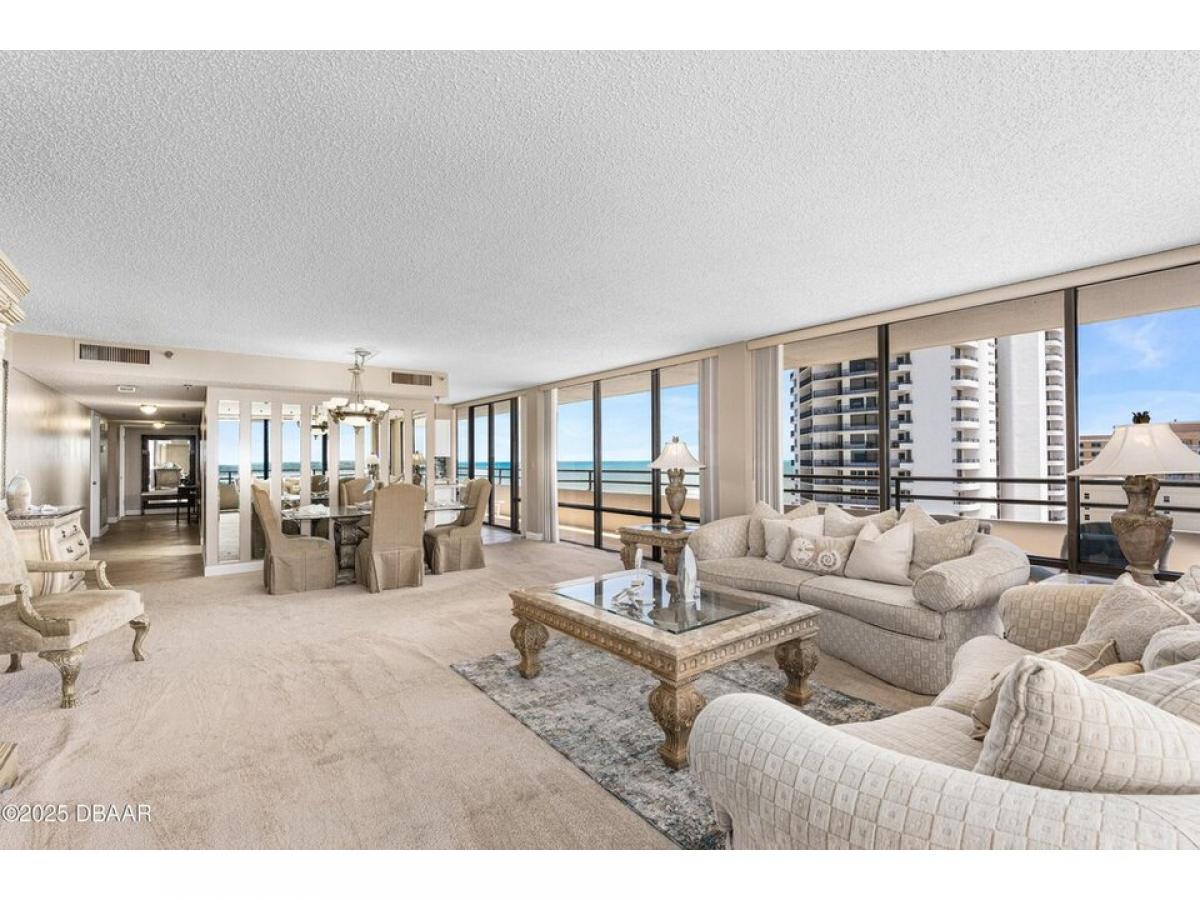 Welcome to paradise! This exquisite top-floor residence features 2 bedrooms and 2 baths, showcasing unobstructed oceanfront views complemented by sweeping panoramic views of the Intracoastal! Perfectly situated in the heart of Daytona Beach Shores, this corner unit features a stunning wrap around balcony, providing the perfect setting for both sunrise and sunsets. The entry greets you with an oversized, open living area and breathtaking waterfront views that sets the tone for the refined coastal living experience! The kitchen is recently updated with shaker-style cabinetry, stainless-steel appliances, Quartz countertops, and stunning coastal-style backsplash. Every room in the unit offers water views! The bedrooms are both generous in size, with plenty of storage. Freshly painted, and new AC, May 2024. A must see!