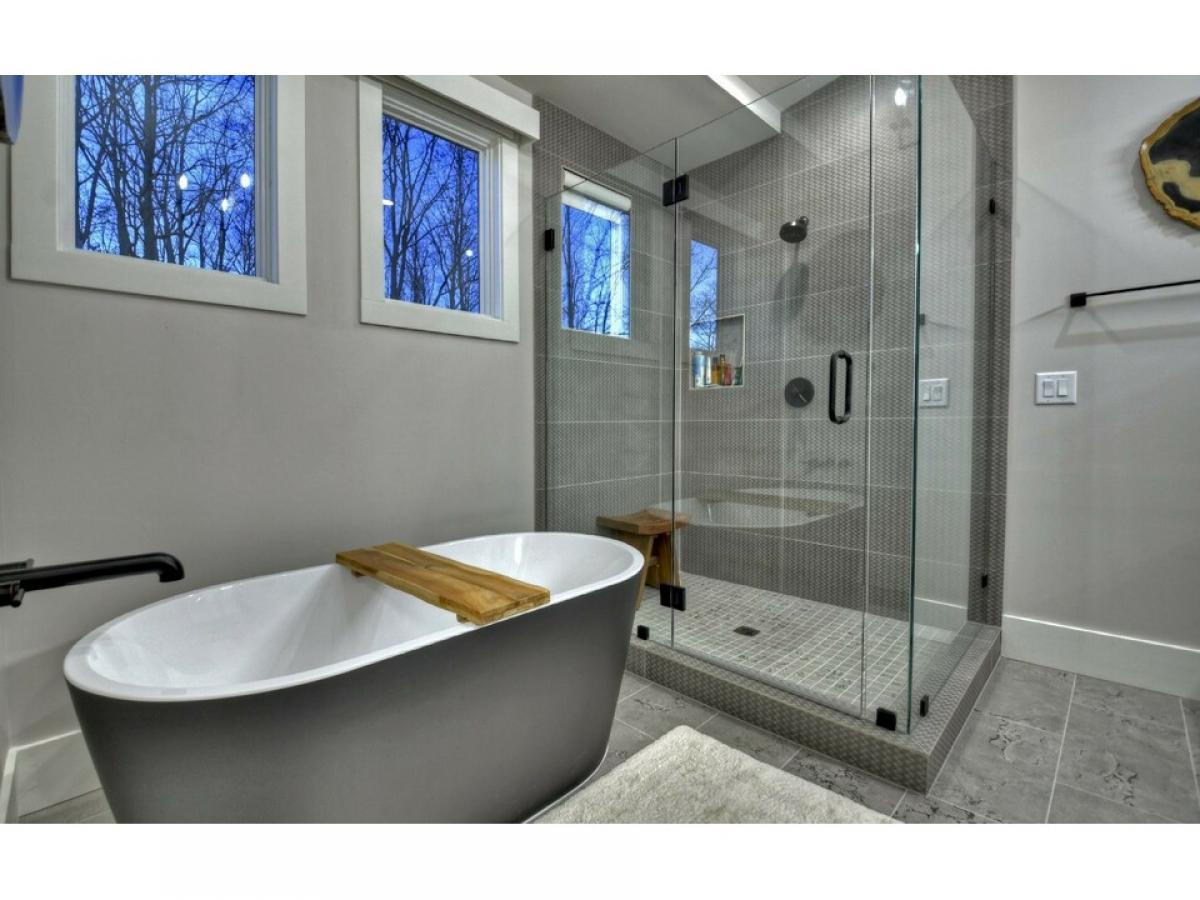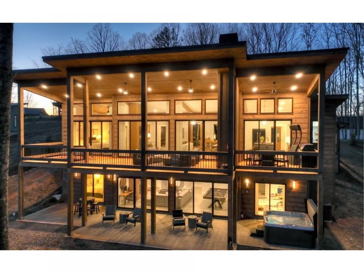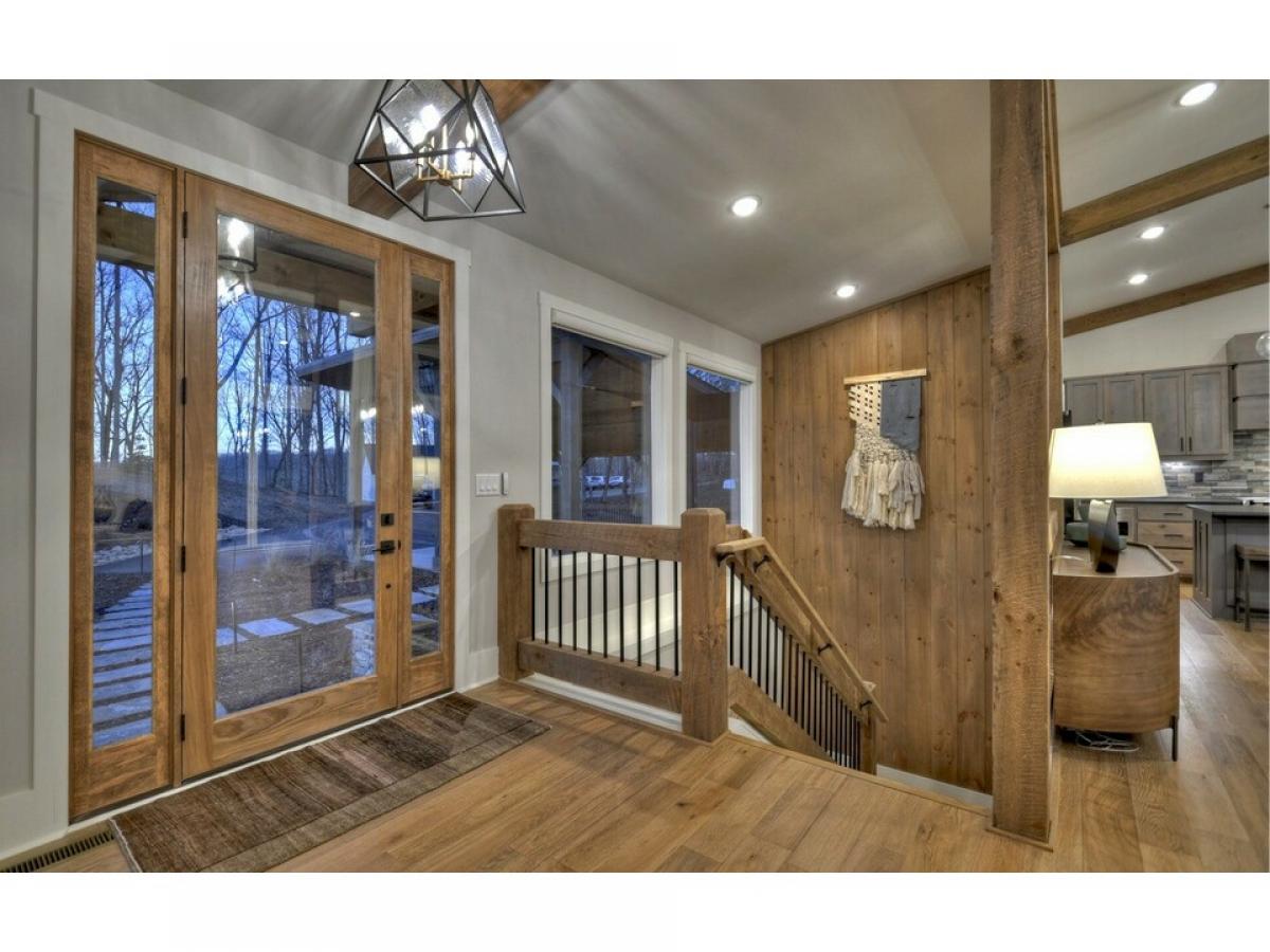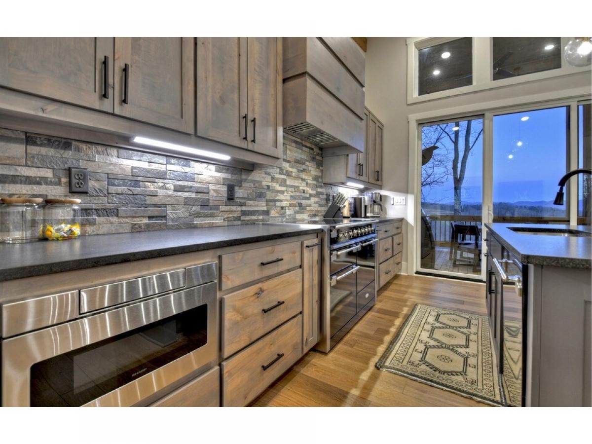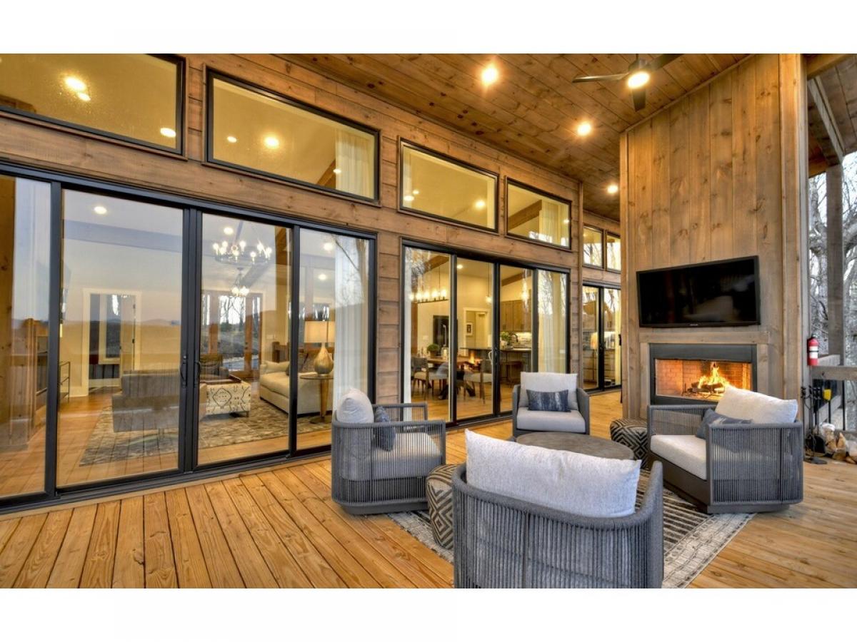 Refined Rustic Flair with Contemporary Lines & Modern Motif...this 3 bedroom/3.5 bath stunning property is nestled on gentle wooded tract with long range mountain & pastoral views...warm wood finishes with light drywall, plentiful glass & soaring ceilings, industrial and distressed finishes with sleek tile & stone accents, two indoor fireplaces, sliders open to expansive party porch with outdoor fireplace, spacious master feature ensuite spa feel bath with soaking tub & walk in shower, upscale fixtures & AGA appliances, flamed finished ganite counters & custom cabinetry throughout, modern lighting & beam work enhance the flow of the inviting, open floorplan, lower level with hot tub overlooks exquisite moutain views, office, den/rec room, wet bar, storage & entertaining deck, two car carport & outdoor storage area, lush landscaping & paved driveway, uniquely inviting & just off scenic road close to historic downtown, lake & river, with ultimate privacy, tastefully furnished, professionally decorated & ready to enjoy, this is one you'll want to see!