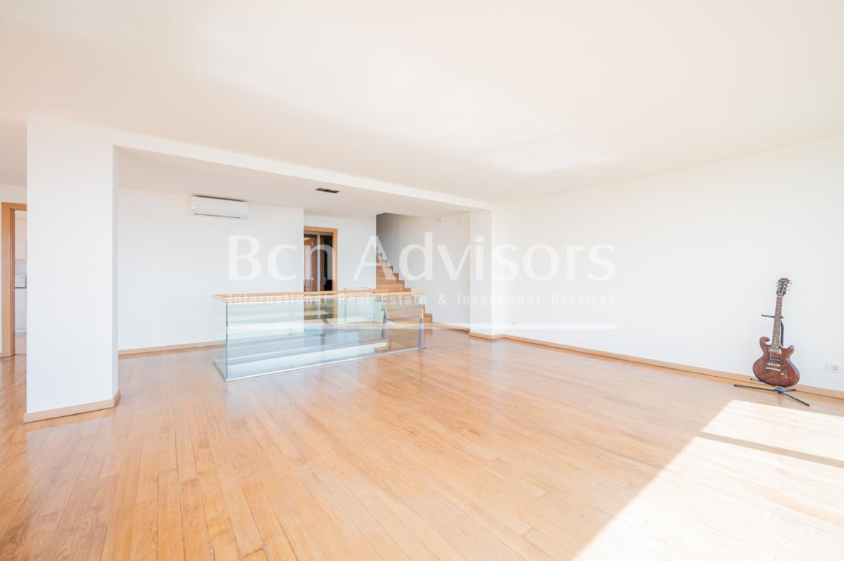 On the upper level, the master bedroom is a true private suite: it includes a full bathroom, dressing room, its own terrace and a serene and exclusive atmosphere. The day area, located on another floor, impresses with its spaciousness and luminosity, thanks to its large living-dining room, separate kitchen and direct access to 2 terraces with the most impressive views of the city. This floor also houses a guest bathroom.