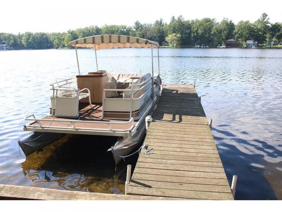 Just in time for summer fun. 3 bedroom cottage on 2 lots totaling 107 feet on 42 acre, All-Sport Sutherland Lake. This cottage has an open floor plan with a great view of the lake from the living area. There is a large deck off the living room to sit and have your morning coffee or cook outs in the evening. Walk your way down to the lake with your fishing pole and try your luck catching dinner or jump on the pontoon boat the seller is willing to include in the sale, and take a tour around the lake. There is a seawall to help protect from erosion and a fire pit area to sit in the evening and roast marshmallows. Inside the cottage you can enjoy a fire in the fireplace insert on those chilly evenings. All 3 bedrooms have closets to hang your clothes. There is a shed to store wood or garden tools and a 24x24, 2 car garage complete with electricity, concrete floor and garage door opener. Waterfront homes are getting harder to find so don't wait and make you appointment to see this gem. The seller is willing to leave most furnishings and a 1988, 21' Crest pontoon boat with a 28 horse Evinrude outboard motor.