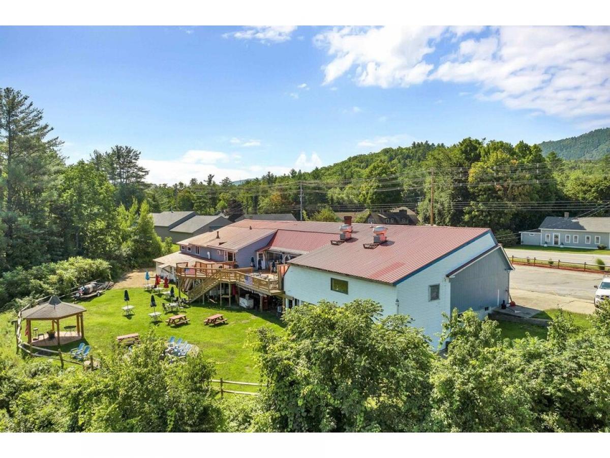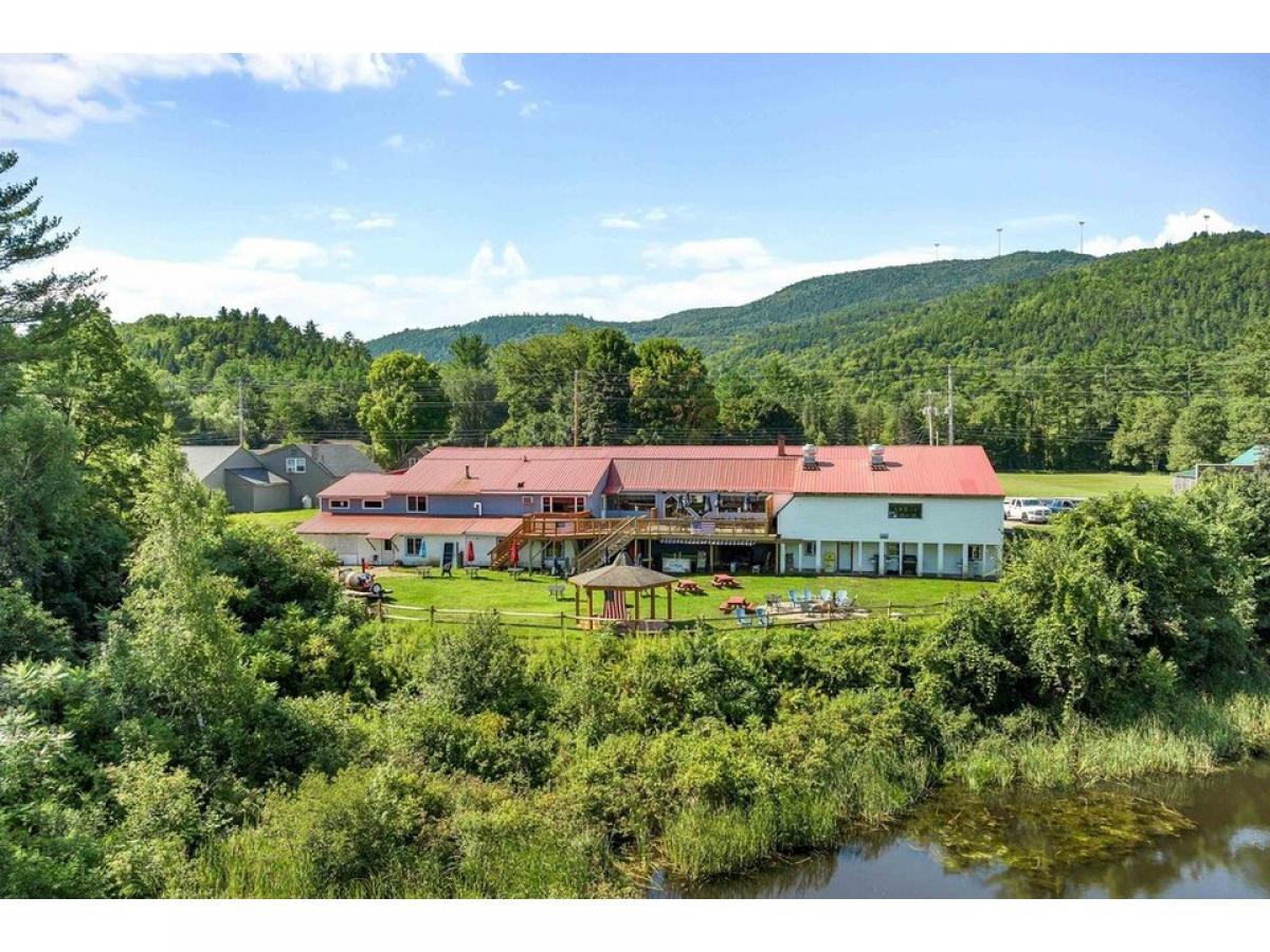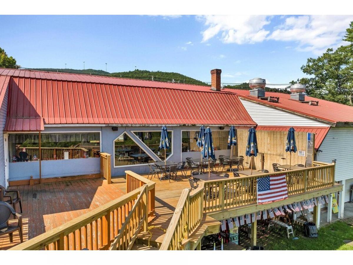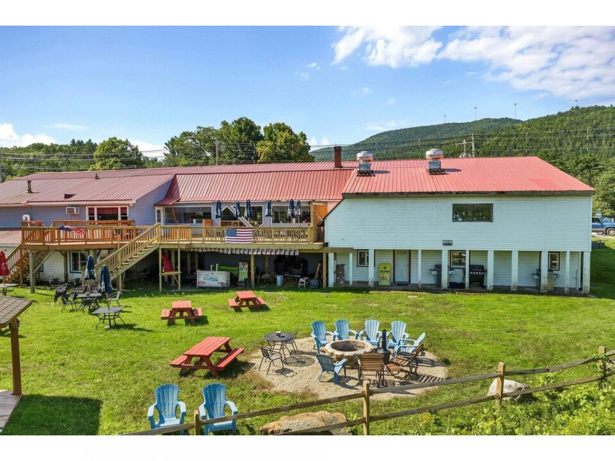 Restaurant/Apartment Building and Land for sale. Excellent location on Mount Moosilauke Highway (NH Route 25) with acreage in both Plymouth and Rumney NH. Near Rumney Rocks climbing area, Polar Caves, Plymouth State University, and Tenney Mountain Ski Area. Restaurant/Apartment building (vacant) with 458 feet of highway frontage on 14.2 acres (10+ acres in current use) including a beaver pond and direct waterfront on the Baker River. The potential uses for this property abound - restaurant space, short term or long term rental units, sub-divide, walking trails, camping, etc. Restaurant level includes 5332 sq ft. Walkout basement area includes 4,660 sq ft with 2-3 apartments (in need of some renovation) and storage area for ready rental income. Large deck off restaurant facing a pond, woodlands, and the Baker River. Large decks with a fantastic view with a gazebo and lawn area. Bring your hospitality business ideas.
