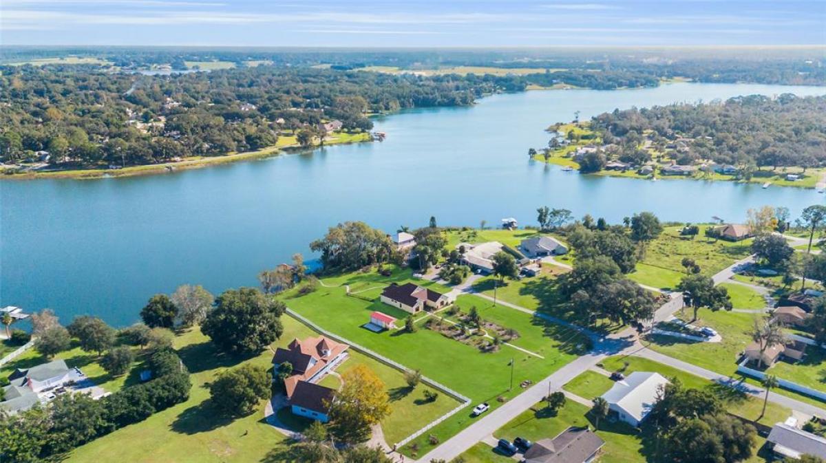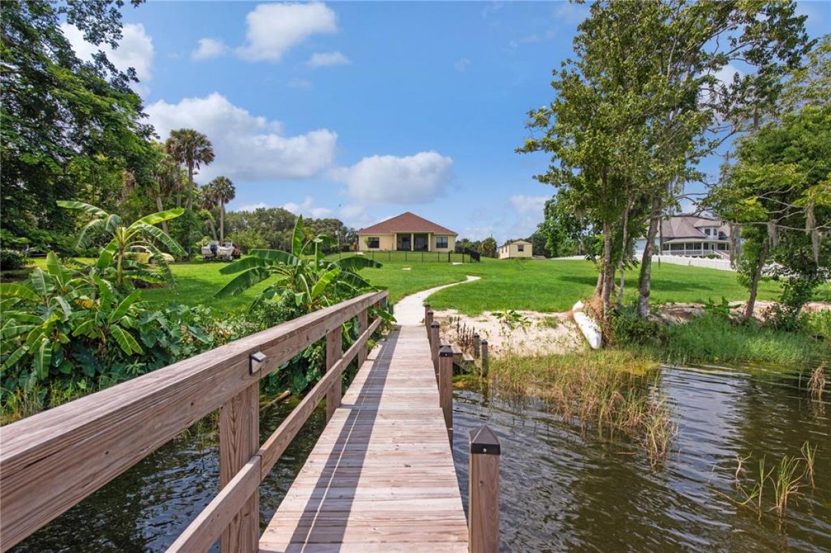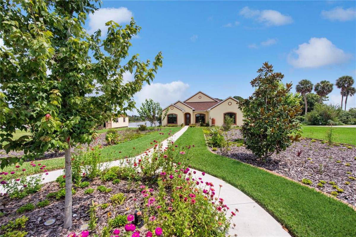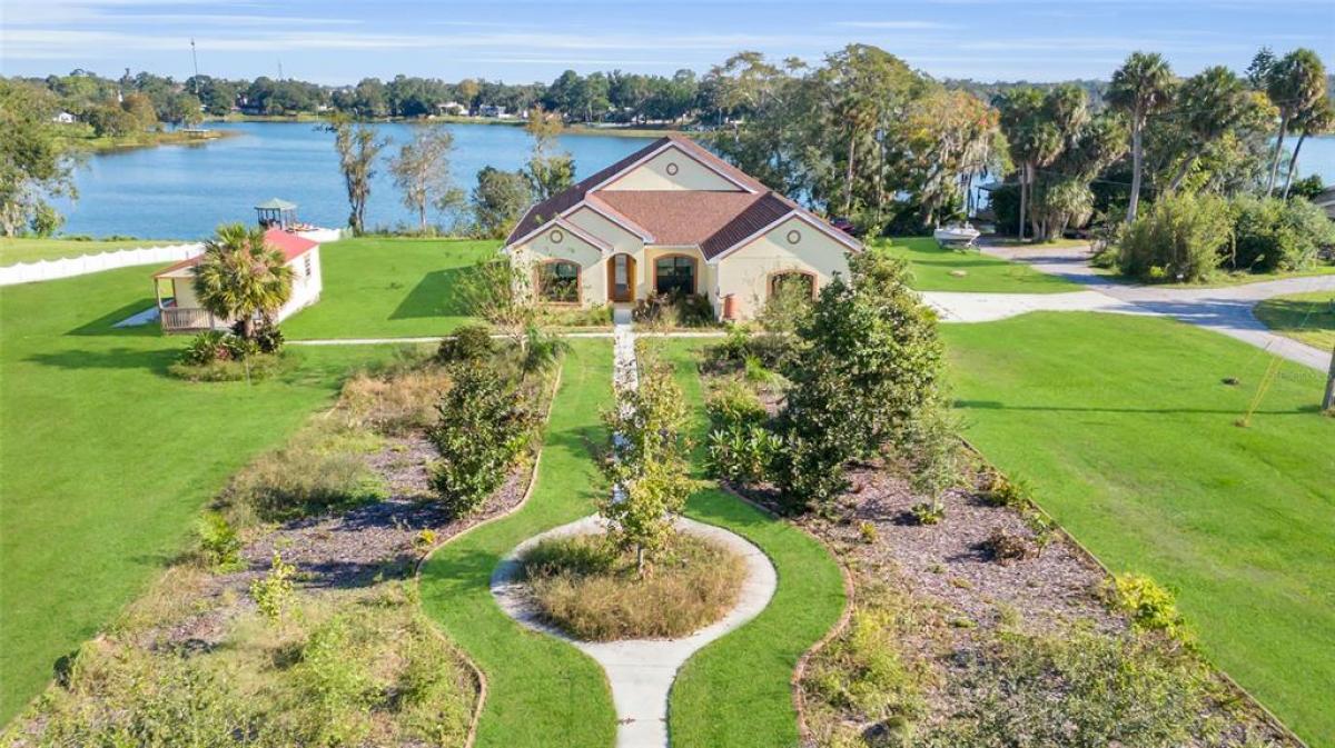 LAKEFRONT Mediterranean-style new home on over 1.6 acres on beautiful, spring-fed, skiable Lake Umatilla— a country home convenient to ORLANDO, The Villages, charming Mount Dora, Deland or Ocala. The chef’s DREAM KITCHEN features EXOTIC turquoise GRANITE, exclusive GE café appliances (refrigerator, gas range, dishwasher), a Samsung fume hood, SOLID WOOD CABINETS with full depth soft-closing drawers, a workstation sink, and a closet pantry. The kitchen overlooks the great room out to the screened lanai and PANORAMIC LAKE VIEWS through 16-foot sliders. Other features include 10-12 ft ceilings with CROWN MOLDING, five-inch baseboards, TWO MASTER ENSUITES facing the lake, each with roll-in showers and one with a soaking tub. There is a DOCK and COVERED BOAT HOUSE with lift for pontoon boat sunset cruises! The front yard features curbed planting areas full of flowering plants and trees including peach, plum, mulberry, kumquat, and blueberries surrounded by lush St. Augustine sod. A screened lanai overlooks the sodded back yard and cast aluminum fence to keep pets safe and dry. Then, a 14’ X 32’ shed with two roll-up doors and a front porch, painted to match the house provides additional storage. We love the private covered courtyard adjacent to the main master bedroom, and a 3 CAR GARAGE. Room for all your toys. NO HOA, No CDD! Stunning, so much under one roof! And with the new highways connecting Orlando, it truly will shorten your commute to PARADISE.