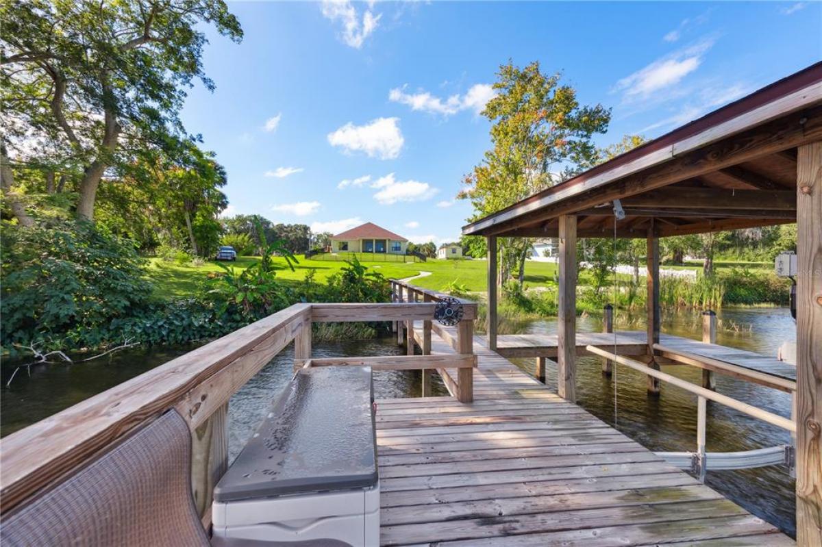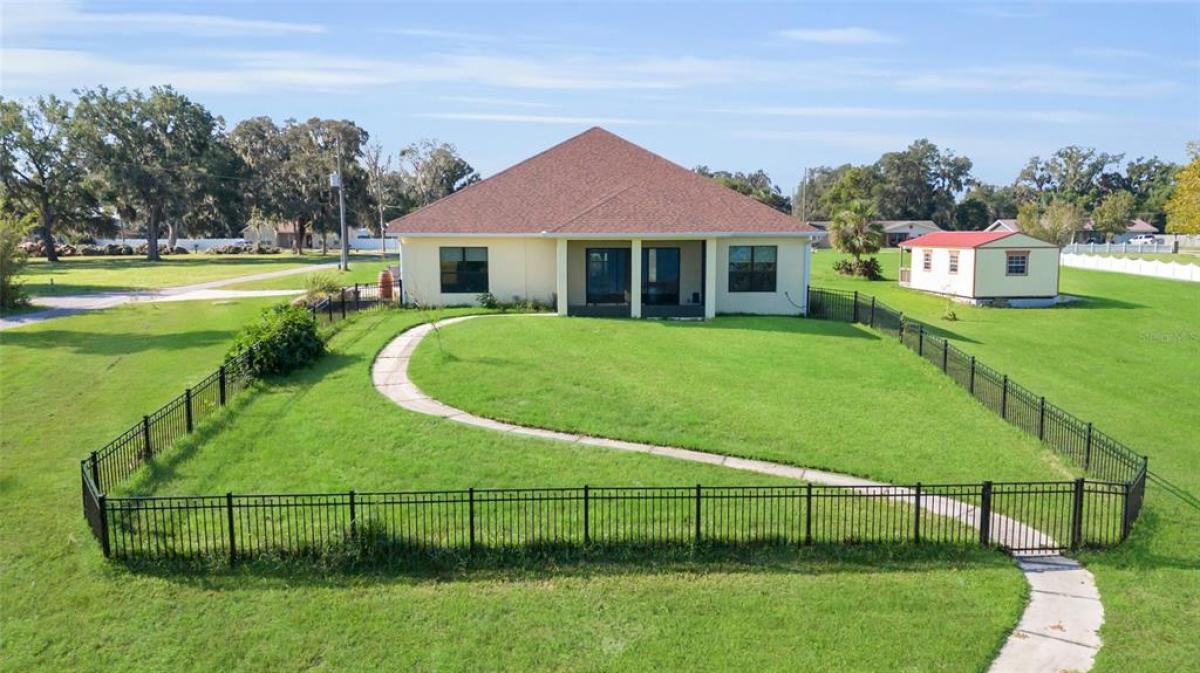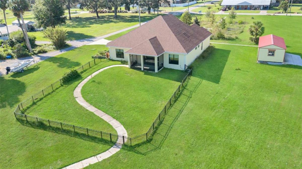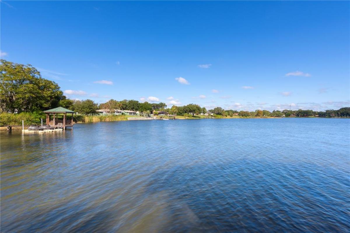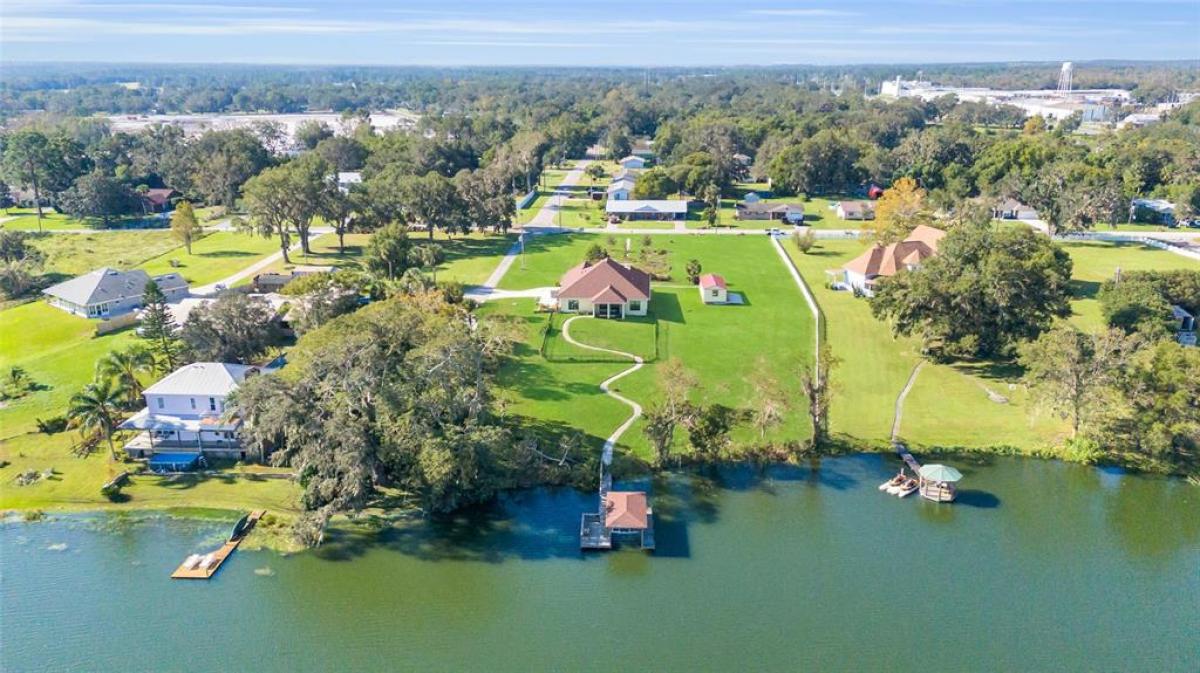 LAKEFRONT Mediterranean-style new home on over 1.6 acres on beautiful, spring-fed, skiable Lake Umatilla— a country home convenient to ORLANDO, The Villages, charming Mount Dora, Deland or Ocala. The chef’s DREAM KITCHEN features EXOTIC turquoise GRANITE, exclusive GE café appliances (refrigerator, gas range, dishwasher), a Samsung fume hood, SOLID WOOD CABINETS with full depth soft-closing drawers, a workstation sink, and a closet pantry. The kitchen overlooks the great room out to the screened lanai and PANORAMIC LAKE VIEWS through 16-foot sliders. Other features include 10-12 ft ceilings with CROWN MOLDING, five-inch baseboards, TWO MASTER ENSUITES facing the lake, each with roll-in showers and one with a soaking tub. There is a DOCK and COVERED BOAT HOUSE with lift for pontoon boat sunset cruises! The front yard features curbed planting areas full of flowering plants and trees including peach, plum, mulberry, kumquat, and blueberries surrounded by lush St. Augustine sod. A screened lanai overlooks the sodded back yard and cast aluminum fence to keep pets safe and dry. Then, a 14’ X 32’ shed with two roll-up doors and a front porch, painted to match the house provides additional storage. We love the private covered courtyard adjacent to the main master bedroom, and a 3 CAR GARAGE. Room for all your toys. NO HOA, No CDD! Stunning, so much under one roof! And with the new highways connecting Orlando, it truly will shorten your commute to PARADISE.