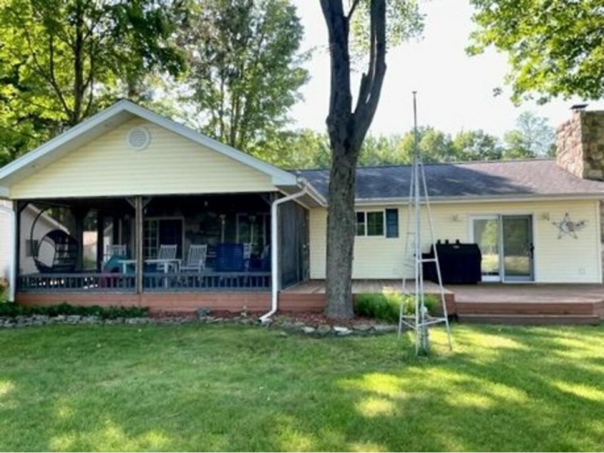 Charming 2 bedroom 2 bath Ranch on All Sports Secord Lake. Enjoy the view of sparkling water from the screened-in porch, the open deck, and the waterfront deck. Large treed lot with a seating area around the fire pit, wood seawall, and wood walkways around the water's edge. Country style home with an open floor plan. Plenty of oak cabinetry in the U-shaped kitchen with peninsula seating for casual meals. Family size dining area opens to the living room with a natural wood fireplace and a patio door out to the screened porch. Enjoy relaxing on this lovely porch with a vaulted knotty pine ceiling. Used for 3 seasons with outdoor heaters. The primary bedroom is spacious with room for extra beds. Main full bath in between the bedrooms with a secondary bath with shower shared with the laundry area. Extra space comes in handy with the additional family room off the kitchen with large windows, a spacious seating area, and a patio door out to the deck. The quaint brick fireplace keeps the room cozy on those chilly evenings. Exit out the attached garage for parking or storage with an additional garage with a guest house. Lake levels are currently lowered for dam construction/updates but there's plenty of water for swimming, fishing, and kayaking. Pontoon boats are out cruising the main lake and channels. See the FLTF website for all information regarding the dam construction, assessments, and the full lake-level timeline. www.four-lakes-taskforce-mi.com. Secord Lake is a wonderful recreational area surrounded by state land for hiking, ORV trails, hunting, and snowmobiling. Don't miss out on this one! Just 2.5 hours from the Detroit suburbs.