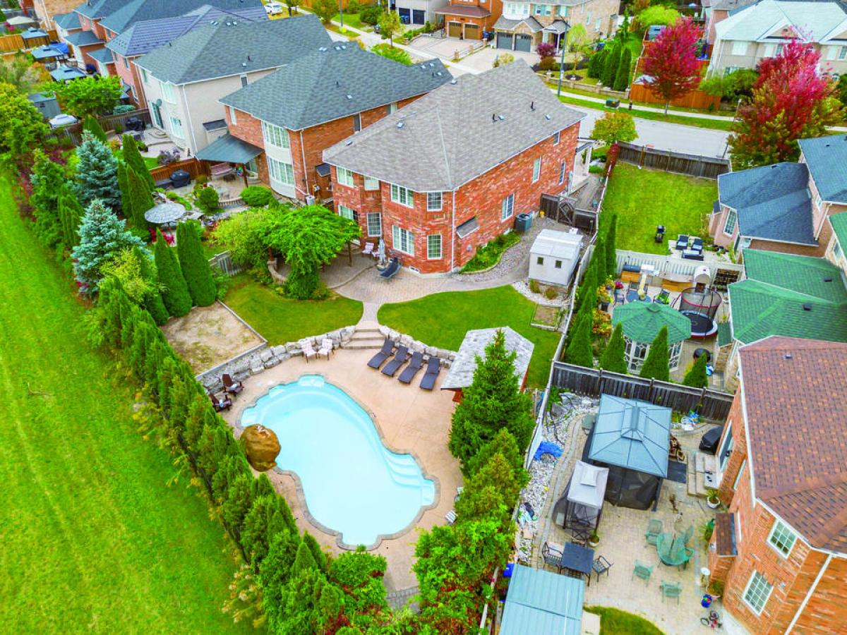 Immerse Yourself In The Highly Coveted Churchill Meadows Community With This Remarkable Family Home Offering Approx 3,500 SF Above Grade. Nestled On An Oversized Irregular Pie Shaped Lot & Completely Designed For The Entertainer In Mind w/ A Sunken Concrete Pool Deck, Fibreglass Pool w/ Seating, Cabana & A Stone Patio w/ Wooden Pergola That Is Encircled By Beautiful Cedars For Private Enjoyment! The Sophisticated Interior Will Take Your Breath Away w/ Finishes That Include Crown Moulding, LED Pot Lights, Coffered Ceilings, Upgraded Tall Doors, California Window Shutters, Hunter Douglas Silhouette Blinds & A Mix of Stone & Maple Hardwood Flrs! The Custom Kitchen Overlooking The Breakfast & Family Rm Is Elevated w/ a Lg Centre Island, Granite Counters, JennAir Appliances & Soft Closing Drawers. The Cozy Family Rm is Adorned w/ A Custom Gas Fireplace & Beautiful Mantle. Above Lies Your Primary Bdrm w/ 2 W/I Closets & A Beautiful 5pc Ensuite. 3 More Bdrms Down The Hall w/ Their Own Design. Details & Ensuites/Semi-Ensuites. Partially Finished Bsmt w/ 9ft Ceilings & Space To Create A Home Spa, Theatre, Bar, Gym - The Possibilities Are Endless. Great Location Nearby The Hospital, Malls, Major Hwys, Grocery Stores, Parks + More!