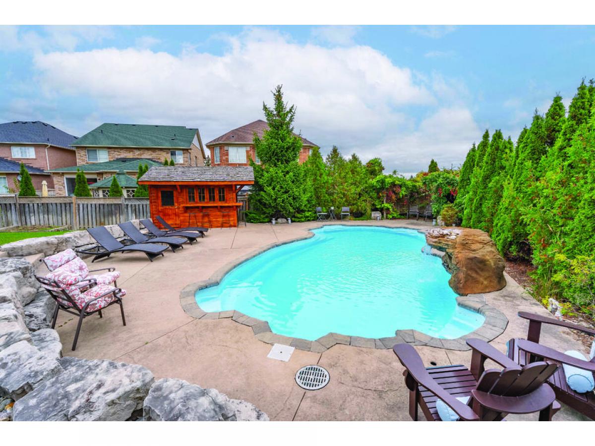Immerse Yourself In The Highly Coveted Churchill Meadows Community With This Remarkable Family Home Offering Approx 3,500 SF Above Grade. Nestled On An Oversized Irregular Pie Shaped Lot & Completely Designed For The Entertainer In Mind w/ A Sunken Concrete Pool Deck, Fibreglass Pool w/ Seating, Cabana & A Stone Patio w/ Wooden Pergola That Is Encircled By Beautiful Cedars For Private Enjoyment! The Sophisticated Interior Will Take Your Breath Away w/ Finishes That Include Crown Moulding, LED Pot Lights, Coffered Ceilings, Upgraded Tall Doors, California Window Shutters, Hunter Douglas Silhouette Blinds & A Mix of Stone & Maple Hardwood Flrs! The Custom Kitchen Overlooking The Breakfast & Family Rm Is Elevated w/ a Lg Centre Island, Granite Counters, JennAir Appliances & Soft Closing Drawers. The Cozy Family Rm is Adorned w/ A Custom Gas Fireplace & Beautiful Mantle. Above Lies Your Primary Bdrm w/ 2 W/I Closets & A Beautiful 5pc Ensuite. 3 More Bdrms Down The Hall w/ Their Own Design. Details & Ensuites/Semi-Ensuites. Partially Finished Bsmt w/ 9ft Ceilings & Space To Create A Home Spa, Theatre, Bar, Gym - The Possibilities Are Endless. Great Location Nearby The Hospital, Malls, Major Hwys, Grocery Stores, Parks + More!
