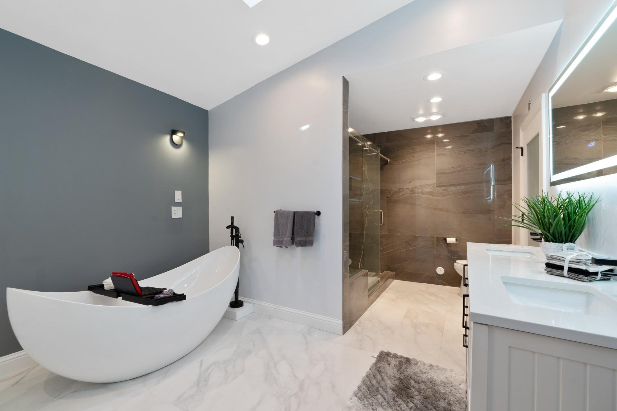 Breathtaking, Views, Views Views from every corner of the house. Welcome home to this completely remodeled in 2022 finished in 2023 contemporary farm house style with no detail overlooked. Redesigned with an open outstanding floor plan with high ceilings, natural light flooding every part of the house for today’s indoor outdoor living. On a quiet-cul-de-sac in exclusive Braemar south of the boulevard area with spectacular curb appeal. Situated on an expansive 44,000+ square foot lot with your own steps to the golf course. Low maintenance with a turf and front yard surrounded by lush landscaping with a brand-new drip system. Incredible home with privacy and tranquility with sliding glass doors, skylights, opening to a resort like backyard with a pebble bottom solar heated pool, spa, with entertainment area with a new smoker and fire pit. All quartz countertops and stainless-steel appliances and draw microwave. The second floor has its own kitchen and can be used as an adu since it has its own entrance from the outside but can also be accessed from the main home. High Ceilings with balconies upstairs enjoy in the living room and bedroom. Additionally, 3 zone new central heating air system conditioning. Three car garage with electric charging station and air conditioning with extra cabinets and huge closet for storage,