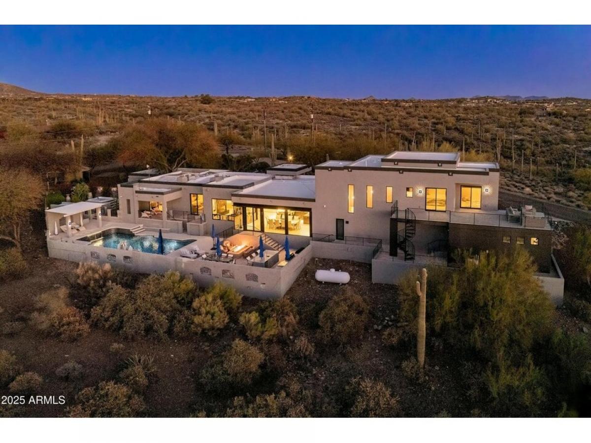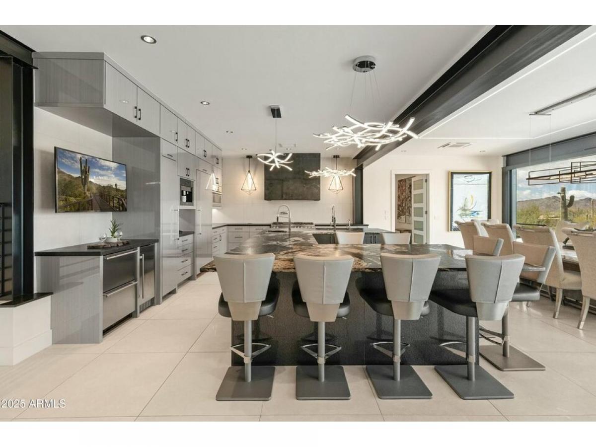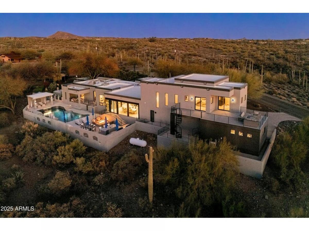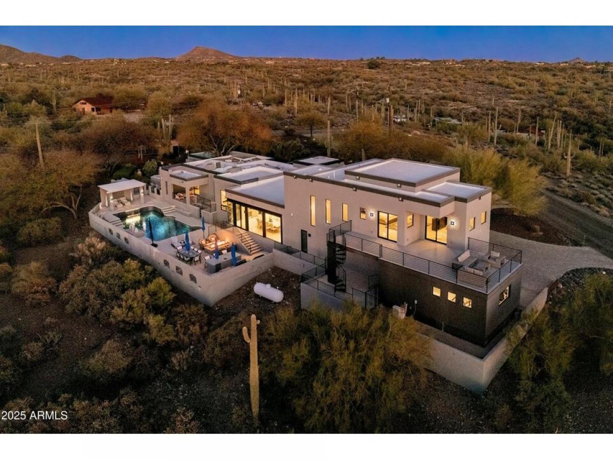 Stunning contemporary elegance in the heart of the beautiful Arizona desert surrounded by PHENOMENAL mountain views in every direction amp; positioned on a 2+ acre lot amp; desired N/S exposure. This home was entirely rebuilt in 2020 having the potential to expand w/ a guest house and/or larger footprint for equestrian fun. The kitchen is a chef#039;s dream, w/ enormous (expansive) leathered granite covered island, featuring 2 prep/cleaning sinks, dual dishwashers, 6-burner Miele gas oven w/ steam oven, warming drawer, pot filler, built-in Dacor fridge and freezer wrapped in F1 custom cabinetry, amp; Hubbardton Forge lighting fixtures. The private pool amp; heated spa features a dedicated pool bathroom, ramada, amp; expansive area for outdoor entertainment. Car enthusiasts will salivate at the temperature controlled 4+ car garage w/ generous work area. Low-maintenance landscaping, tinted Fleetwood windows amp; doors, LED lighting t/o, electronic shades, 4 Rinnai tankless hot water heaters, water softener amp; R/O filtration systems deliver lower water amp; energy costs. Upper amp; lower Master suites w/ the upper suite featuring a stately slate tile wall, marble flooring amp; view deck w/ iron spiral staircase. This estate is located in an extremely quiet and private Cave Creek location, but minutes from shopping, entertainment, restaurants, art galleries, and hiking.