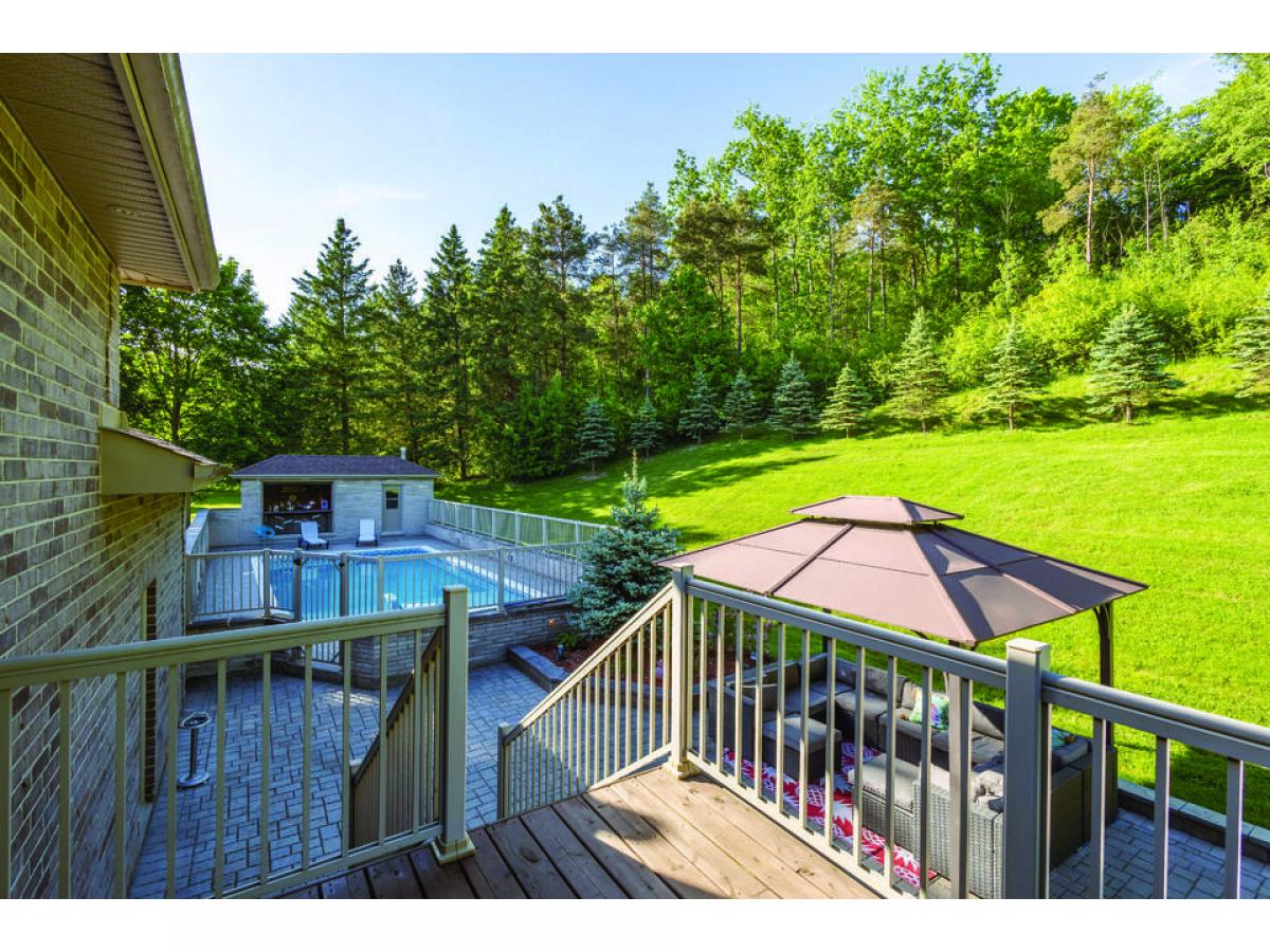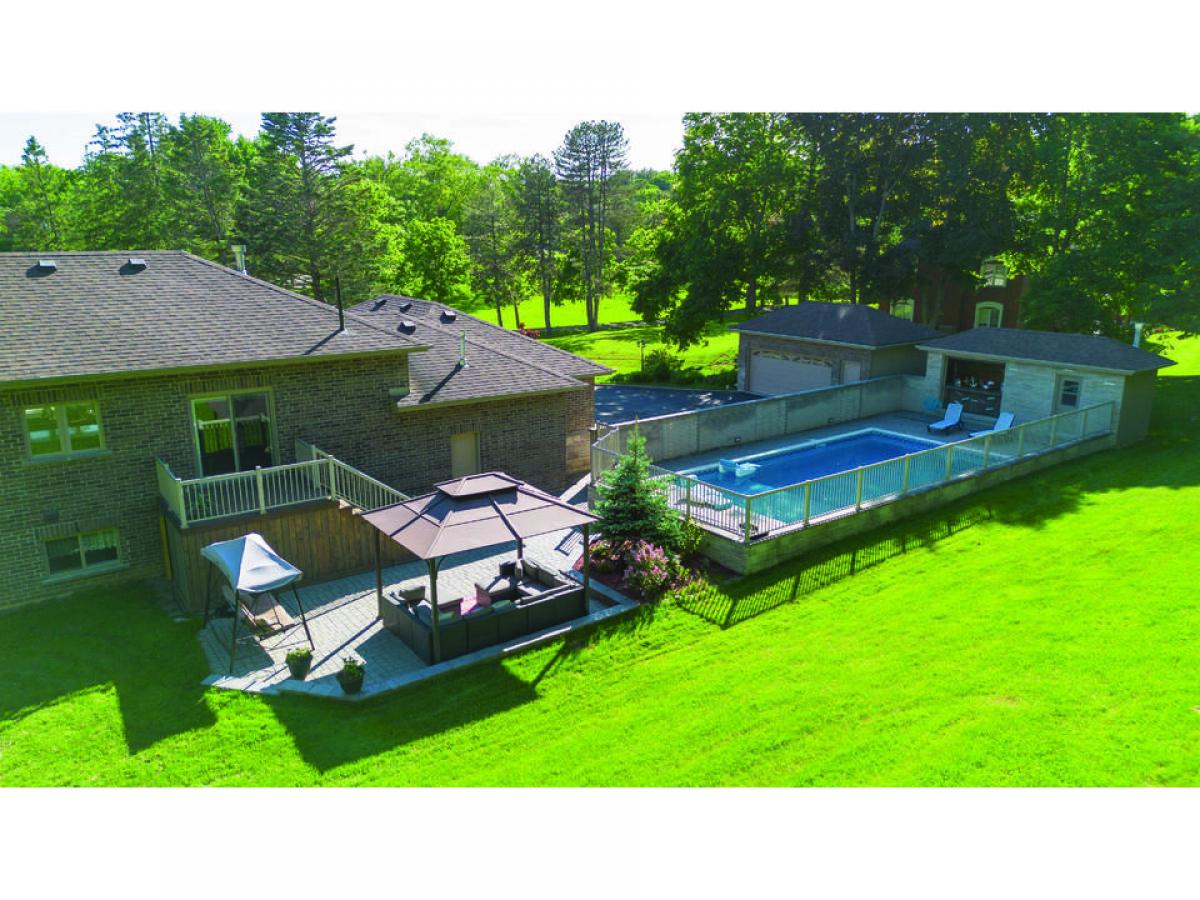 Indulge in the ultimate luxury living experience in this stunning estate, perfectly situated on 1.77 acres of lush landscape, nestled among high-end homes and backing onto picturesque greenery. Enjoy an opulent living space with this magnificent residence which boasts an array of premium upgrades. The meticulously manicured and illuminated exterior is truly an entertainers delight featuring a private backyard oasis with an inground pool & bar. Panoramic views of the surrounding landscape offer a serene and tranquil atmosphere, encapsulating the beauty of nature at its finest. Inside, the open-concept interior flows seamlessly, creating a peaceful and serene living space. The sun-drenched chef's kitchen is equipped with S/S appliances, a large center island, and coffered ceilings. The primary bedroom features an expansive walk-in closet, a lavish en-suite bath with a rain shower & jacuzzi tub. The main level boasts 3 spacious bedrooms & 3 washrooms, while the large finished basement features an spacious rec area with a fireplace, wet bar & 2 additional bedrooms. This rare find boasts top-quality features alongside unparalleled privacy while remaining close to the GTA! Security Gate, Epoxy Garage Flooring, Detached Workshop/Garage, Inground Pool W/Pool Bar, 2 Cozy Fireplaces, Pot Lights Throughout, Expansive Lower Level W/Wet Bar. Close to Major Cities, Hwys, Amenities, Parks, & much more!