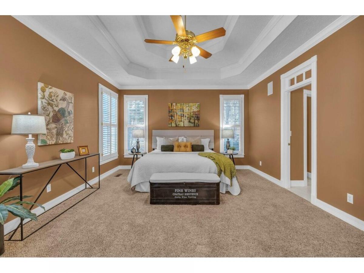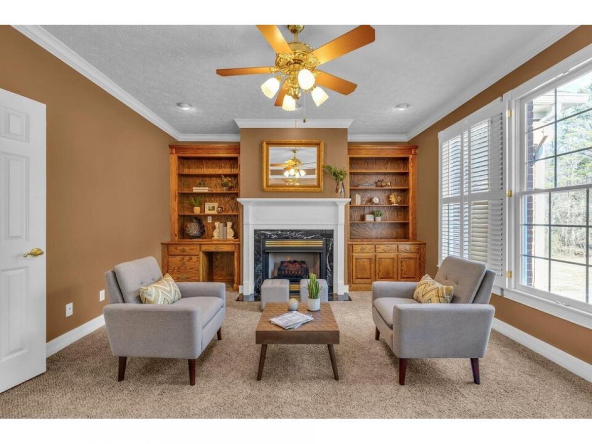 Discover luxury living in this magnificent 4,200 sq ft all-brick estate set on 11 partially wooded acres. The property features a gated entrance, flagpole, circular drive, and 4-car, a double garage and single garage side load on the main level and 1 car garage in the basement. Inside, the main level boasts hardwood floors throughout, two primary suites with walk-in closets and full baths (one with a jacuzzi tub), an updated kitchen with Corian countertops, an abundance of solid wood cabinets and stainless appliances, separate dining room, office, half bath off the kitchen, and a laundry room. An elegant curved staircase leads to the upper level, which offers two split bedrooms with en-suite baths and a catwalk overlooking the lower level. The basement includes over 1,400 sq ft of unfinished space and 778+ sq ft of finished area, featuring a kitchenette, den with gas fireplace, full bath, and pool table. Outdoor amenities include an in-ground pool with newer liner, screened-in porch, and grilling deck off the main level. Additional features: standby generator, underground utilities, intercom system, central vacuum, security system, electric fireplace in main level primary suite, and plantation shutters throughout. This private oasis combines modern comforts with spacious living, offering 4 bedrooms and 5.5 baths in total. The property also includes an unfinished attic space for potential expansion. With its thoughtful design and luxurious features, this estate provides an unparalleled living experience for the discerning homeowner.