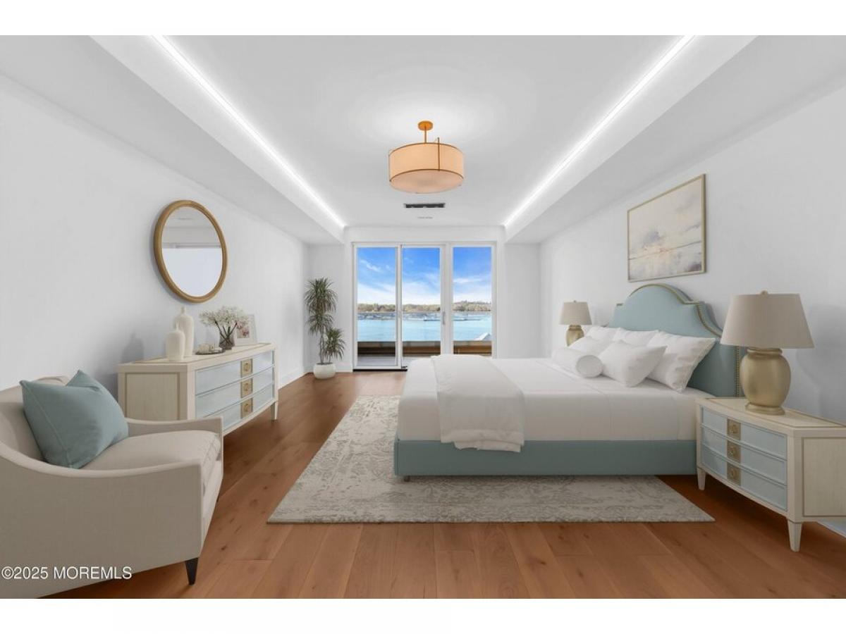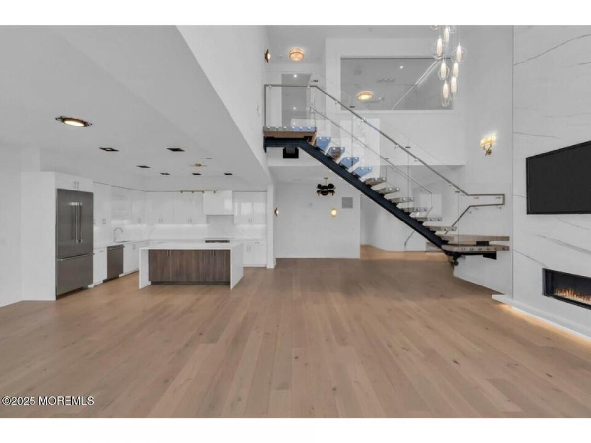 Spectacular duplex penthouse, overlooking the Navesink River features two spacious bedrooms plus a versatile den or third. An entertainer#039;s dream w/a fabulous year-round atrium amp; a terrace that runs the full length of the home. The living room has soaring 20-foot ceilings a porcelain feature wall w/a gas fireplace, amp; high-def TV. The chef#039;s kitchen boasts a quartz waterfall island, custom cabinetry, and premium stainless appliances, along w/ dedicated dining room w/views of the water. Floating glass stairs lead to the primary suite, w/ its own river-view terrace. Dual walk-in closets one, fully customized awaits. The primary bath; a true spa, w/ radiant-heated flooring, amp; a dramatic wet room features a soaking tub amp; oversized shower; all w/ sweeping views of the water. This one- of-a-kind residence is conveniently located in the heart of Red Bank, New Jersey a cultural urban waterfront town.