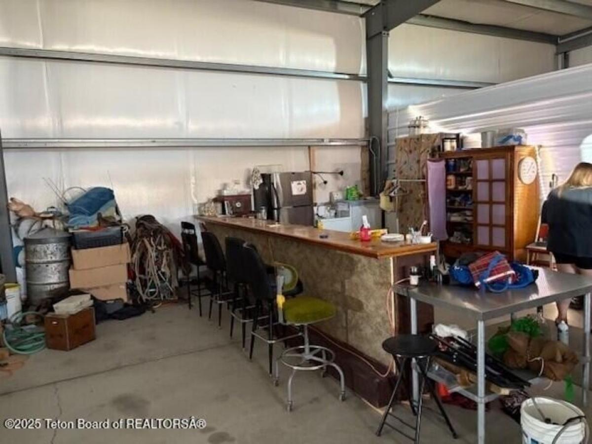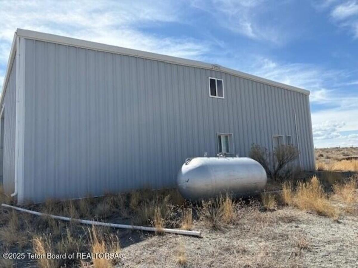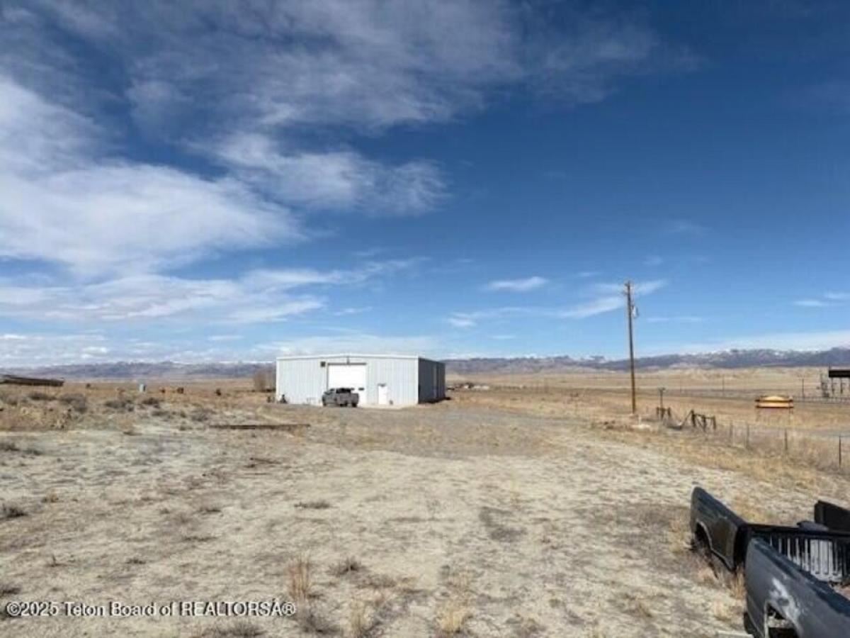 Metal building with a one bedroom apartment inside sits on 6 plus acres in two subdivided lots with Hwy 20 Frontage. plenty of room inside for a shop operation. Has well, septic and power. Perfect location for commercial operation easy access to Hwy 20 north side of Shoshoni, out side city limits. Minutes to Boysen Lake, great shop for winter boat storage or repair.