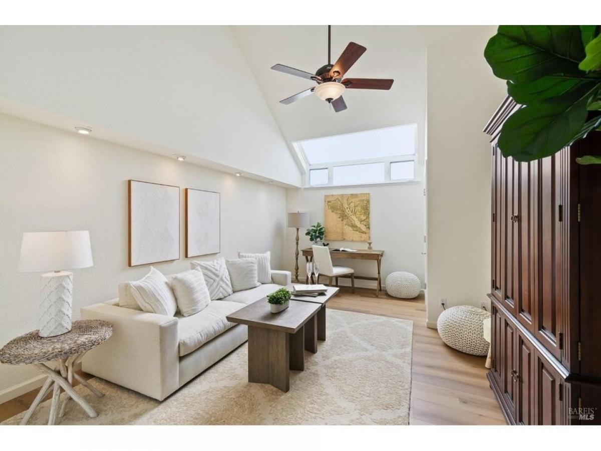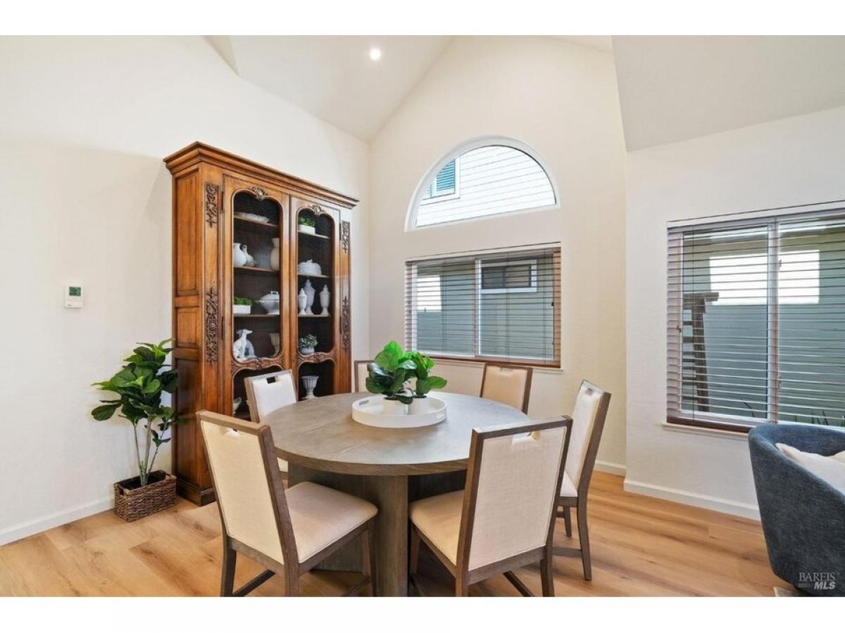 Spacious amp; updated 3 BDR home with 1st floor main ensuite, bonus room amp; low maintenance backyard. Live on one level with additional BDRs for guests upstairs. Beautiful architectural lines featuring vaulted ceilings, transom windows amp; lots of natural light. Bonus room currently used as a media room features skywall window with office area amp; laundry room. Spacious main ensuite with walk-in closet offers spa-like bath with frameless glass enclosure shower, built-in seating amp; elevated dual sink vanities. Great room features family room with gas appliance fireplace, formal dining area amp; French doors that open to delightful outdoor entertaining area with expansive deck amp; large pergola perfect for Napa Valley outdoor living. Beautiful updated kitchen with upgraded cabinetry amp; hardware, quartz countertops with glass tile backsplash, stainless counter-depth refrigerator, microwave amp; Bosch dishwasher opens to informal dining area. Upgrades amp; amenities include gorgeous new French oak LVF floors, plantation shutters amp; wood blinds, dual pane windows, skylights, upgraded lighting, AC, newer Hardie siding amp; 6 yrs new roof!