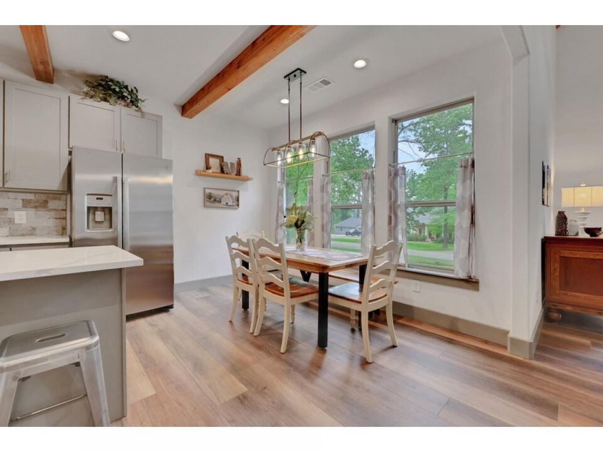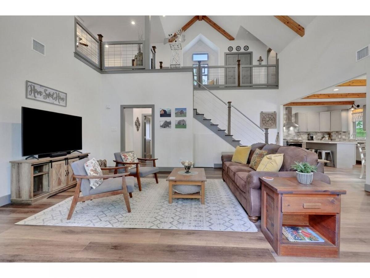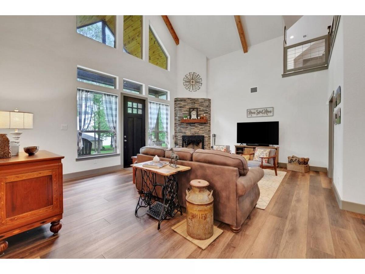 Experience the beauty of lakeside living in this water view home! Relax on the expansive front porch, which wraps around one side, offering beautiful lake views and the soothing sounds of the lake. Step inside to a bright and airy living space featuring two-story cathedral ceilings with cedar wood beams. The island kitchen is perfect for entertaining, boasting quartz countertops and ample cabinet space. The home offers lake views from almost every room! Built with quality and efficiency in mind, this home sits on an engineered slab and includes foam insulation, a tankless hot water heater, LVP waterproof flooring, zoned AC, a saltwater filtration system, and energy-efficient low E double-pane windows. The spacious primary suite is located on the first floor. Upstairs there is a spacious second family room, guest bedroom, full bath and sun room which could be used as a third bedroom. The detached three-car garage provides plenty of storage for vehicles, lake toys, and more.