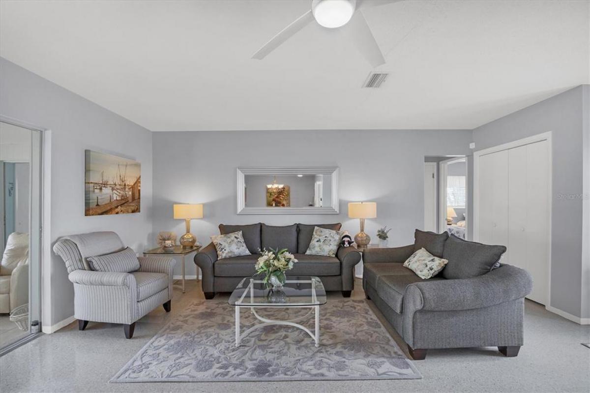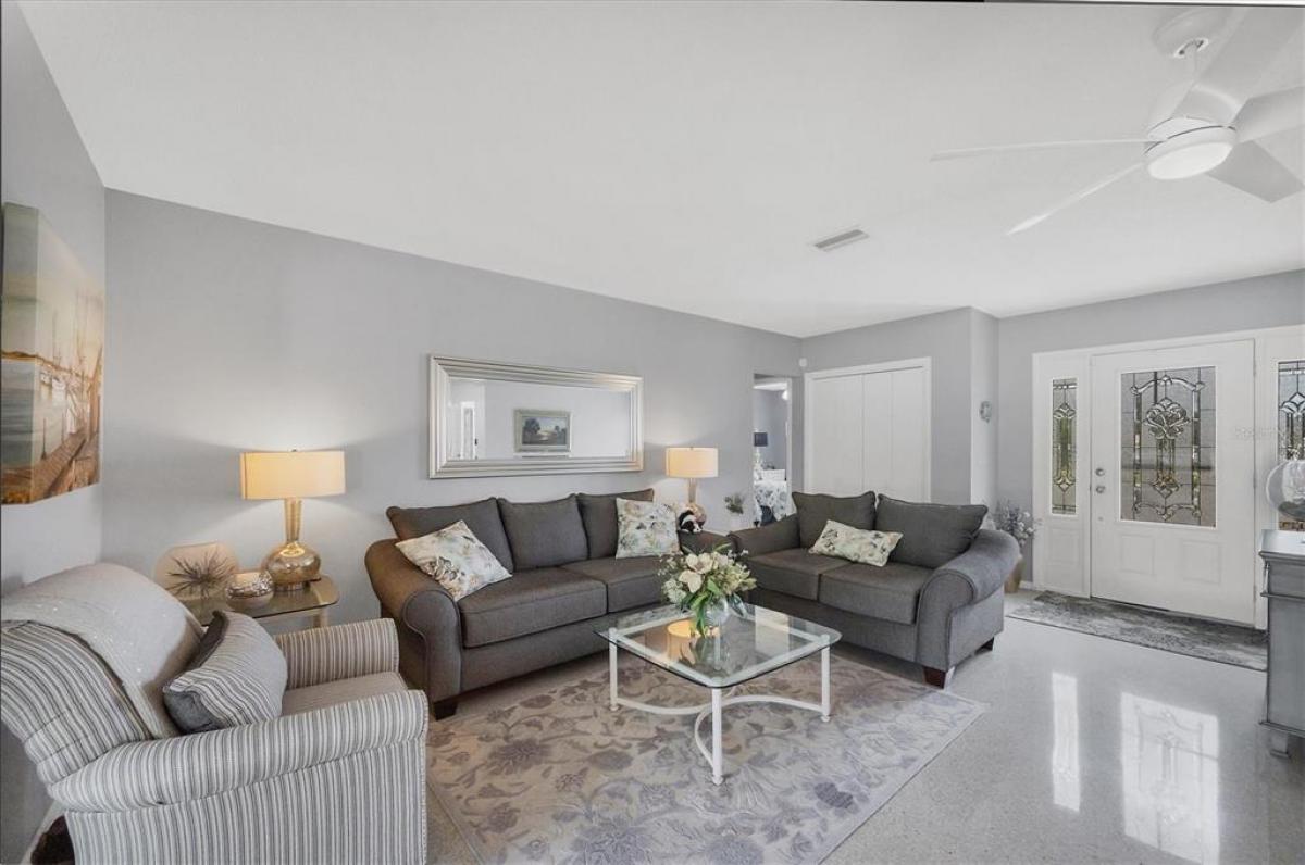 Price adjustment!! Lovely furnished turnkey located 1.8 miles from Englewood beach. The home features two spacious bedrooms, two bathrooms, one car garage and large enclosed Florida Room. This property is a perfect second home, rental investment property; or make it your permanent residence! If you are looking for Florida living close to the BEACHES, this home is for you! UPDATED kitchen and bathrooms as well as beautifully maintained Terrazzo flooring in the majority of the home, complimented with perfectly blending ceramic tile in the Florida room which gives this home a cohesive flow and provides cozy comfort. The dining room boasts a built-in cabinet and shelf for easy entertaining and storage. NO HOA! NO CDD! Recent updates include a new roof (2023), newer HVAC (2019) and electric panel (2021). IMPACT WINDOWS for peace of mind and energy savings. Bring your clothes and yourself (beach chairs are already included!) and enjoy the beautiful Florida weather with plenty of outdoor activities. Turnkey furnished - you can move right! Property includes deeded boat lot on Godfrey Creek with access to Lemon Bay and the Gulf.