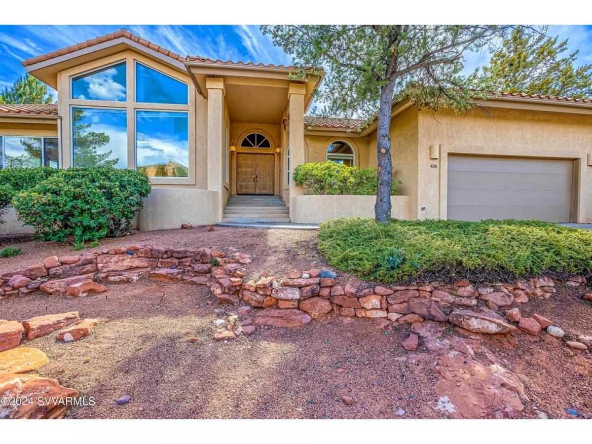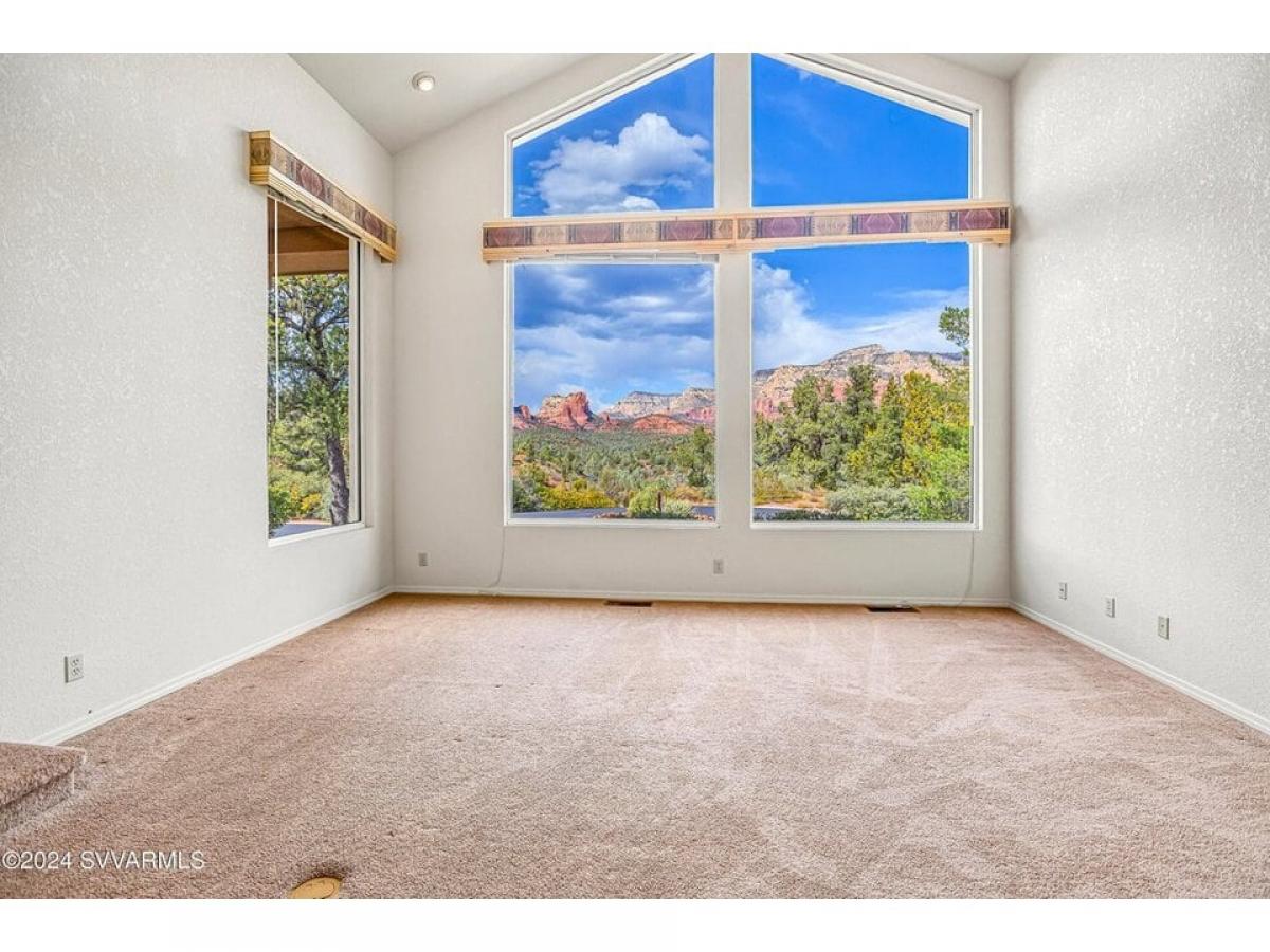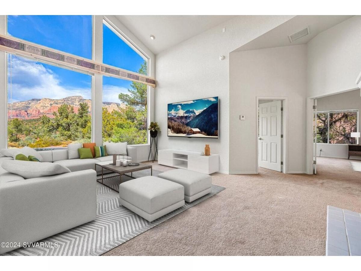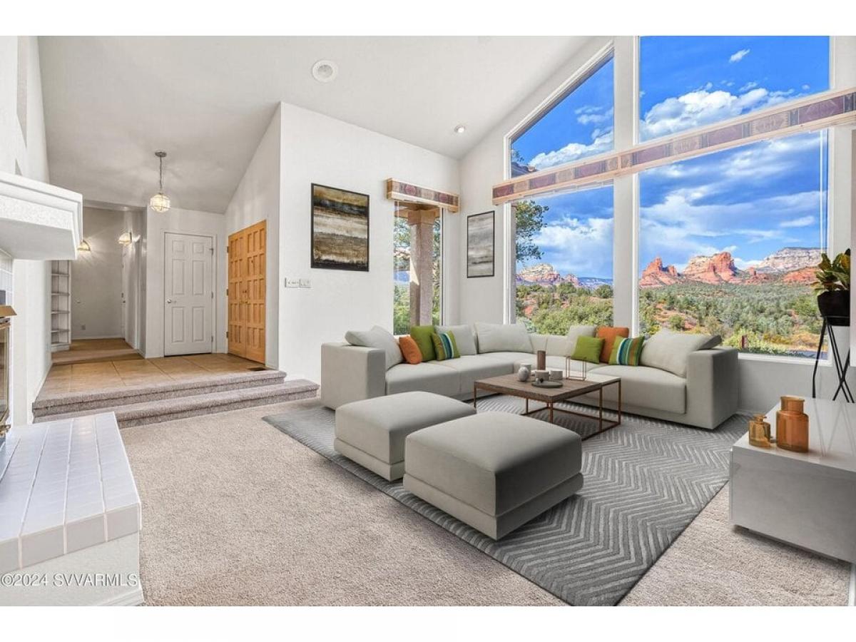 HUGE VIEWS! HUGE POTENTIAL! Rolling Hills Tomlinson Home Offering Panoramic Red Rock Views. Centrally-Located, elevated lifestyle in a quiet community just minutes away from all amenities Sedona offers; world class hiking, biking, shopping and dining.Stylish double doors (just re-sealed!) greet you and invite you into the Grand Foyer. Spacious, open and bright split floor plan boasts 20-ft ceiling apex in Great Room and huge custom glass windows to capture the endless views. In the cooler months, enjoy the warmth and ambience of the double-sided fireplace between the living room and dining room.Spacious Kitchen-Dining combo features 5-burner gas cooktop, a huge walk-in pantry, space for dining table and breakfast nook overlooking the backyard. Huge Primary Bedroom boasts double