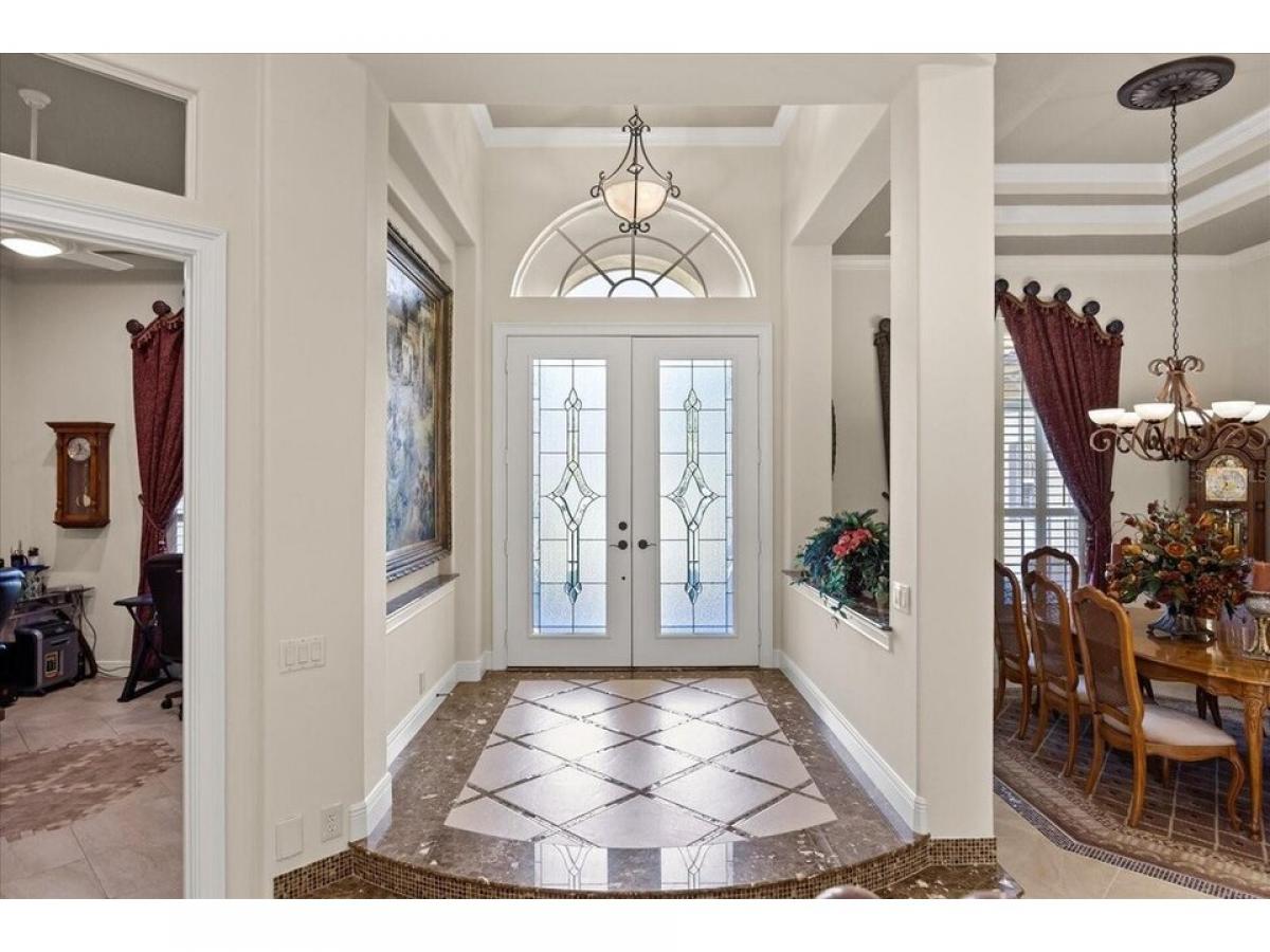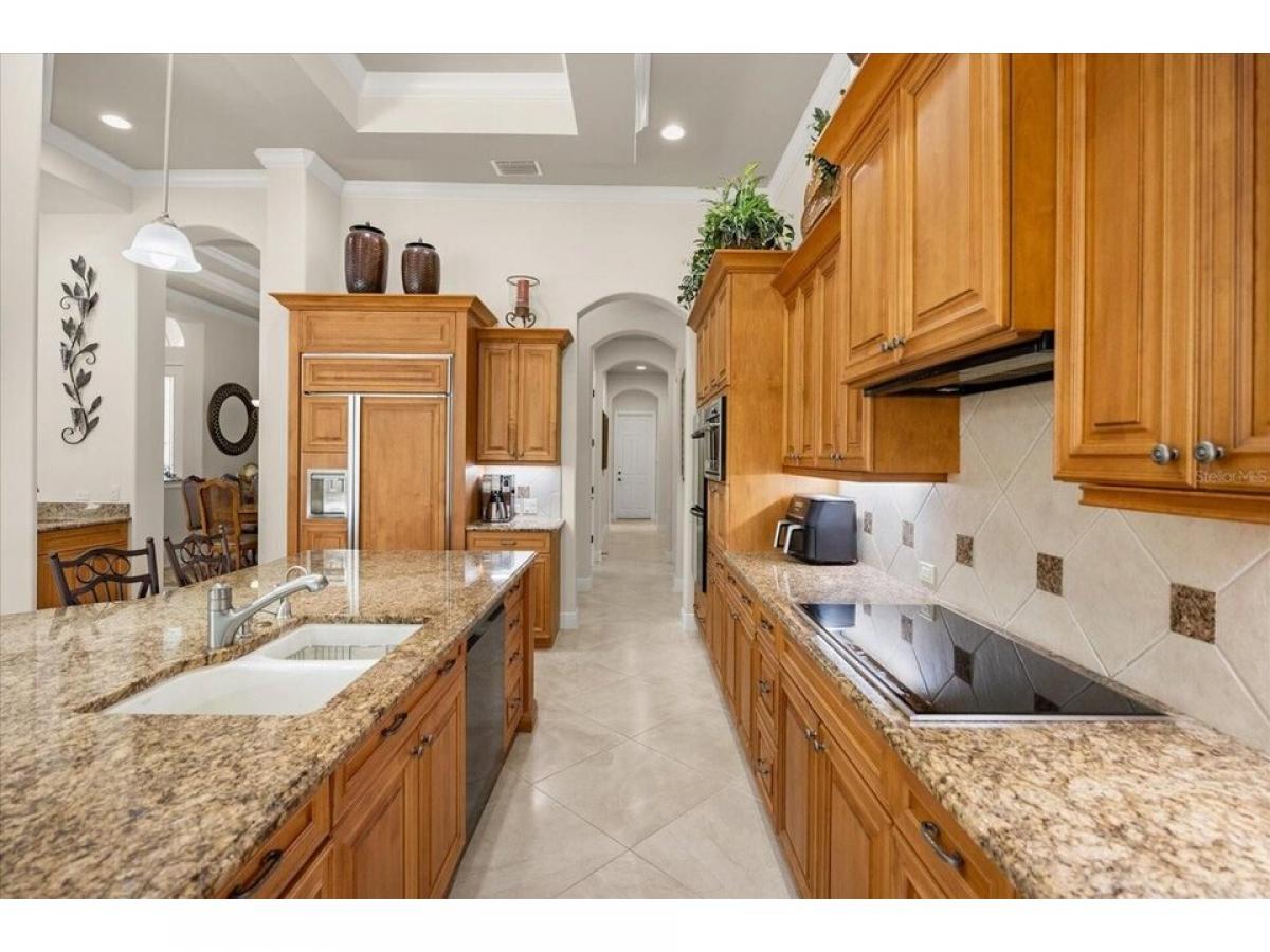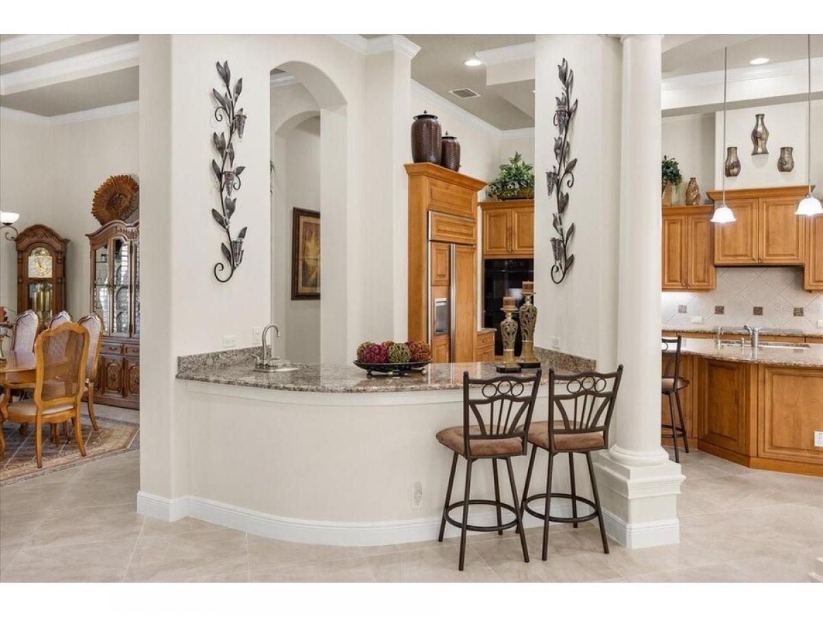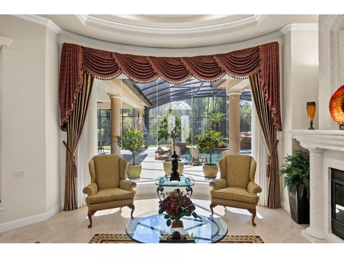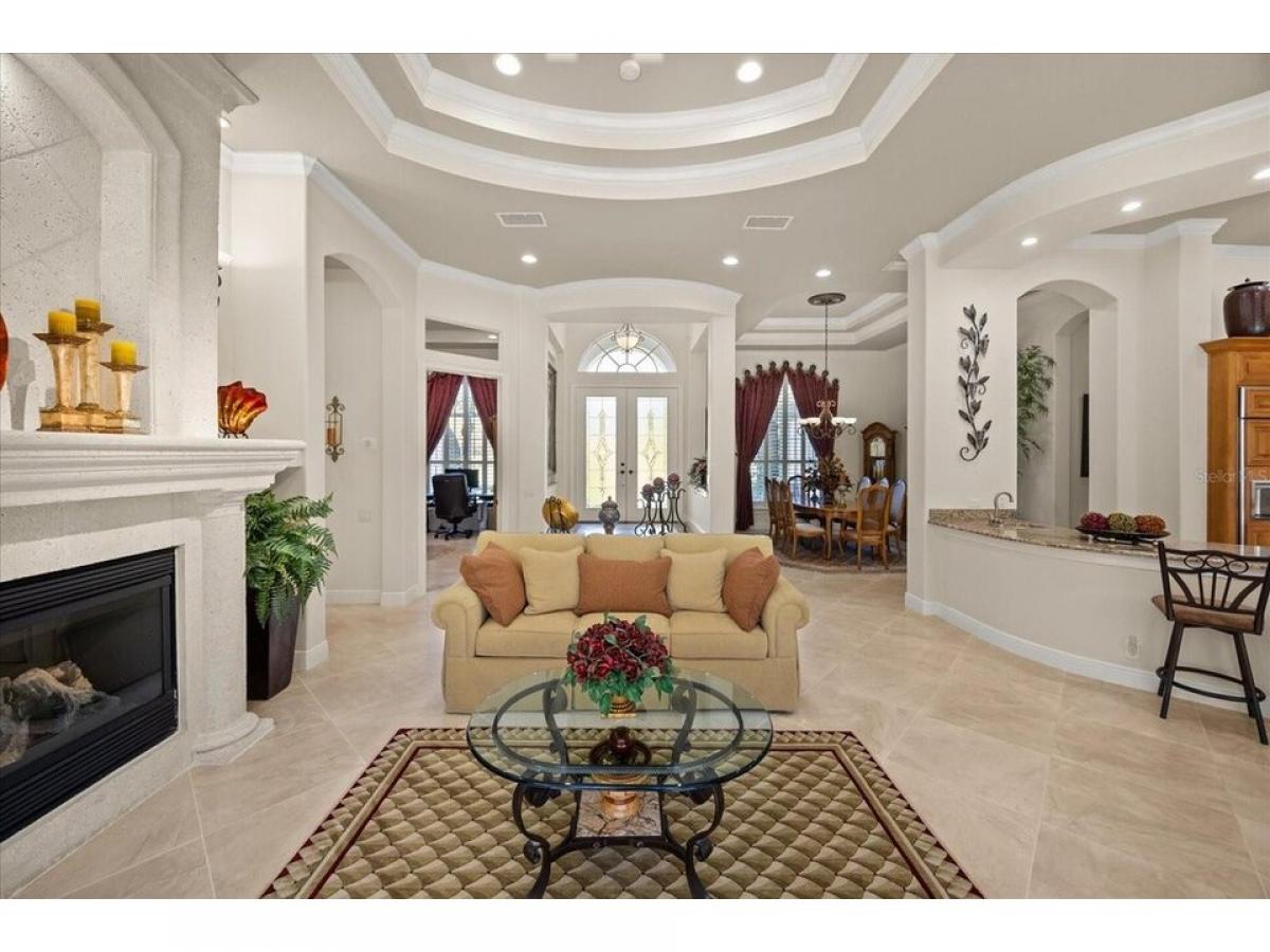 Under contract-accepting backup offers. Welcome to this exquisite home located in the highly sought-after guard-gated community of Magnolia Plantation. Thoughtfully designed with meticulous attention to detail, this 4-bedroom, 5-bathroom residence with a den offers both luxury and comfort. As you arrive, the circular driveway sets the tone for the elegance that awaits inside. Step through the entryway onto beautifully detailed marble tile, where breathtaking picture windows frame serene views of the pool and lush conservation area. The formal living room, complete with a stately fireplace, provides a warm welcome, while the adjacent formal dining room is perfect for hosting gatherings. The chefrsquo;s kitchen is a culinary dream, featuring high-end appliances, double ovens, an expansive island, custom-paneled refrigerator, wet bar, and wine fridge, ensuring both functionality and style. Elegant tray ceilings accentuate the grandeur of the main living areas, while sliding doors seamlessly blend indoor and outdoor living, opening to the expansive pool and patio area. Each generously sized bedroom boasts its own private en-suite bathroom, offering privacy and comfort for family and guests alike. The primary suite is a true retreat, occupying its own private wing. This luxurious space includes a spacious bedroom, an oversized custom closet, and a spa-like bathroom with a stunning center island. Outdoors, the fully covered patio and outdoor kitchen create an entertainerrsquo;s paradise. The resort-style pool, enclosed within a screened lanai, features a grotto with a bench beneath a tranquil waterfall, as well as a sunshelf for ultimate relaxation. All of this overlooks the pristine conservation area, offering unparalleled peace and privacy. Completing this exceptional home is a 4-car extended garage, offering ample storage space both inside the garage and in its attic, ensuring room for vehicles, tools, and more. Additionally, the home is pre-plumbed for propane in the kitchen, laundry room, and fireplace, ready for future installation. This is a rare opportunity to own a true entertainerrsquo;s dream homemdash;schedule your private tour today!