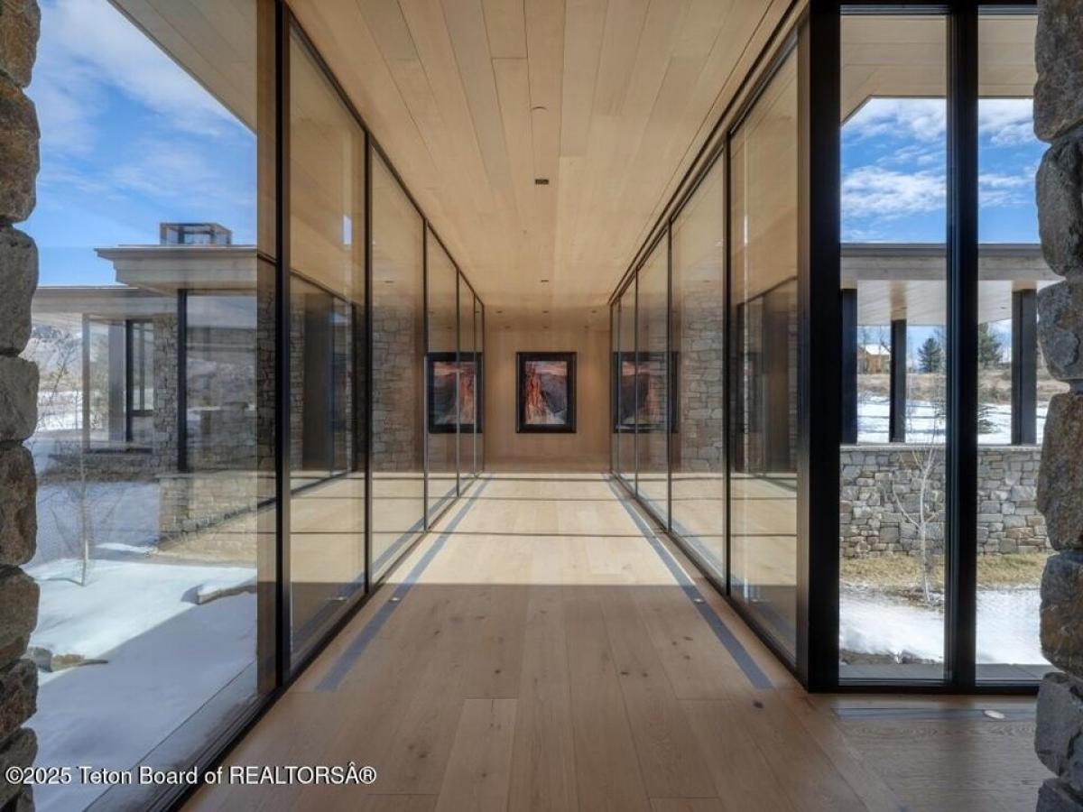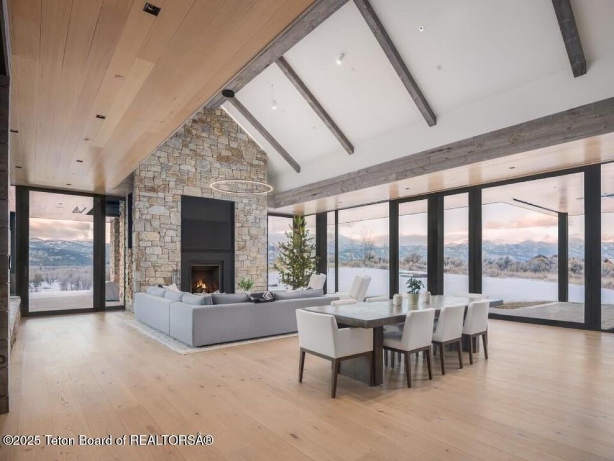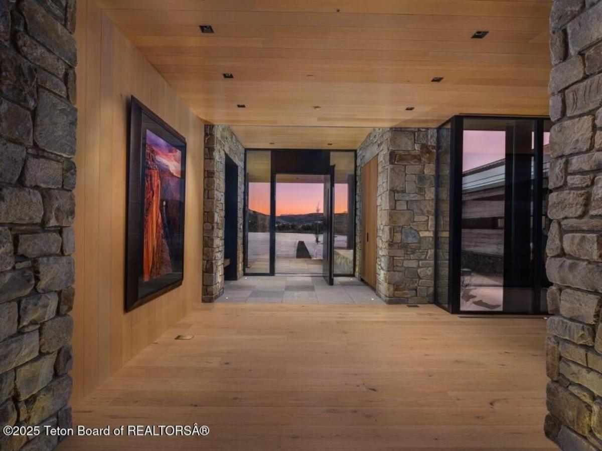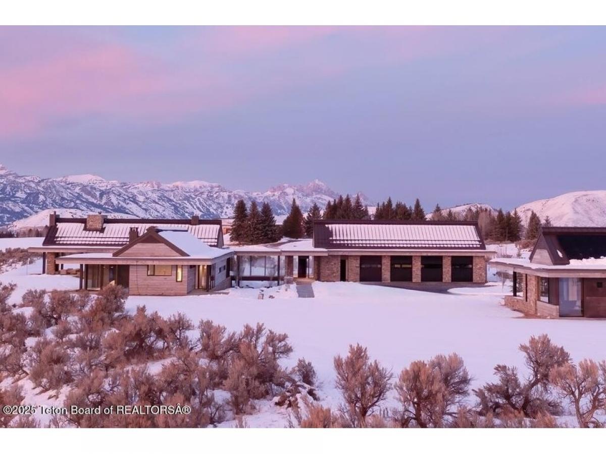Reid Smith Architects designed this newly-completed contemporary wood and rock home on 7.68 acres in the Matheson Hill subdivision just south of 3 Creek Ranch.On a plateau with 200 degree views to the west, the property enjoys unobstructed mountain views from Munger to a peek-a-boo view of the Grand Teton. The home is comprised of 4 bedrooms with en-suite bathrooms, 2 offices, a full spa with steam and dry saunas, stainless steel competition swimming pool and hot tub, and workout facility. Every detail was considered: 11 foot triple-paned Zola windows and lift-and-slide glass doors, 17 foot vaulted ceilings, 4 fireplaces, 1,900 sqft 4-bay garage, integral shades both inside and out, marble bathrooms, bunk room, media room, and a 1 suite plus bunk 1000 sqft guest house with carport. A quiet water feature flows underneath the bridge to the main home. The systems are of the highest quality standard, featuring geothermal radiant floor heating with forced air backup (air conditioning, moisture control), Lochinvar boiler amp; distribution system, Nortec Resdelux direct injection HVACs, Zehnder HRV system entirely separate from HVAC system, 3 separate wells - domestic water, geothermal discharge, landscape irrigation, and individual HRV for garage not tied to rest of home. Solar and battery storage include 4 Tesla Powerwalls as electric backup for home and 25kw solar panel system on both main and guest house tied to the Tesla system. Enjoy the highest quality Home Automation System with Crestron controls for AV, shades, locks, garage doors, security, temperature control and water feature, in addition to a dedicated media room and basement rec room each featuring 98quot; TV and speaker system.