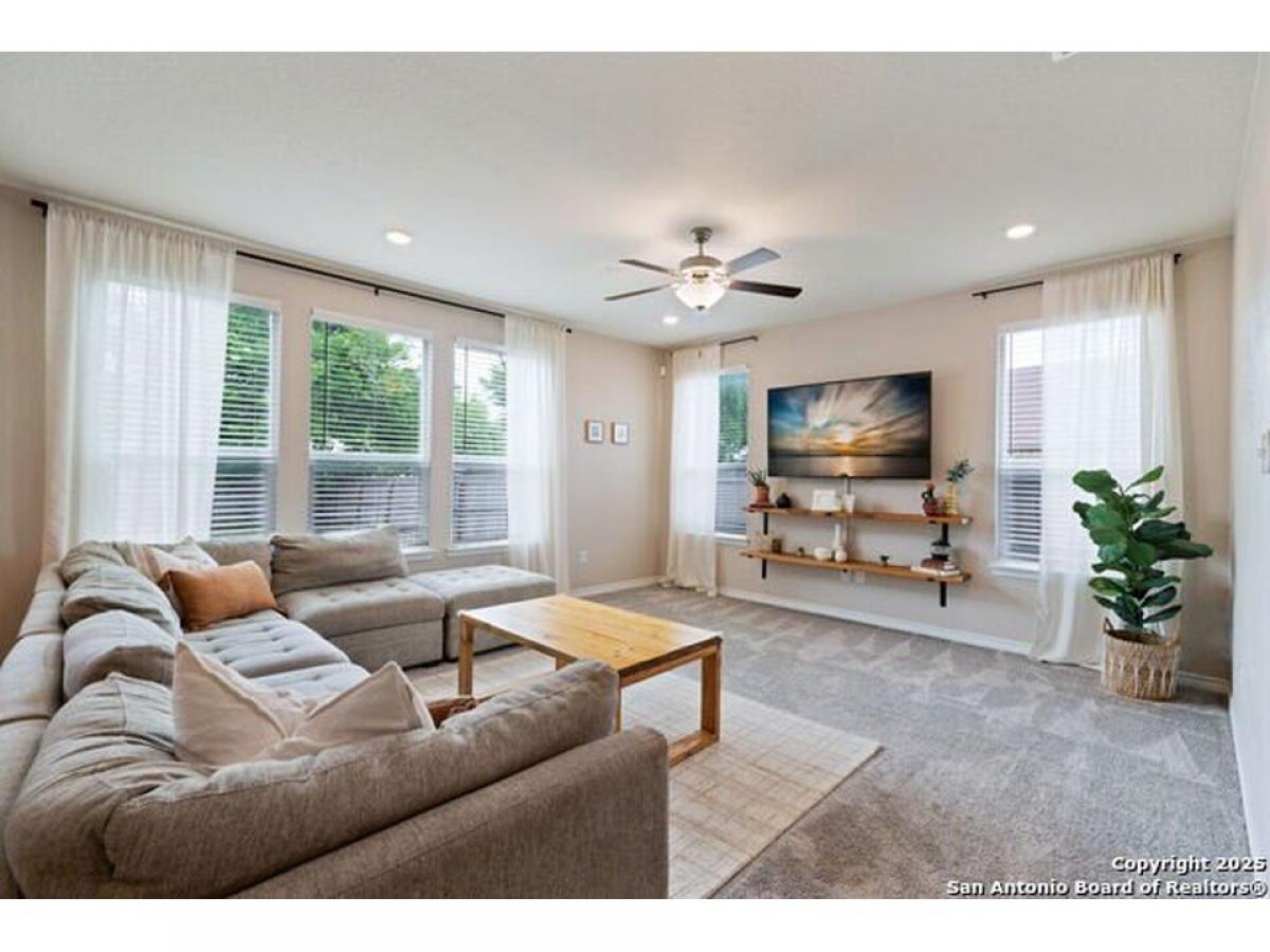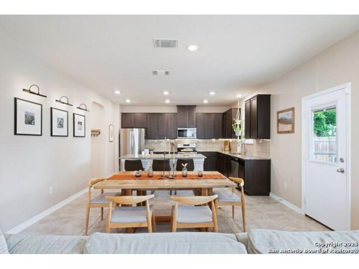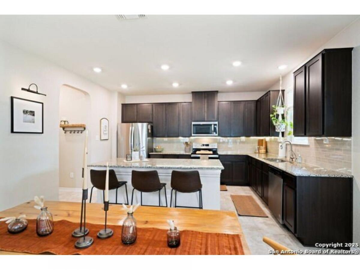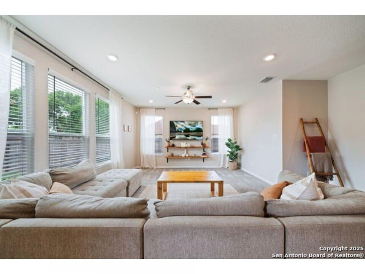 Situated in the heart of Universal City, this 2019-built home offers the perfect blend of modern style and functionality. Sitting on a corner lot, this home was designed with contemporary touches and the open-concept layout is ideal for entertaining. Featuring a spacious kitchen with a large island, generous cabinet space, granite countertops with a tile backsplash, SS appliances and recessed lighting throughout. All bedrooms are generously sized, with the primary suite offering a peaceful retreat complete with his and her closets, a stylish ensuite bath featuring dual sinks, a garden tub and shower. The large loft is a perfect second living area. Keep organized with the large storage closet under the stairs. Step outside to a covered patio that#039;s perfect for grilling or relaxing. Conveniently located just minutes from Live Oak#039;s Main City Park, Methodist Hospital, highly rated schools, and H-E-B, this home is also only 10 minutes from Randolph AFB, 8 minutes to the Forum Plaza and offers quick access to Loop 1604, I-35, and I-10 for an easy commute to Downtown San Antonio.