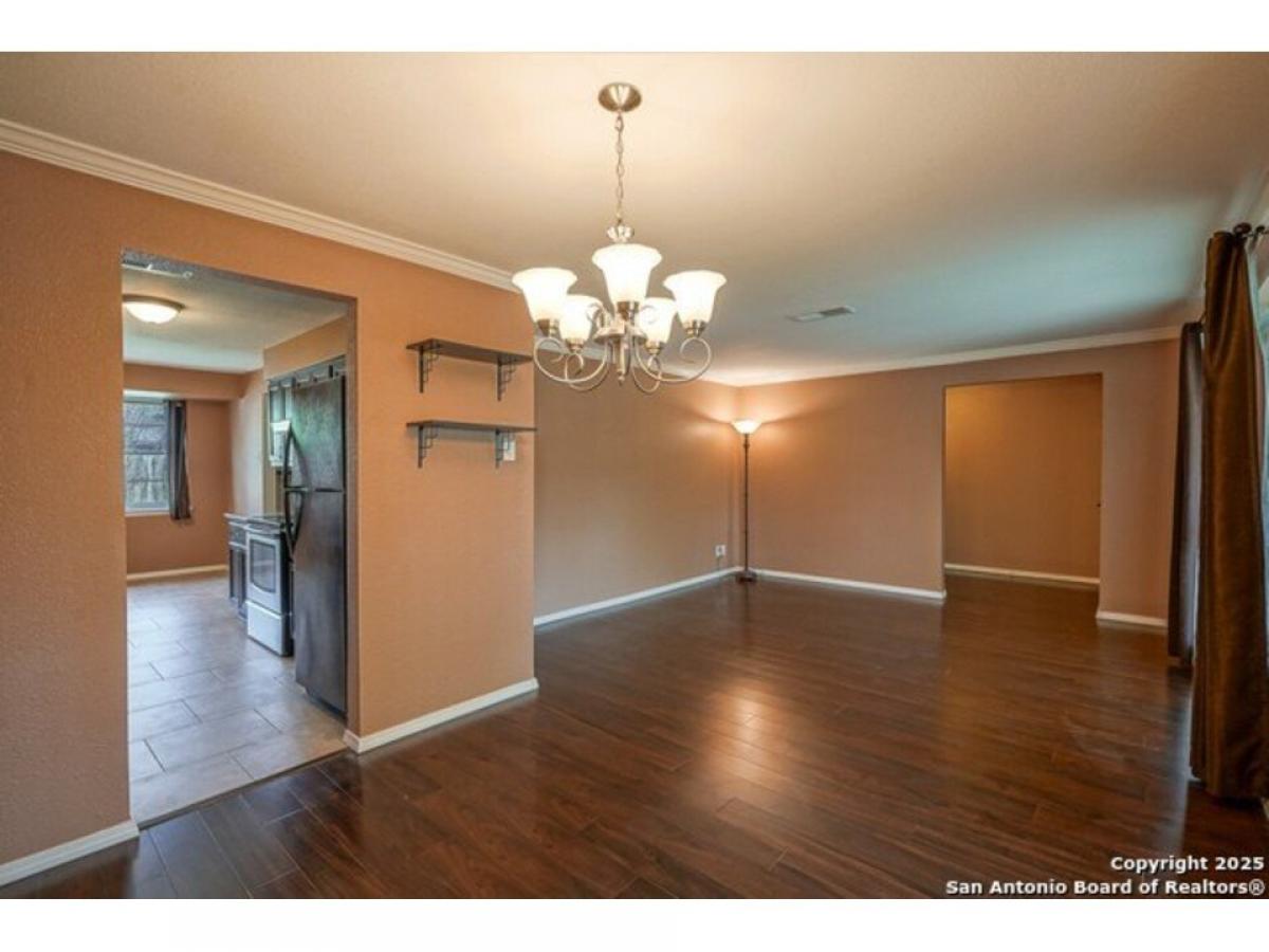 This gem in sought-after Windcrest truly shines! Situated on a 1/3 acre lot studded with gorgeous mature trees, this beautiful home has upgrades galore! You#039;ll find rich wood laminate flooring throughout - no carpet! The upgraded kitchen boasts updated cabinets, stainless appliances, and granite countertops! BOTH bathrooms have been updated too! There are 2 living and 2 dining areas PLUS a huge covered patio! The oversized garage has a workshop space AND a mud sink, and there#039;s a storage shed out back too! Another fabulous feature - the SOLAR PANELS! Perched atop the home#039;s standing seam metal roof is a 7.92 kW solar array - saving you tons of cash on your electric bill! All this and more, just a stone#039;s throw from Windcrest elementary school, city hall, the fire department, and the golf course! This one is an absolute must see!