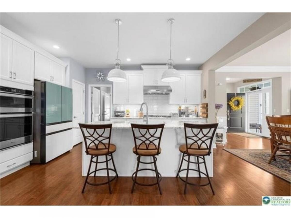 Welcome to this elegantly upgraded 3-bedroom, 2-bath home, built in 2020 and ideally located in the prestigious 55+ community of Regency at South Whitehall. Just minutes from major highwaysmdash;476, 309, 22, and 78mdash;plus Lehigh Valley Hospital and Airport, this home blends sophistication, comfort, and convenience. With over $100,000 in upgrades, including a beautifully finished basement, every detail is designed to impress. The gourmet kitchen features granite countertops, a large island with pendant lights, 42rdquo; cabinets, stainless steel appliances, a gas stove, oven microwave combo, and gleaming hardwood-style floors. The adjacent formal dining room offers hardwood floors and a tray ceilingmdash;ideal for entertaining. The living room features soaring ceilings, a cozy gas fireplace, and opens to a private patio with retractable awning for enjoying sunset views. The primary suite includes a tray ceiling, walk-in closet, and a spa-like en-suite. A second bedroom with tall windows, an additional full bath, and a laundry room with garage access complete the main level. The finished basement offers a spacious recreation area, a custom Lori wall bed, a bonus room for guests or an office, a large storage area, and a workshop. Sliding glass doors lead to a beautiful paver patio, extending the living space. Enjoy resort-style amenities including an outdoor pool, clubhouse with fitness center, bocce and pickleball courts, landscaping, and snow removalmdash;all in a vibrant, welcoming community.