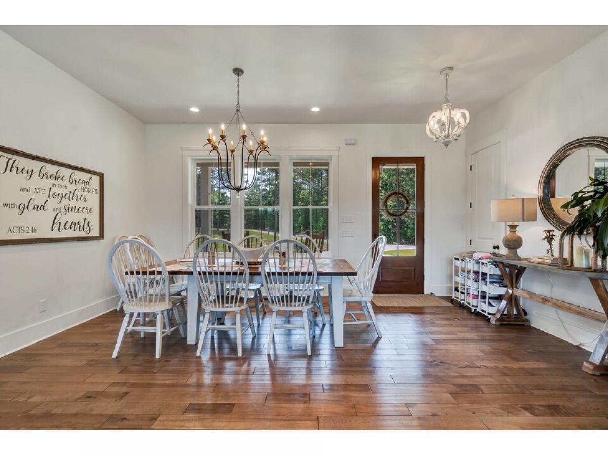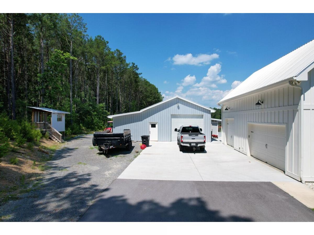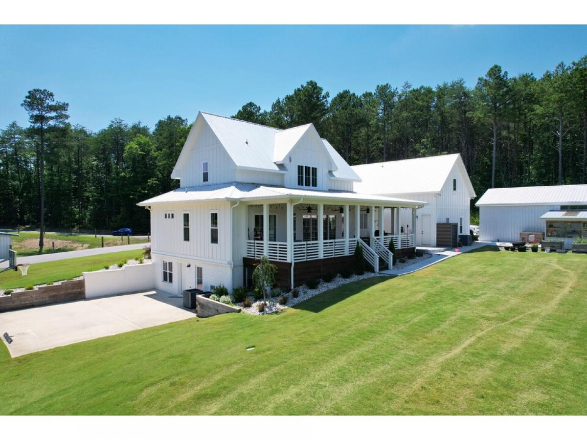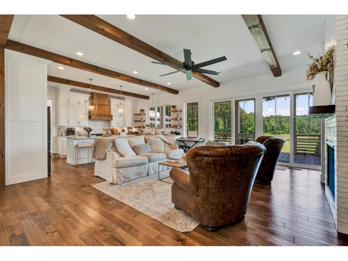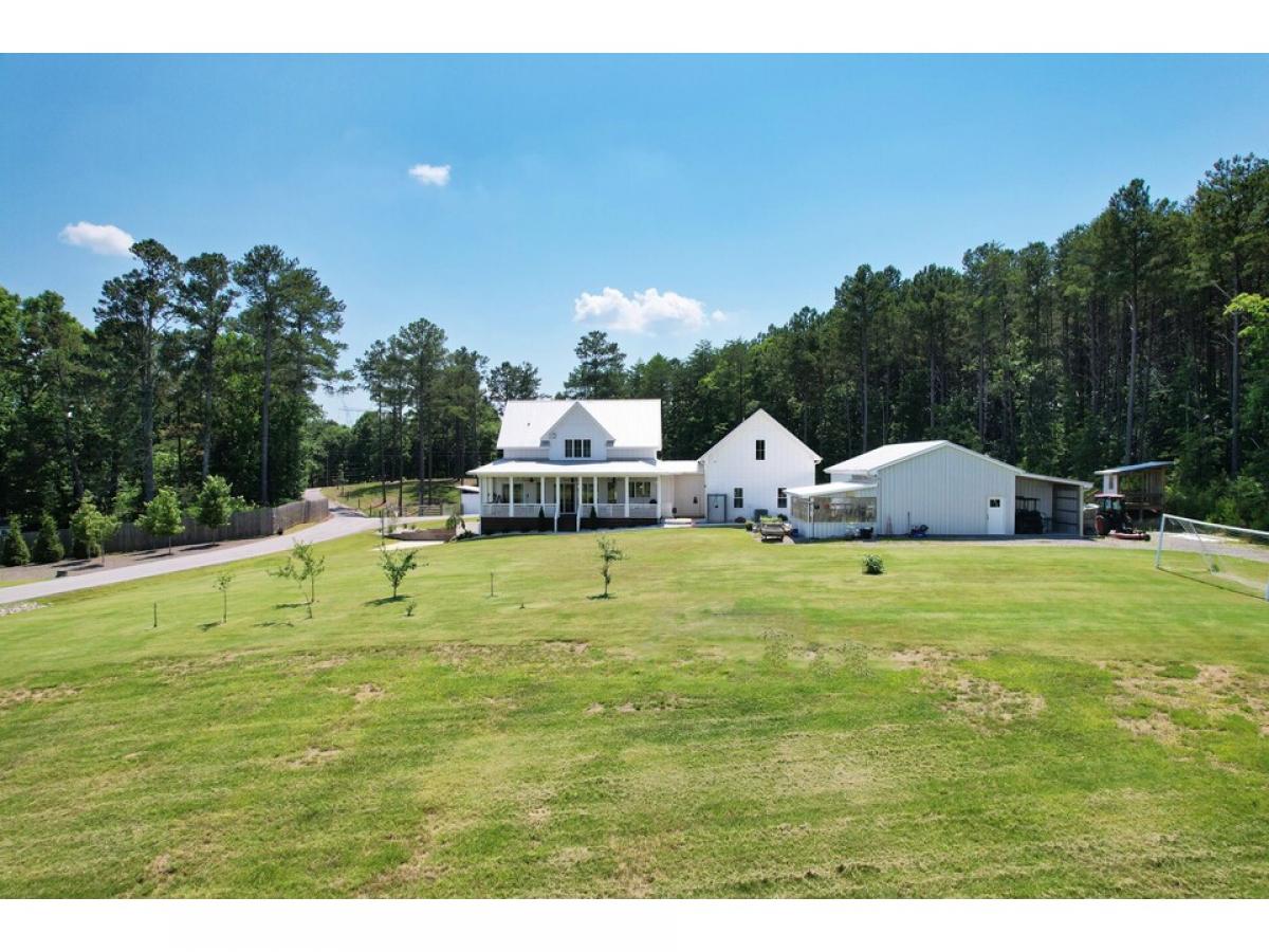 Introducing a stunning 5-bedroom, 4.5-bath home on a 34-acre estate at 406 Pine Hill Road. This 4,150-sf residence combines comfort nature, featuring fields wooded trails for exploration. The open floor plan seamlessly connects the living, dining, kitchen areas, perfect for gatherings. The kitchen boasts marble countertops a gas range. The main-level master suite opens to a deck overlooking a private pond. The master bath includes a soaking tub tiled shower. Upstairs, two bedrooms share a bath a large common area. The lower level offers a den, workout room, playroom, storm shelter, extra bedroom with a bath. Above the garage, a secluded suite with a bedroom, bath, office/sitting area ensures privacy. Outdoor features include a 600-foot rifle range, greenhouse, fenced grounds, landscape lighting, a riding trail. Just 7 minutes from shopping, dining, and I-75, and within the Greenbelt for privacy, Pine Hill blends luxury with country charm.
