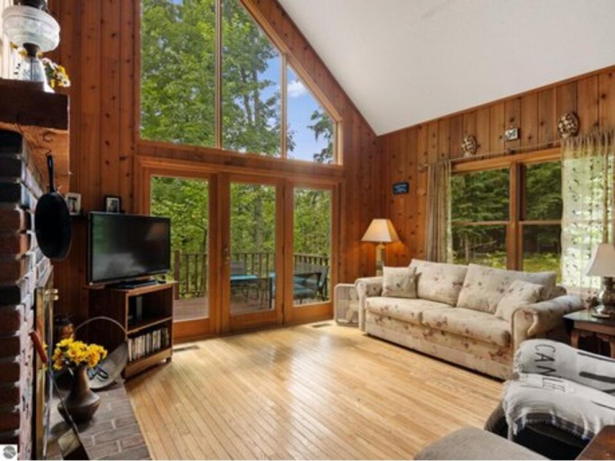COZY, QUIET & GREAT LOCATION! A-Frame Cedar Chalet in the Woods on NE Torch Lake Drive is situated on almost 2 Acres with Mature Trees back off the road. Torch Lake Access, Boat Ramp & Beaches Nearby. Barnes State Park on Lake Michigan is approx. 3 miles. The Home features an Open Floor-plan with Cathedral Ceilings throughout. Cozy up in the Living-room with a roaring fire in the wood burning fireplace. Sliding Doors across the Back Wall Lead out to an Expansive Deck with Views into the Woods. The Primary Main Level Bedroom has a fireplace, Cathedral Ceilings, Private Bath, Walk-in Closet & Sliding Doors to the Deck. The Spacious Kitchen is Flanked by the Laundry/Utility Room with Access to the Outside, and on the Other side is the 3 Season Room with Wall to Wall Windows - the Perfect Place Surrounded by Nature for Relaxing, Reading, Crafting, & Watching the Birds. The Open Staircase leads you up to a Large Loft to Use for Extra Sleeping and/or Living, with Multiple Beds and Private Bath. The Property appears to offer plenty of room to Expand Your Living Space, add a Garage, Workshop, Guest Quarters, etc. The Home is Being Sold “Turnkey” to include all Furnishings and Accoutrements (less personal items). It has a Successful Rental History, or Enjoy it with Your Family/Friends for Fun and Making a Lifetime of Memories! Close to the Villages of Bellaire, Central Lake, Eastport, The Chain of Lakes, Torch Lake, Lake Michigan, Golf Resorts, & Ski Resorts. Note: verification of location of septic field and propane tank needed.
