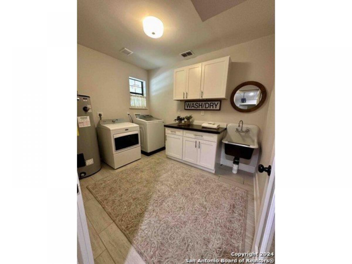Don#039;t miss out on this property with I-35 Frontage located just outside the city limits of Lytle, Texas. This unique 5 Bedroom / 4.5 Bath property boasts a 3,980 square foot fully renovated home with two separate 2-car garages totaling 1768 sq. ft., a 2200 sq. ft. barn, plus multiple sheds and carport areas all sitting on 16.472 acres with agricultural-exemption on 15.472 acres. This acreage is fully fenced and cross fenced with automatic front gate, stocked with income-producing Black Buck, and has I-35 highway frontage and commercial opportunity just outside the Lytle city limits. Walking through the front door of this stately home, you are greeted with a proper foyer with 2 coat closets, the option of two living areas, a half-bathroom for guests, dining room, large kitchen with coffee bar area and pantry, laundry room, guest room with on-suite bathroom, and the first of two primary bedrooms with on-suite bathroom and walk-in closet. Upstairs you will find a second primary bedroom with on-suite bathroom and two additional bedrooms separated by an on-suite bathroom. As you step outside you can enjoy outdoor living with numerous porches, a sun room, and a large covered patio at the rear of the property for entertaining. Need space for your hobbies or business - there is a large barn with additional covered areas ready to meet your needs. The residence was renovated in phases from 2020 through 2024, with the final renovations being completed in 2024 to include a new metal roof, newly painted exterior, and numerous updates inside. The home is zoned with 3 HVACS all of which were replaced between 2020 and 2024. The herd of Black Buck, two concrete water tanks, and deer feeder are negotiable. Don#039;t miss out on this unique property - schedule a showing today!