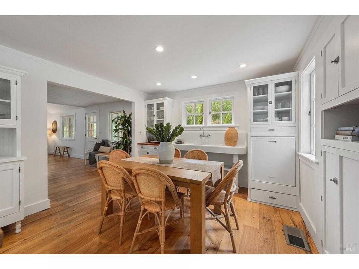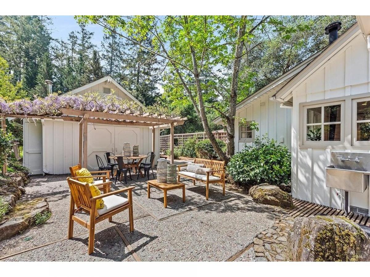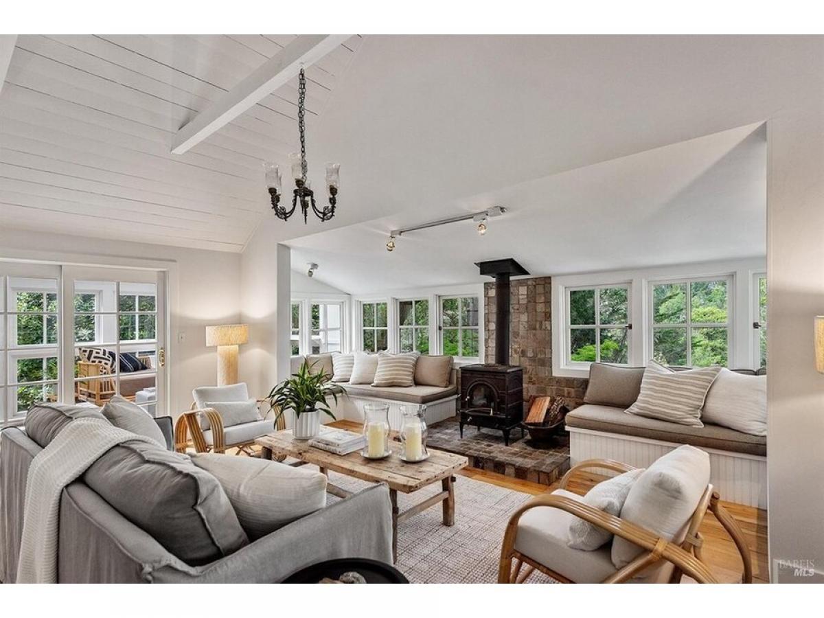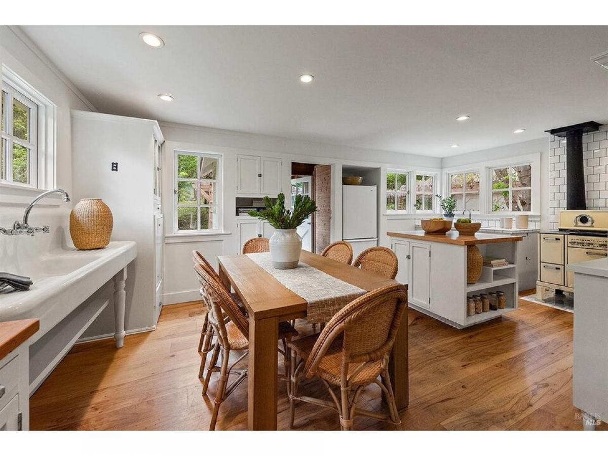 Nestled on 1.9 acres of glorious West County land, this enchanting 1930 farmhouse offers a rare blend of timeless charm + natural beauty. Surrounded by mature trees, dramatic rock outcroppings, and meandering paths across a gently sloping landscape, this property truly feels like a sanctuary. The home welcomes you with a front porch swing, woodstove, and cathedral ceilings in the open living room, where an abundance of natural light pours through many windows. The heart of the home is a warm, inviting farm-style kitchen, complete with stunning vintage stove and long cast-iron apron-front sink, perfect for both function and character. Delight in the sun room, an idyllic transition between indoors and out, which opens to a serene outdoor space featuring a private sauna and a large, creative outbuilding. Designed with versatility in mind, this unique structure includes special spaces ideal for guests, extended family, or inspired workspace. A private driveway leads you past the gate and up to your peaceful retreat. The detached workshop is a dream space for makers and collectors alike, boasting clerestory windows and garage-style doors to let in the light and accommodate your largest projects. This rare offering speaks of a simpler time when life moved slower, and home was a haven.