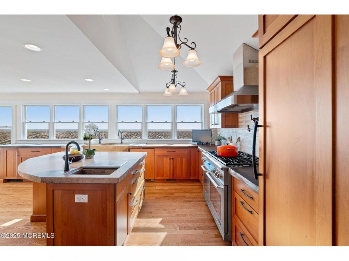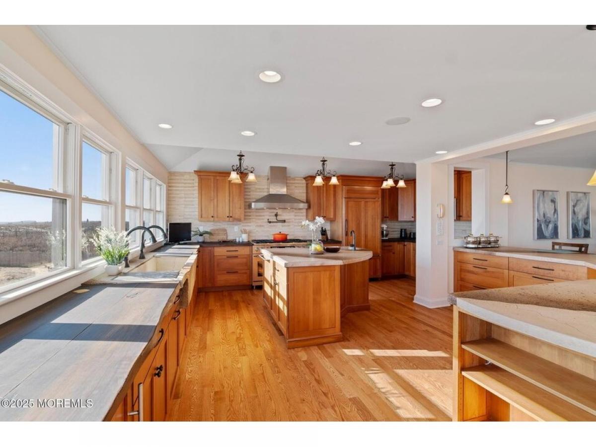 WEEKLY SUMMER RENTAL-weekly rate of $25,000 per week. Available dates June 21st-September 6th. Experience beachside living in a fully-renovated and unusually expansive Dutch colonial. Ideally located to the center of town, this thoughtfully curated home offers over 5,000 square feet of Victorian-era charm accented throughout with elegant modern finishes. A wheelchair-accessible elevator provides access to the driveway, main and second levels. The main level features sweeping ocean views from the living area and from the state-of-the-art chef#039;s kitchen equipped with: commercial-grade appliances; molded concrete counters that indistinguishably mimic wood and stone; a 48#039;#039; wide double-faucet sink with incorporated drainboards; an island with prep sink; custom cherry-wood cabinetry; and an ample peninsula/breakfast bar. The open, extensive living and dining areas provide spacious accommodation and an incorporated sound system for entertaining an abundance of family and friends. Off of the main floor, a massive Trex deck bridging the main house and cottage offers sumptuous views of and access to the beach and ocean, and includes its own incorporated outdoor sound system and natural gas service for your grill. The second floor has six bedrooms and three full baths. Both east facing bedrooms feature Andersen French doors - with roll-down security shutters - that open onto a sizeable deck with unobstructed panoramic beach and ocean views. Three of the remaining bedrooms open onto the west deck, ideal for catching the afternoon sun. Both decks are newly re-surfaced with fiberglass and fresh gel coats. The third floor owner#039;s suite has stunning ocean views, handcrafted built-in dressers, and a luxurious five piece en suite bath. Additional amenities include: incorporated sound system, and finishes; brand new cedar shake siding on all three structures; and heavy gauge, imperishable copper roofing, all of which heighten the value of this exceptionally rare property. Rinse off from your swim in the outside shower on the beach. There is additional off-street parking for at least five cars.