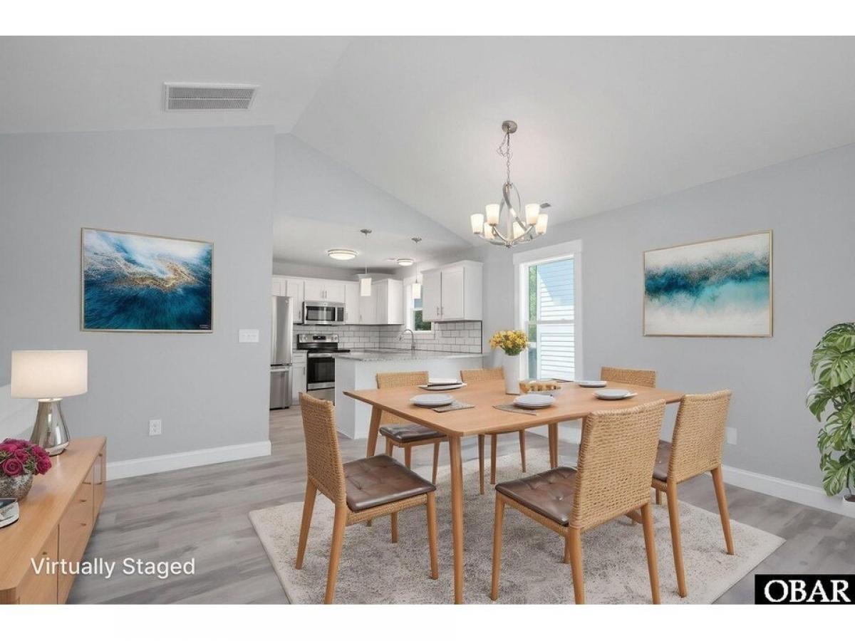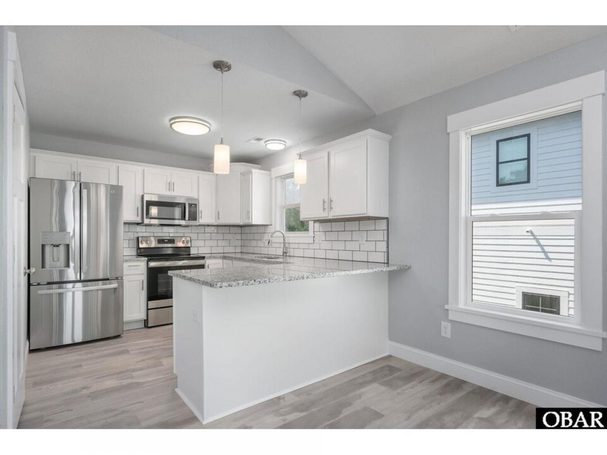 New Construction and conveniently located in the heart of KDH! Short distance from walking/biking trails and the majestic Kitty Hawk Bay. Reap the benefits of owning a new home, featuring low maintenance vinyl shake amp; Dutch lap exterior siding. Extremely versatile floor plan features 3BR 2Bath with an ensuite, an open living/dining concept, plus a sparkling new kitchen on the top level. Interior stairs lead down to a 2nd living quarters with a large kitchenette, 4th bedroom and an adjoining full bath on the 1st level. The layout is ideal for In-laws, older children or the perfect accommodations to host your family amp; friends. The 1st level is also perfect for a game room or home office! Selection of quality materials include luxury vinyl plank flooring throughout the living, kitchen, dining amp; baths with carpeting in the BR#039;s. Vinyl railing amp; pickets, Trex decking, 35 year architectural roof shingles. Granite counters w/ subway tile backsplash offers lasting durability. Two zone HVAC system to regulate both levels effectively. There is a huge washer/dryer utility room on the first level plus a single car finished garage offering interior access, another big bonus! Large double driveway affords lots of parking. The property sits high above the floodplain, in an X-zone requiring no flood insurance. Close to beautiful beaches and all Outer Banks attractions. Come see the exceptional value this home offers today!