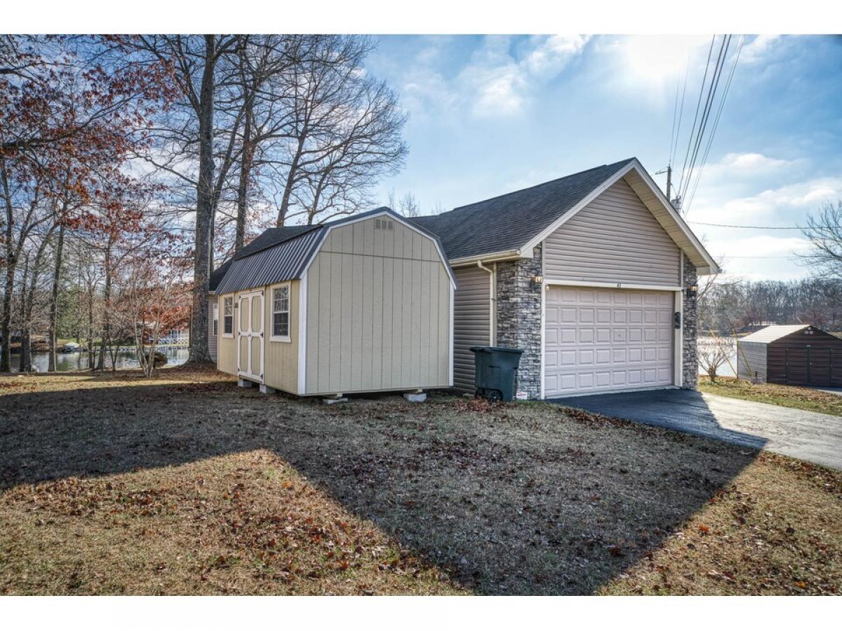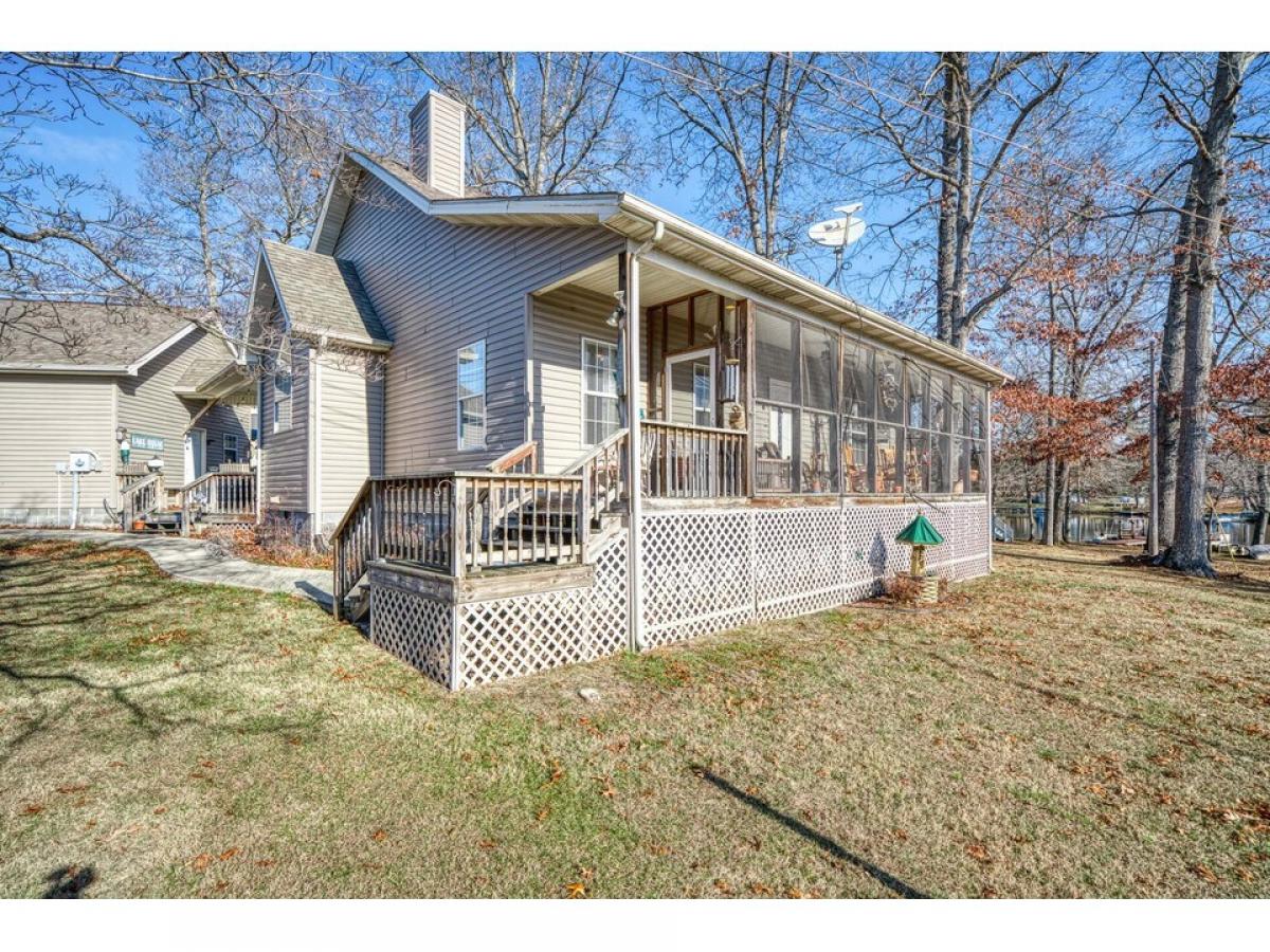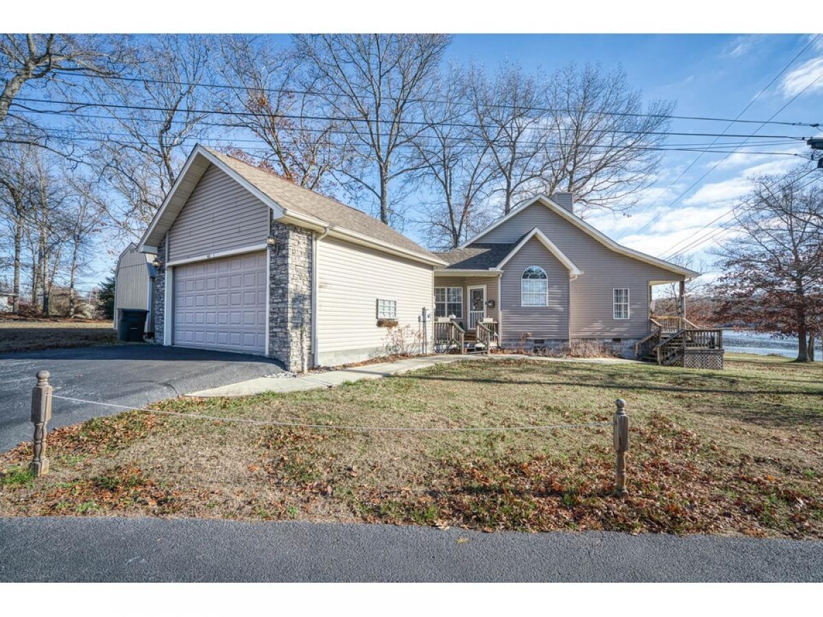 Waterfront Living on a large level yard with fire pit, and private dock!! Other features include stacked stone fireplace, vaulted ceilings, island in kitchen with bookshelf storage, pantry, walk-in shower, jetted tub, screened In Porch with full Lake views, private deck off owner's bedroom, 2 Car Garage and a 10x20 ft Storage Shed for starts. Want move in ready? Owner would consider selling bunk beds that sleep 8, other furniture and pontoon for the right price. Buyer to verify all measurements and information prior to making an offer.