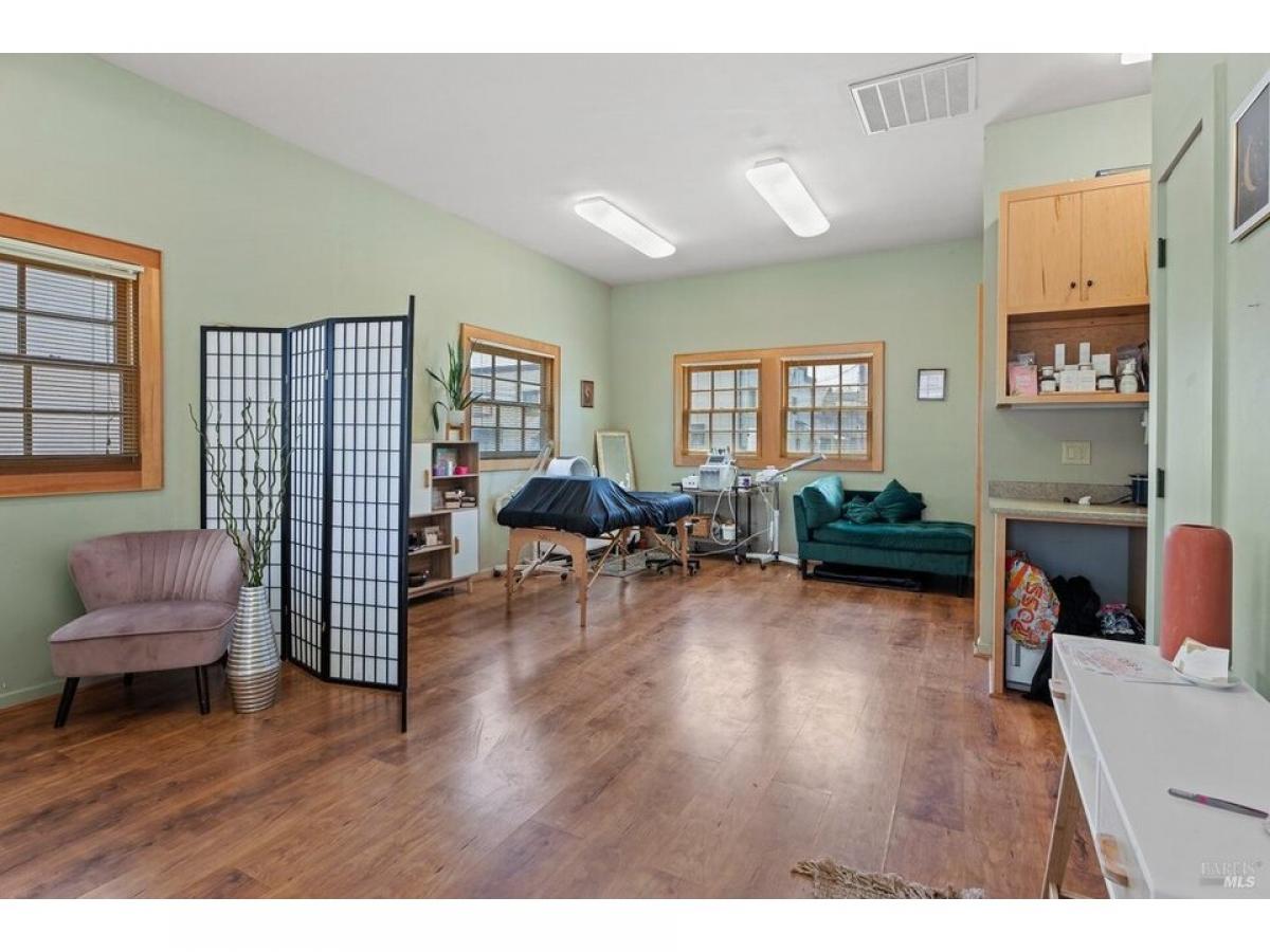 Investment opportunity for a retail/office building in downtown Willits! Just a block off Main Street along Mendocino Avenue, this approximately 2,400 square foot free-standing building has multiple, fully leased spaces. A covered porch with ramp and stairs welcome guests out front who also benefit from an onsite parking lot out back. Open layouts, wood trim, and numerous windows providing natural light brighten each unit. 45 W. Mendocino Avenue has laminate hardwood floors and is currently leased to a beauty salon. 55 and 65 W. Mendocino Avenue are two attached units leased to a professional service. 55 has offices, a kitchenette, and restroom while 65 is a large open area currently used as a meeting room that could also be home to additional office or retail space. With a location in the heart of downtown, and various spaces offering flexible uses, this is a great opportunity to invest!