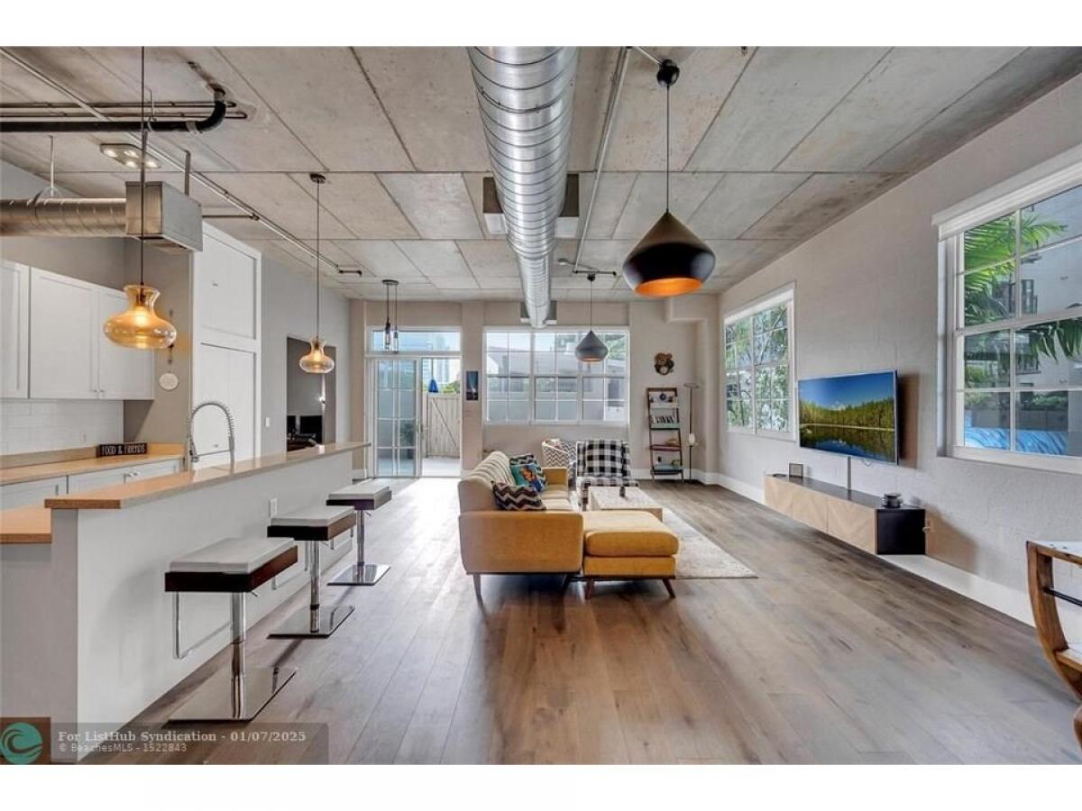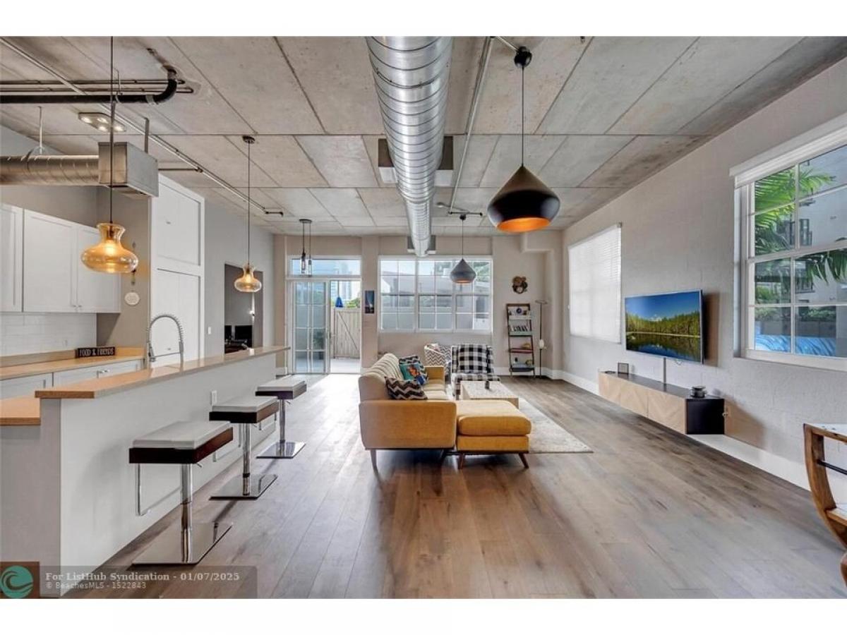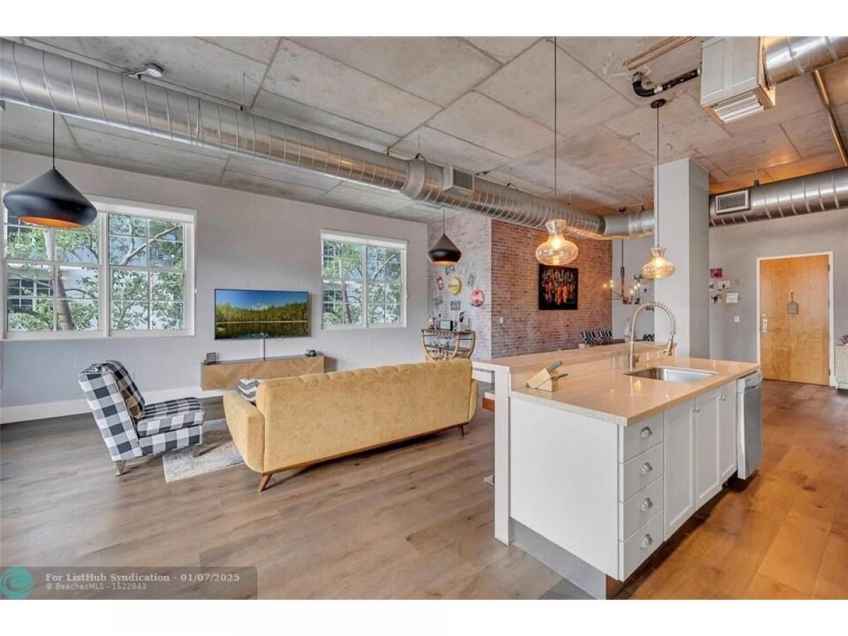 Enjoy modern living with this exceptional 2-bed, 2-bath corner industrial loft. Boasting soaring ceilings, an open plan, and expansive windows, this unique home offers both style and comfort. The desirable lanai unit design, offers a huge private patio connecting to your gate to the pool/BBQ area. The updated kitchen features high-end appliances and gas cooking. The corner layout allows natural light to fill the space. 1 covered spot included- Flagler Village neighborhood parking permit offers free street parking. Just 2 blocks to Brightline station, this loft offers an easy commute to Miami /West Palm. All New FAT Village district rising just down the block bringing a wave of new, exciting new dining and entertainment options. Pet Friendly