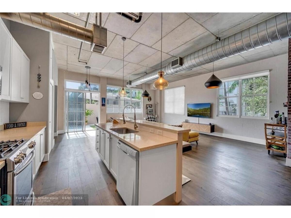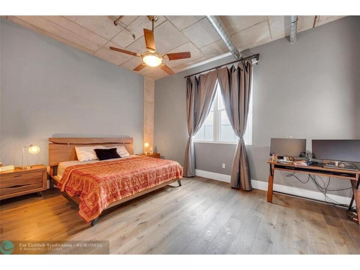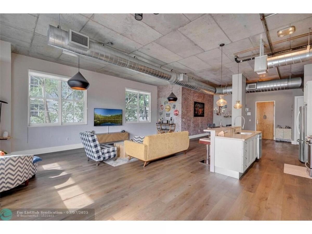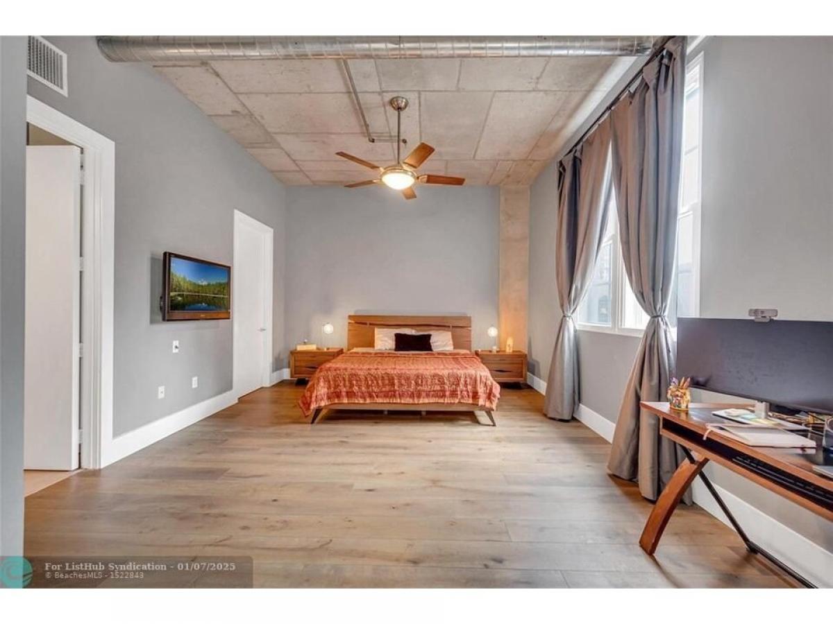 Enjoy modern living with this exceptional 2-bed, 2-bath corner industrial loft. Boasting soaring ceilings, an open plan, and expansive windows, this unique home offers both style and comfort. The desirable lanai unit design, offers a huge private patio connecting to your gate to the pool/BBQ area. The updated kitchen features high-end appliances and gas cooking. The corner layout allows natural light to fill the space. 1 covered spot included- Flagler Village neighborhood parking permit offers free street parking. Just 2 blocks to Brightline station, this loft offers an easy commute to Miami /West Palm. All New FAT Village district rising just down the block bringing a wave of new, exciting new dining and entertainment options. Pet Friendly