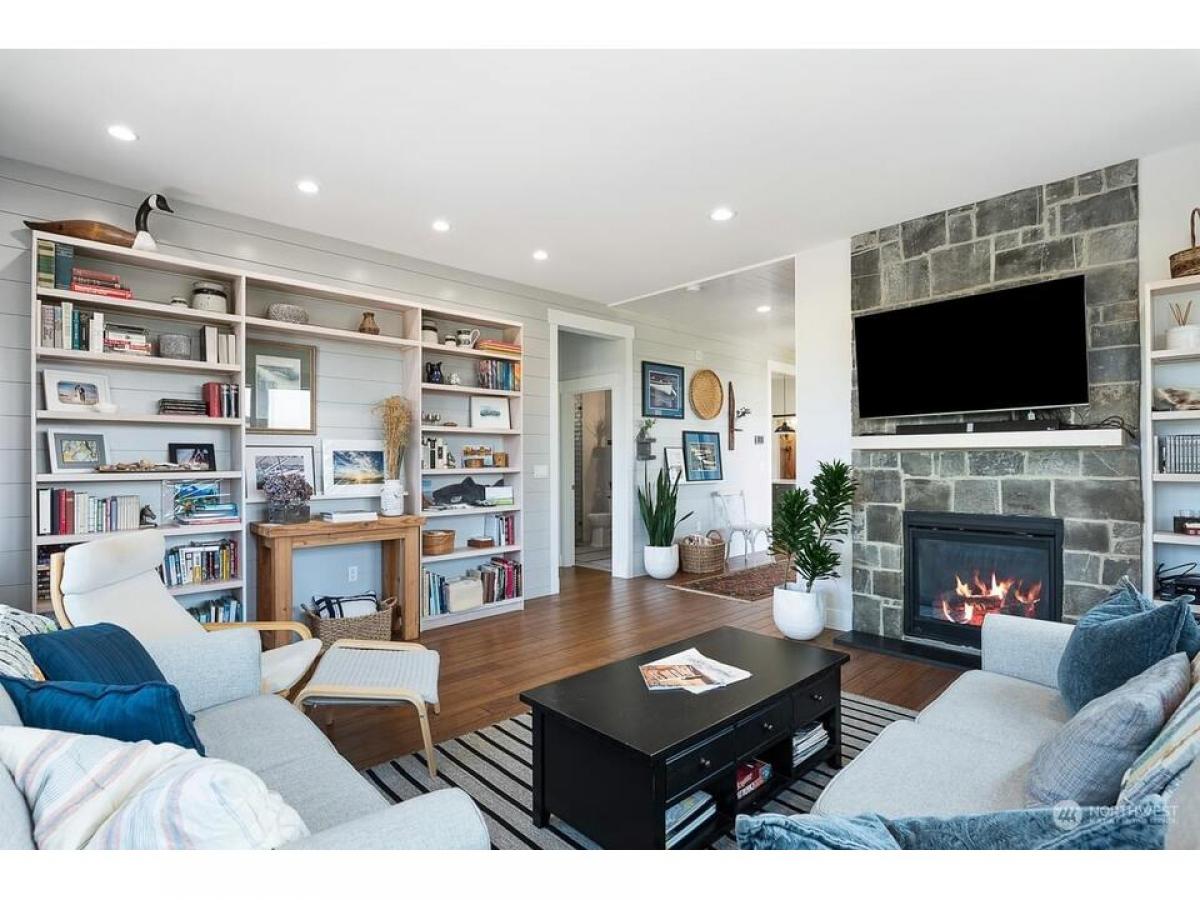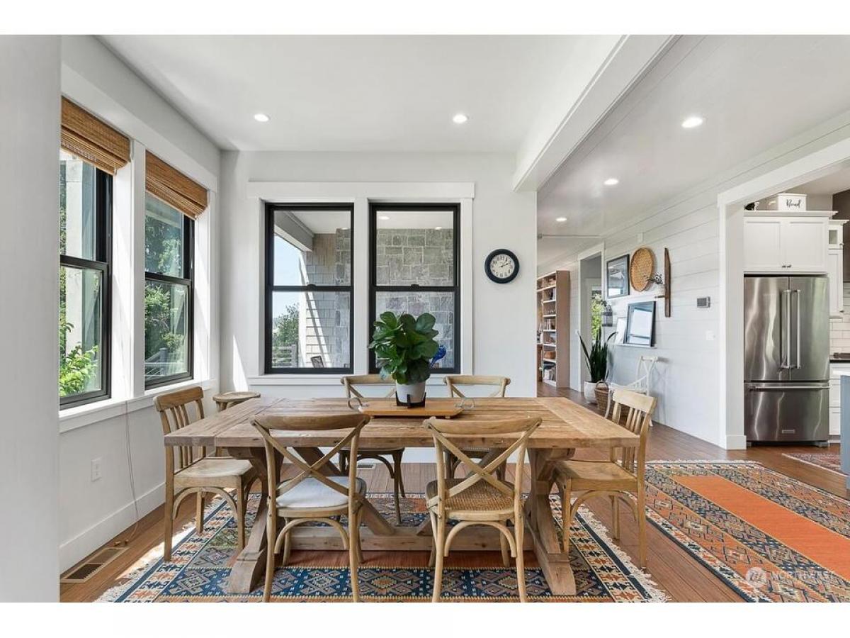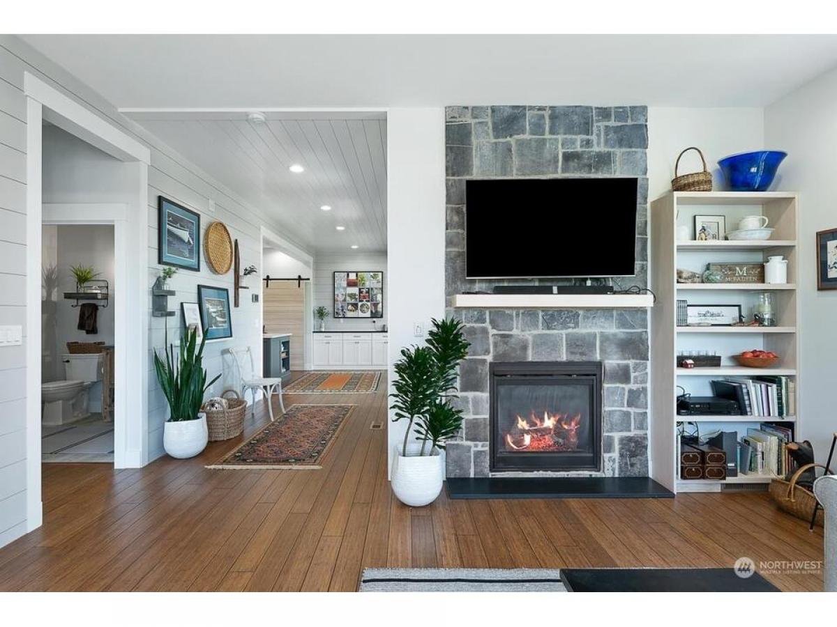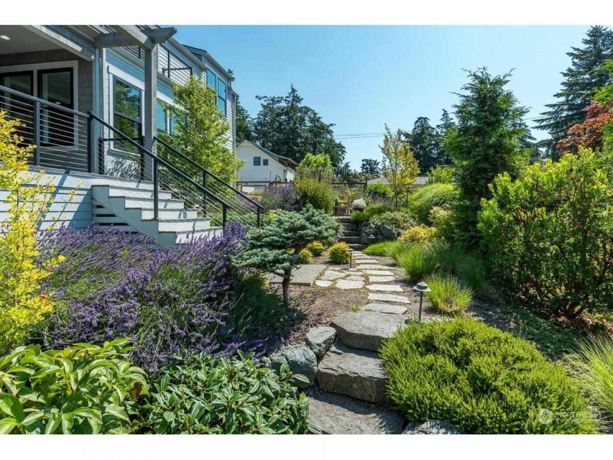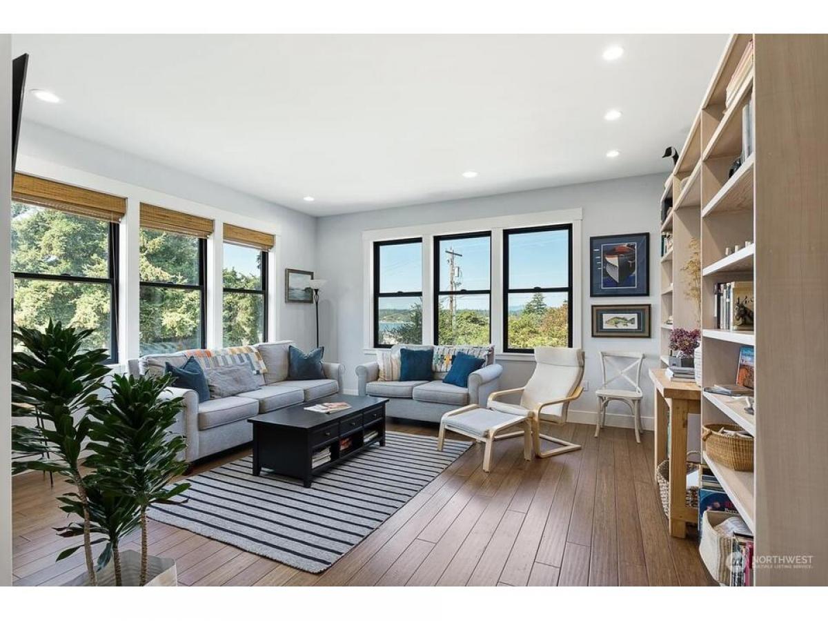 Timeless Cape Cod-inspired gem in desirable Cap Sante radiating charm craftsmanship. Enter to bamboo floors, feature shiplap stone walls. Chef's kitchen with dining shines w/quartz island+black granite countertops, sliding door to walk-in pantry w/coffee bar. Relax in the living room with built-ins stone fireplace. Upstairs rec rm, where vaulted ceilings abundant windows fill the space w/natural light. Covered open air upper deck+spiral stairs to captains deck with Guemes Channel downtown views. Relaxing primary suite boasts scenic views, ensuite bath walk-in closet. Gardeners delight exterior offers fenced yard, garden shed, lush landscaping raised beds plus extra parking off alley, 2-car garage w/huge storage rm. Must see!